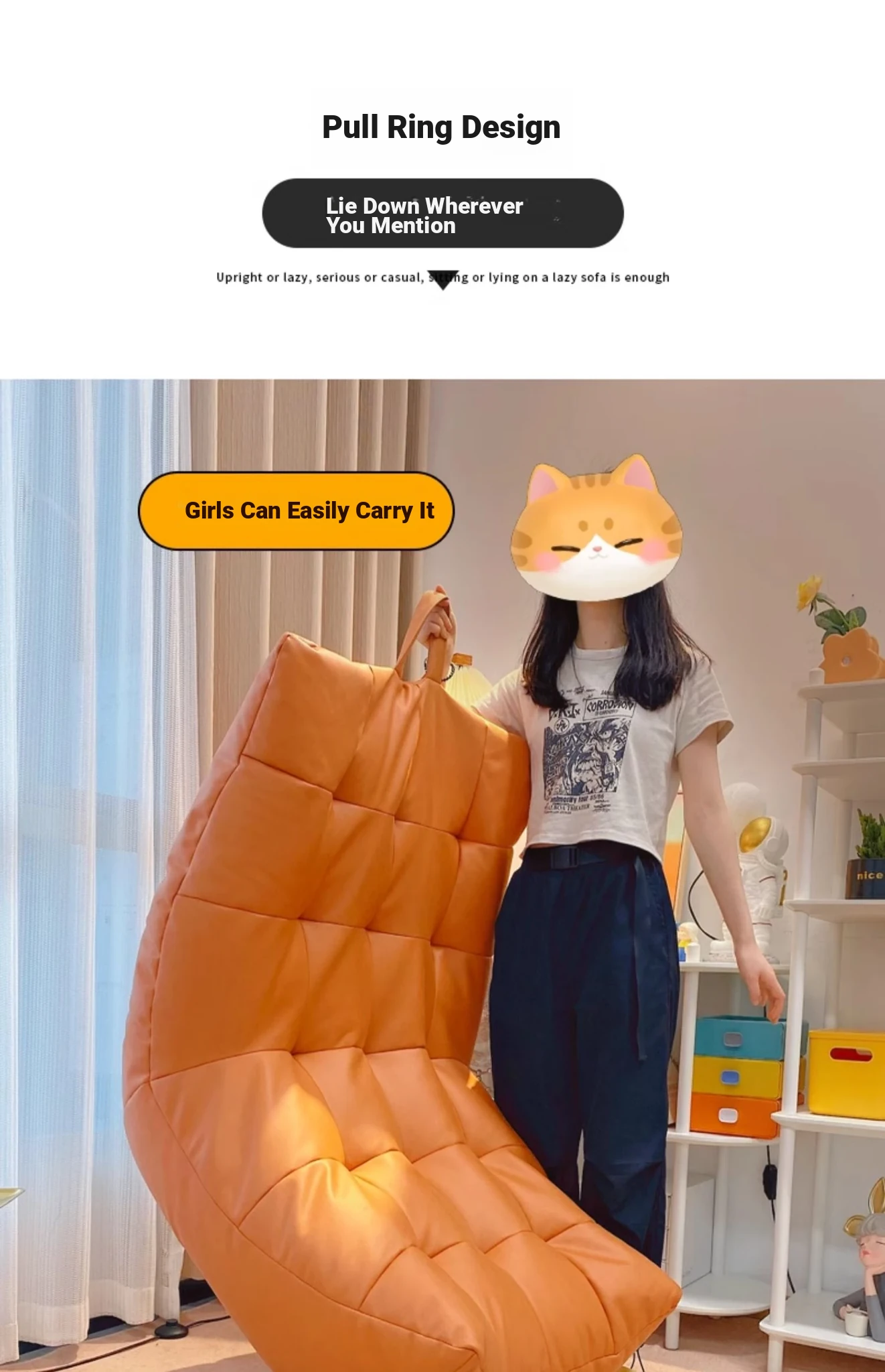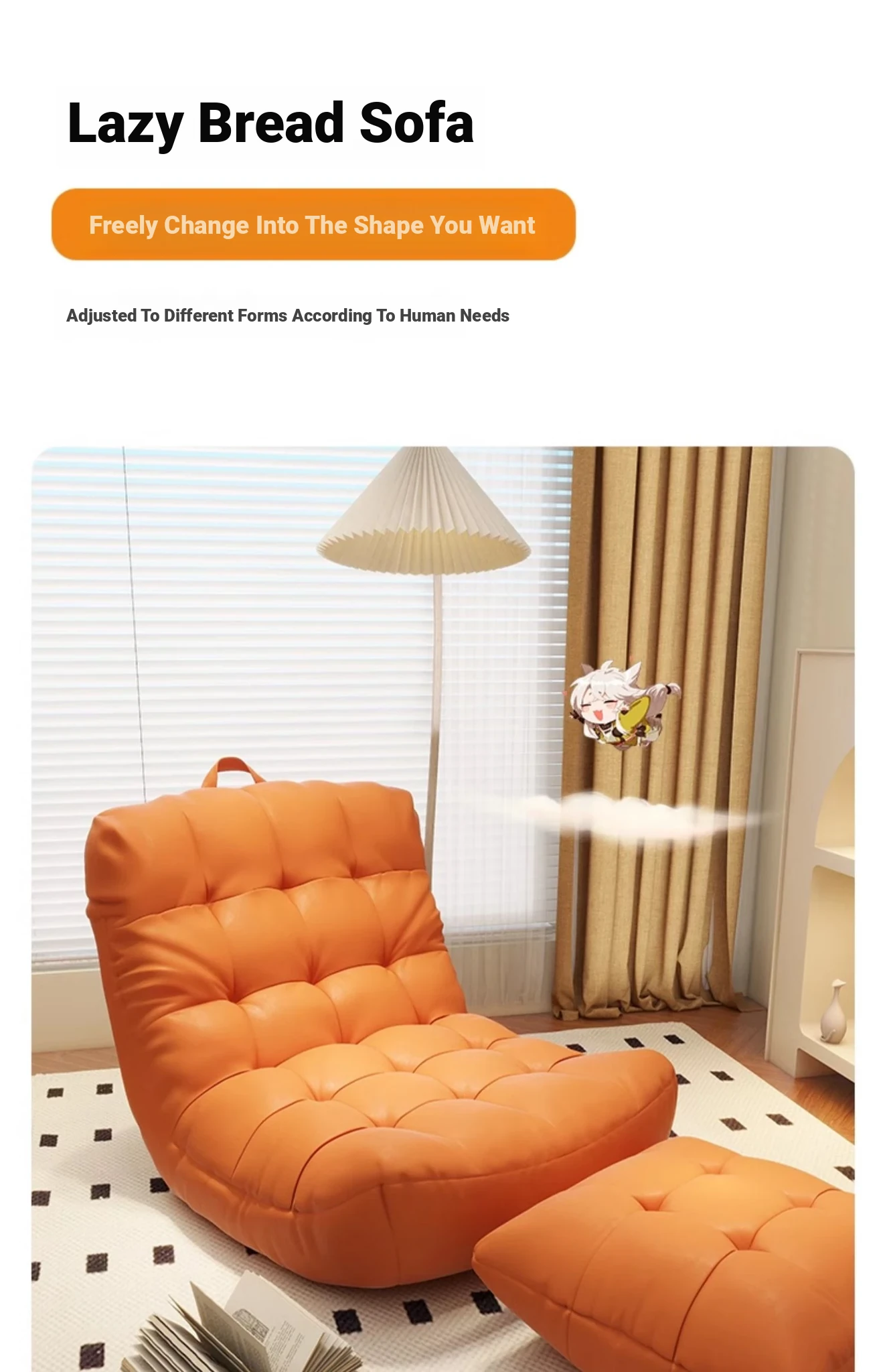 Cozy Caterpillar Lazy Sofa - Versatile Single Lounge Chair for Bedroom, Balcony, and Bay Window. Perfect for Relaxing, Napping, and Enjoying Leisure Time!