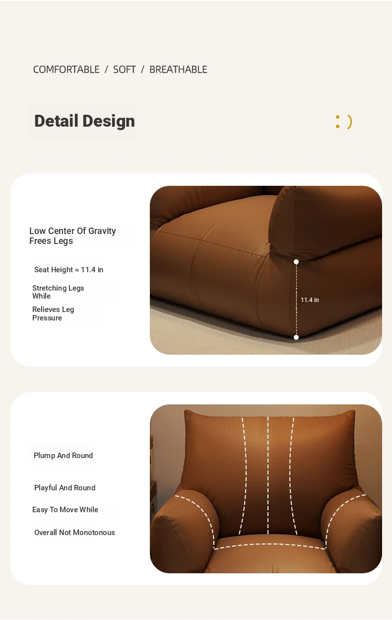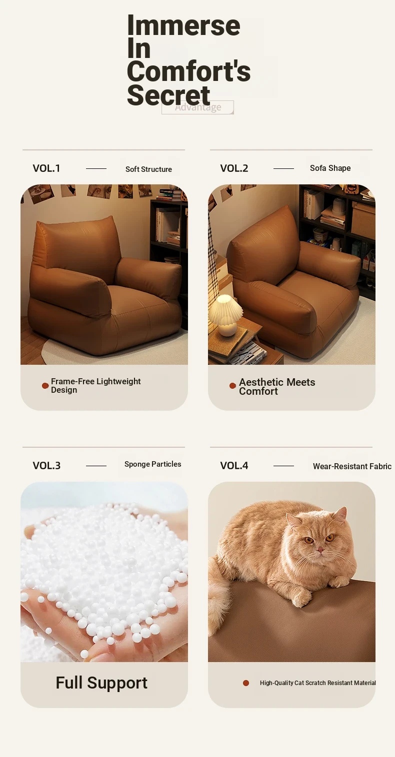 Cozy Lazy Sofa - Versatile Single Lounge Chair for Small Spaces, Perfect for Bedrooms and Balconies, Ideal for Relaxation and Sleep, Stylish Bean Bag Design