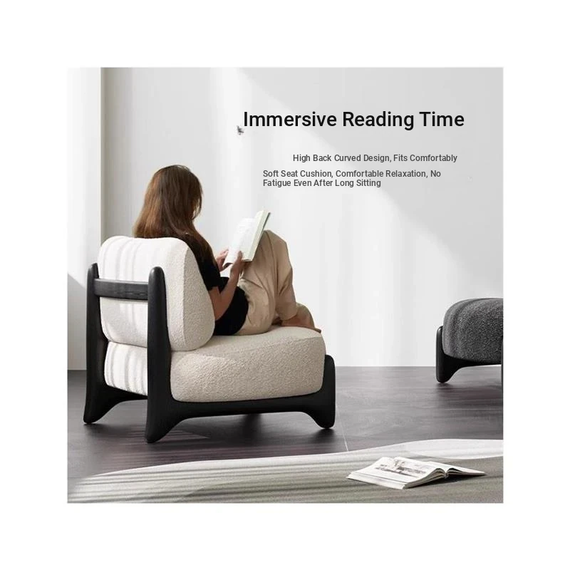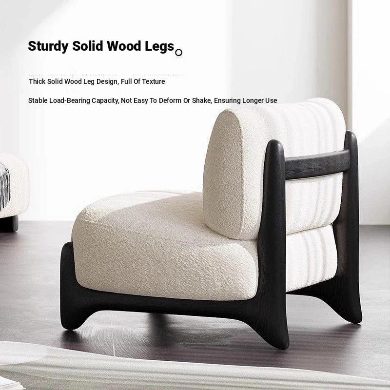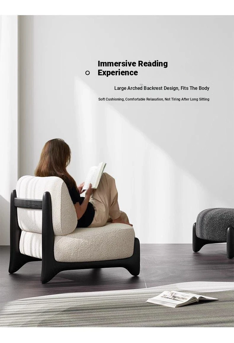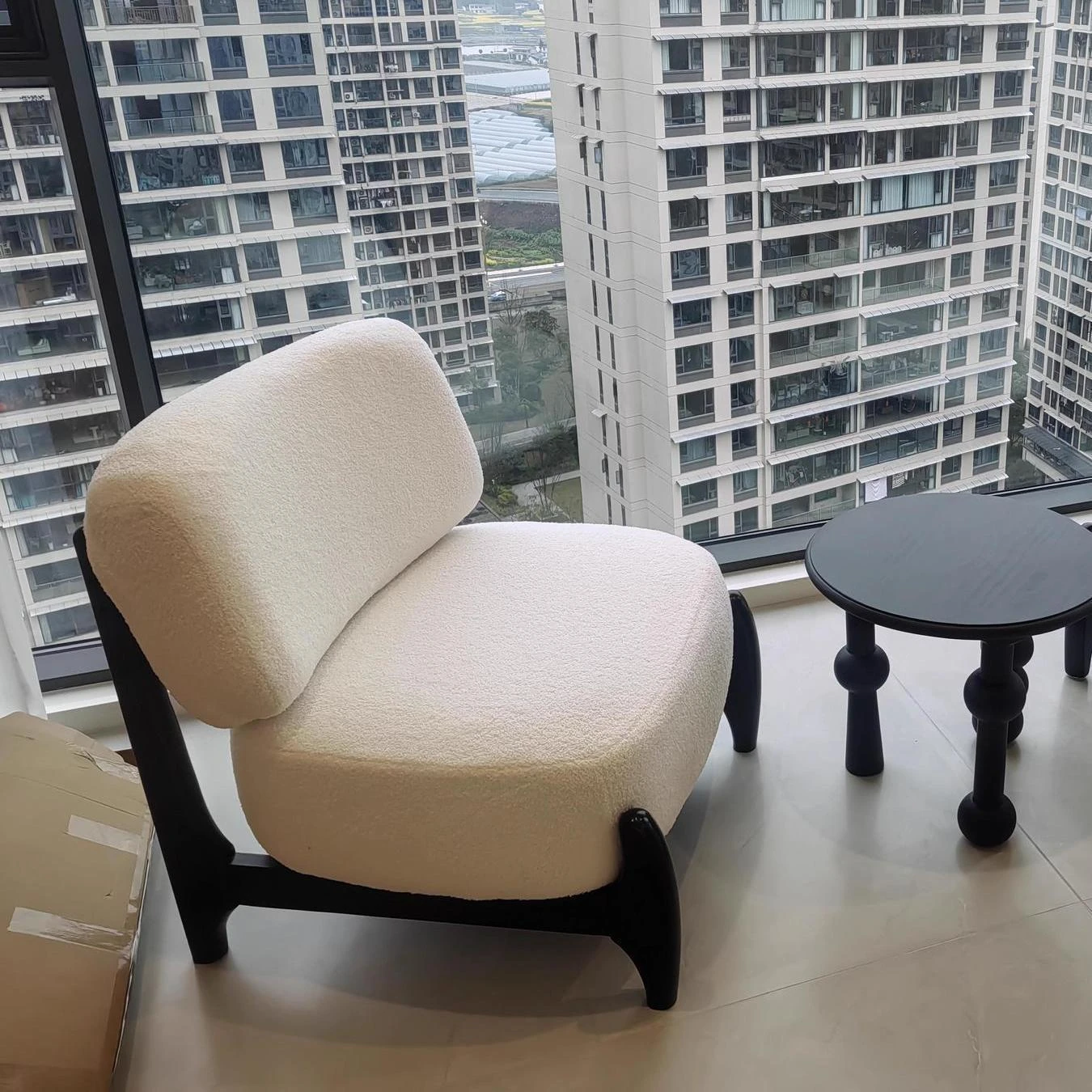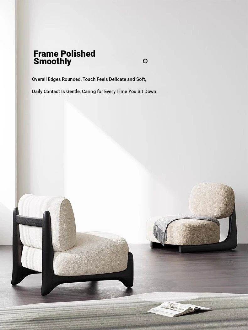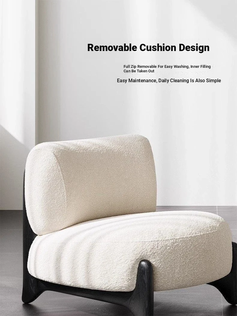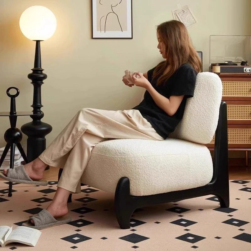 Creamy Lamb Fleece Trendy Single Floor Lounge Chair - Solid Wood Designer Sofa for Airbnb and Balcony Decor