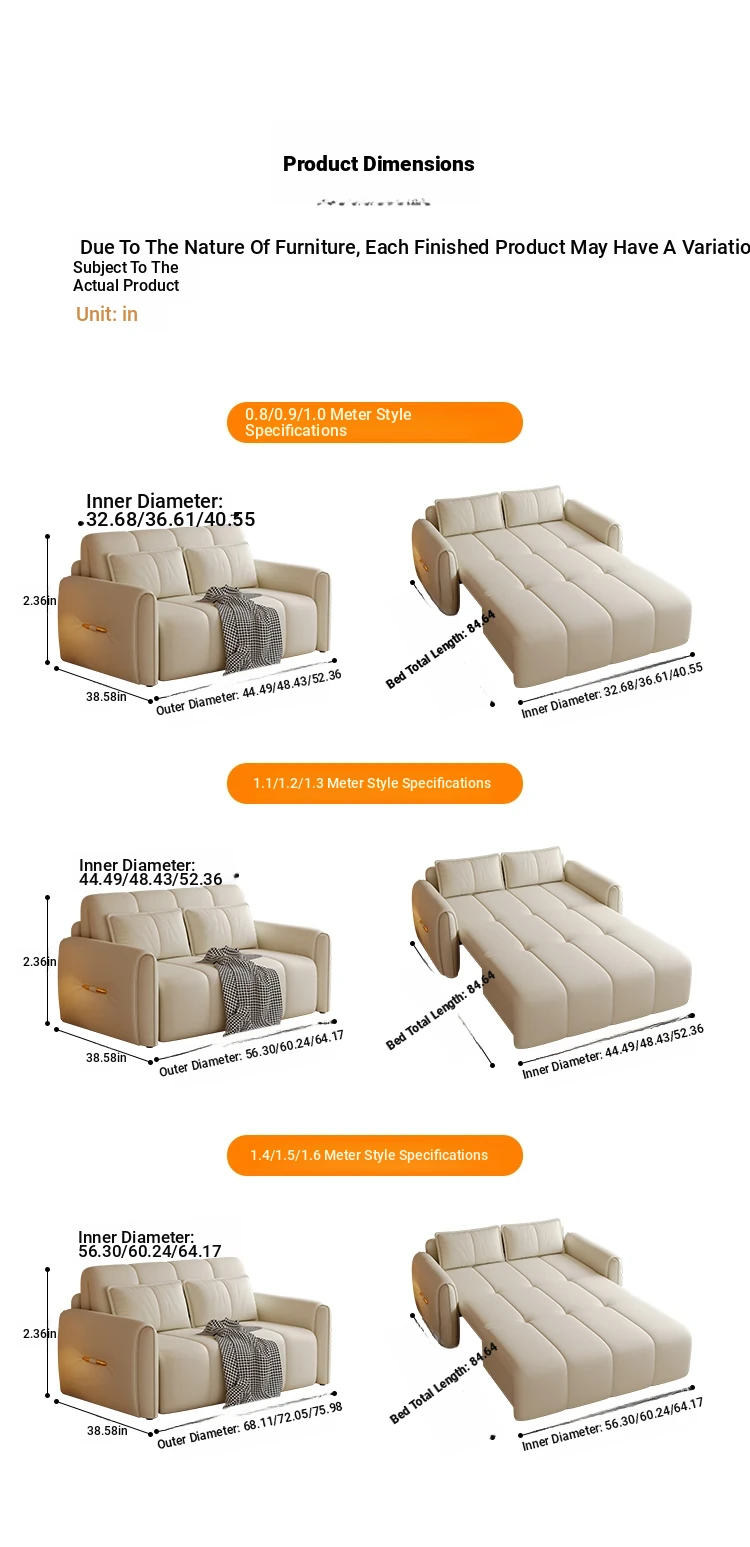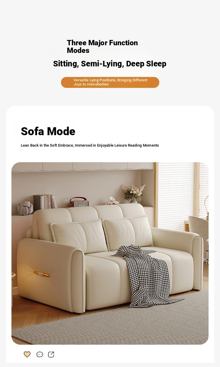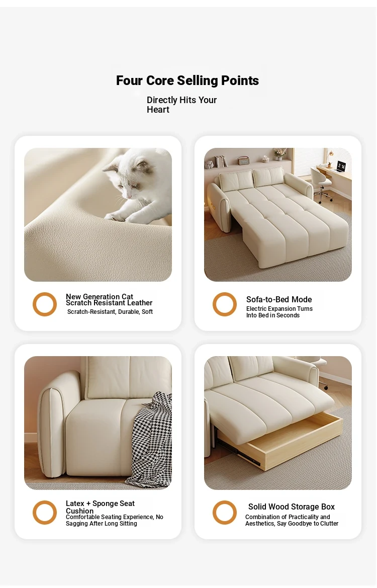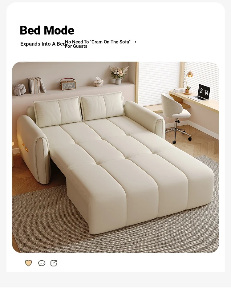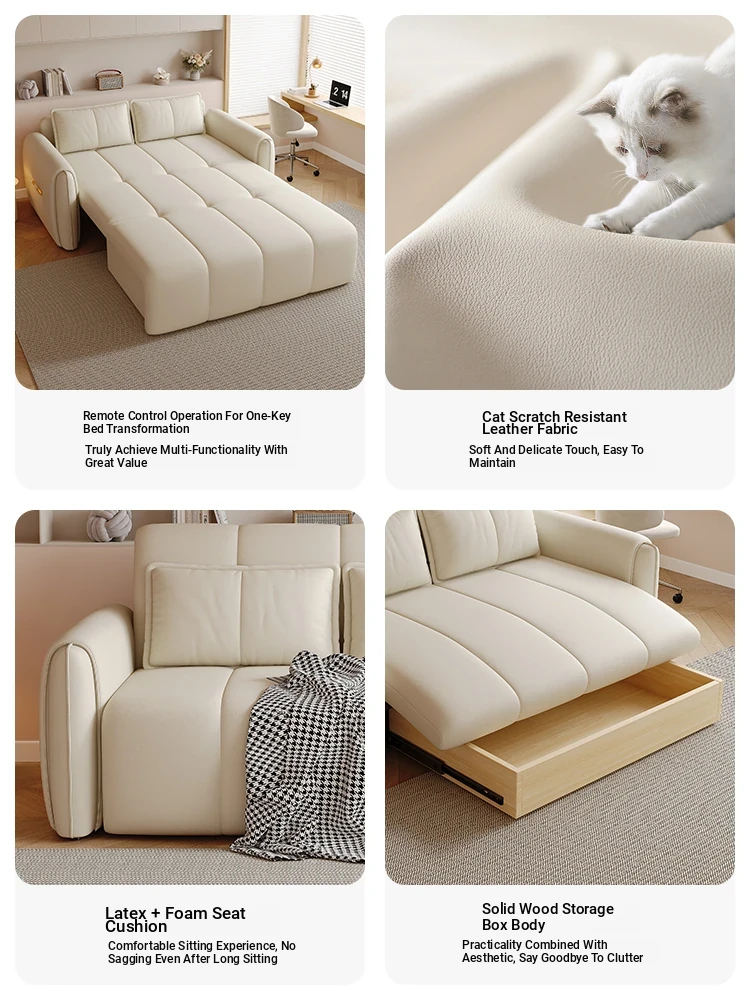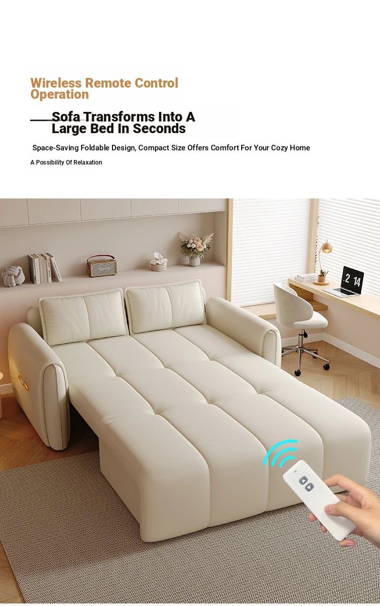 Creamy Smart Electric Sofa Bed – Multi-Functional Couch for Small Spaces, Perfect for Living Rooms and Home Theaters, Accommodates Singles and Couples!