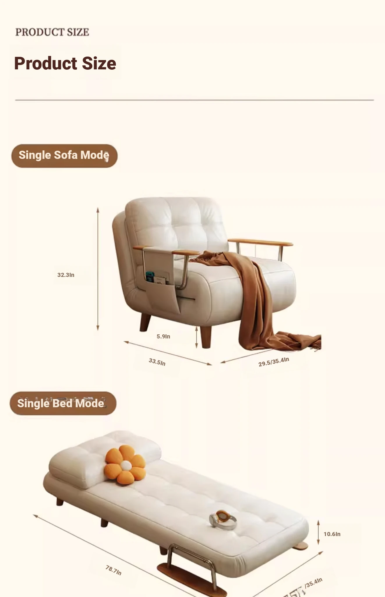 [Selection of Cat Scratch Skin and Powder-Free Sponge] 29.53in Sofa Bed (In Stock Flash)