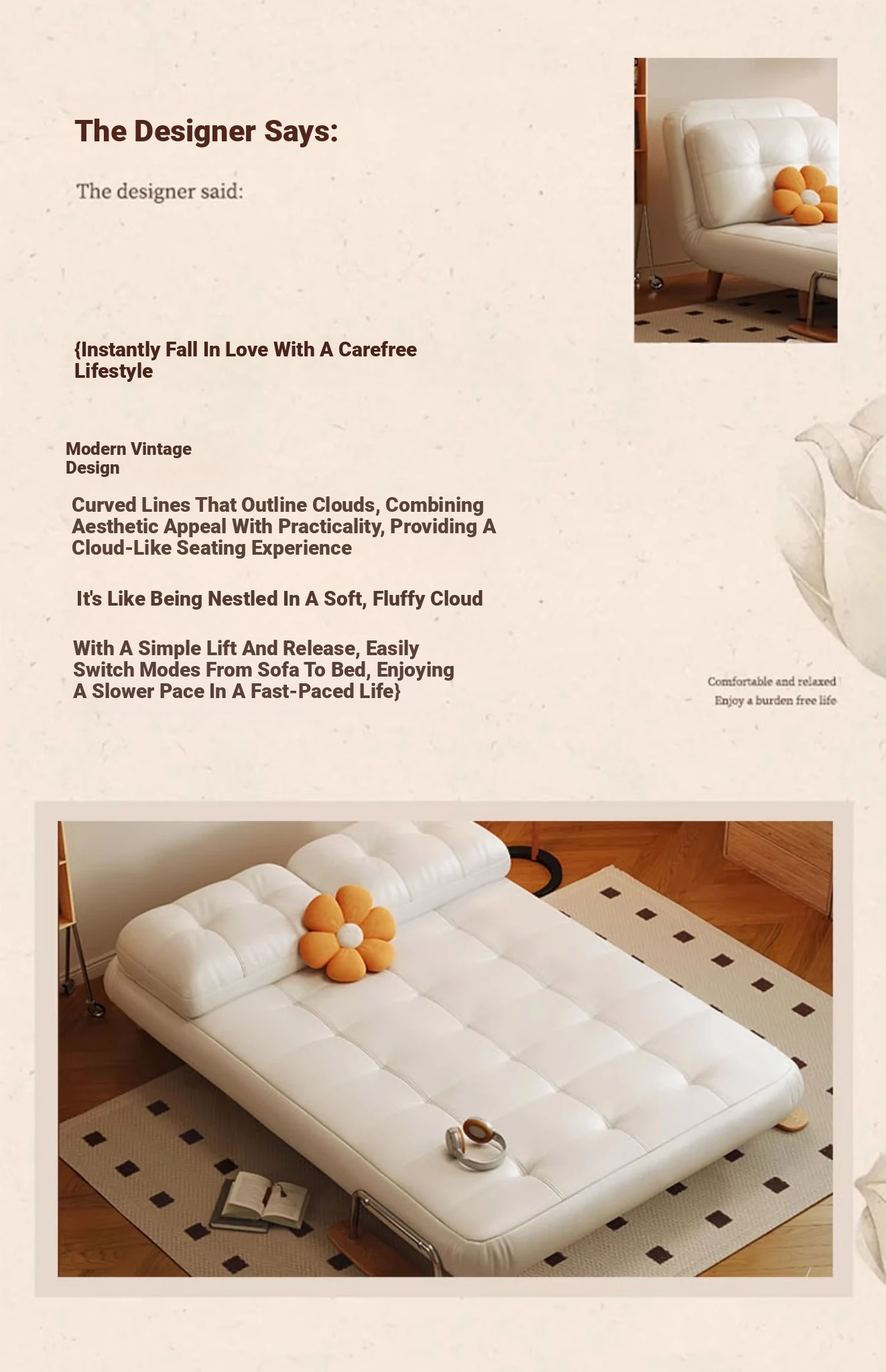 [Selection of Cat Skin Scratch and Natural Latex] 37.40in Sofa Bed (In Stock Flash)