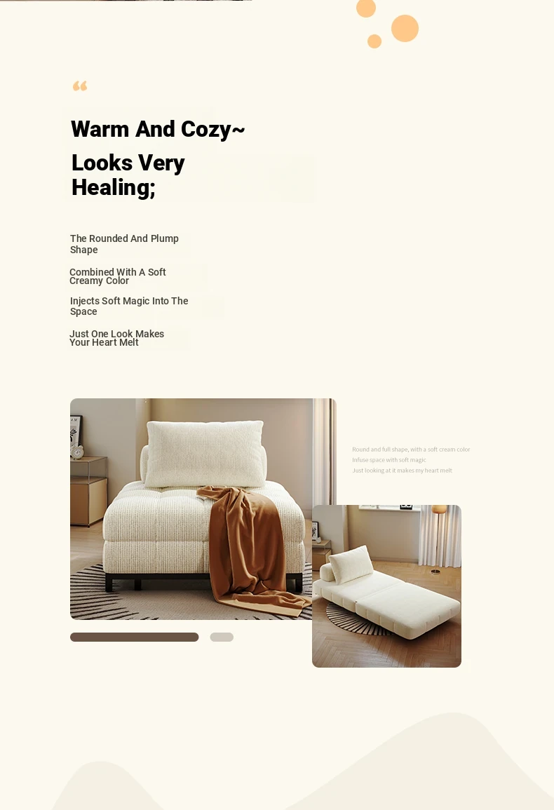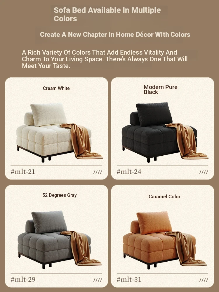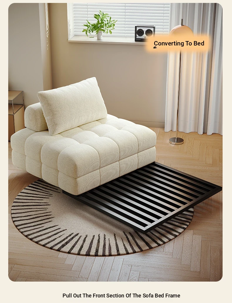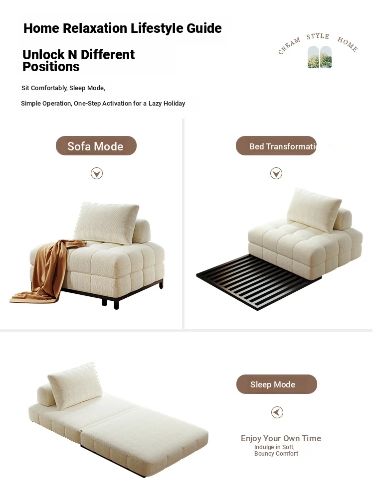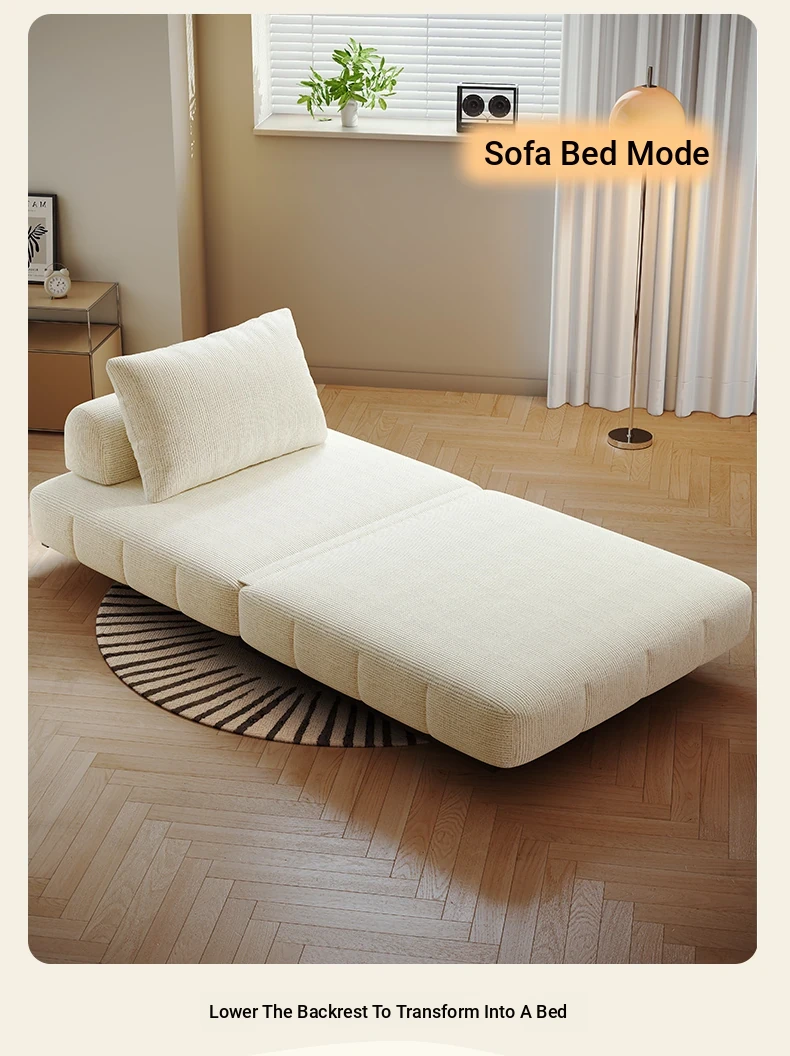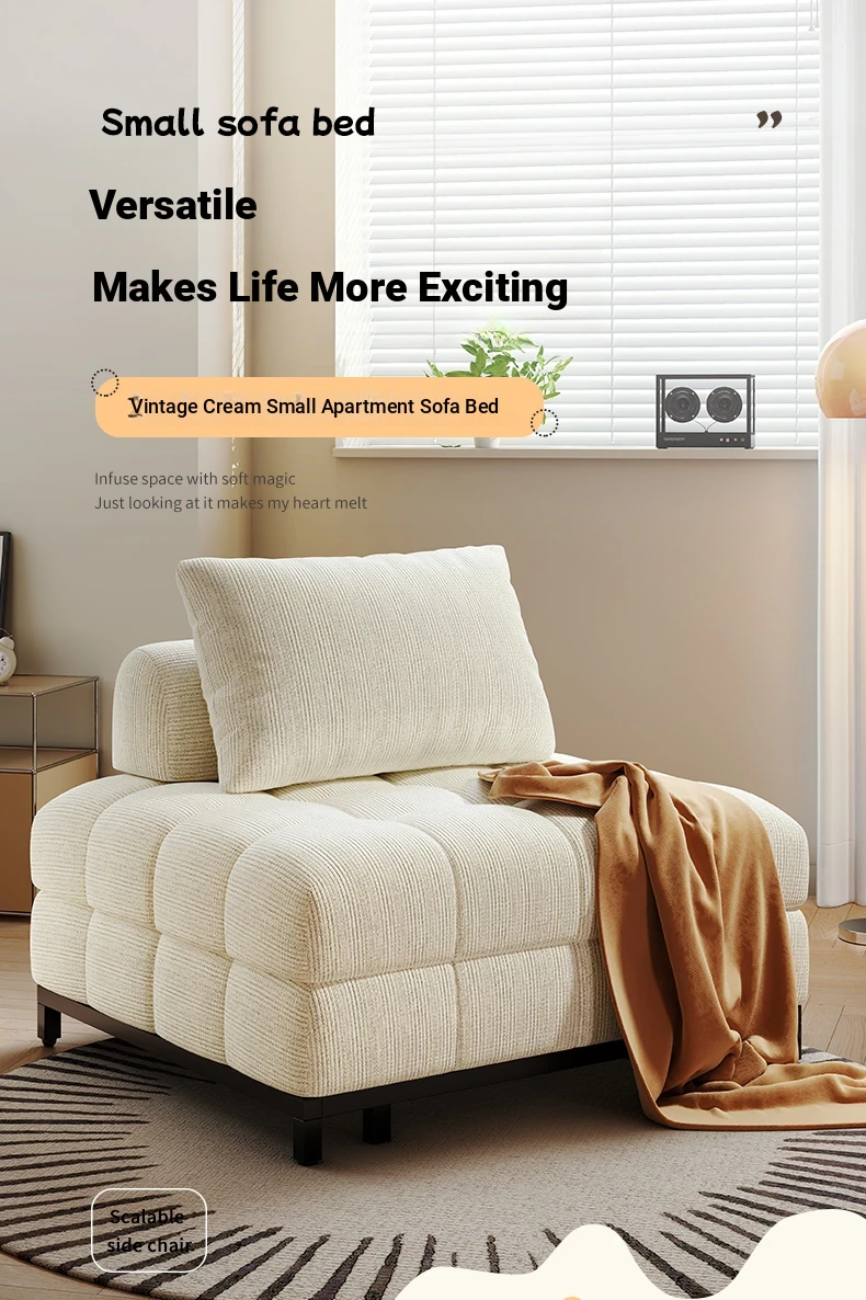 Creamy Wind Folding Single Sofa Bed - Perfect for Small Spaces, Balconies, and Living Rooms. Versatile Puff Sofa for Study and Relaxation - Transformable Design for Sitting and Sleeping!