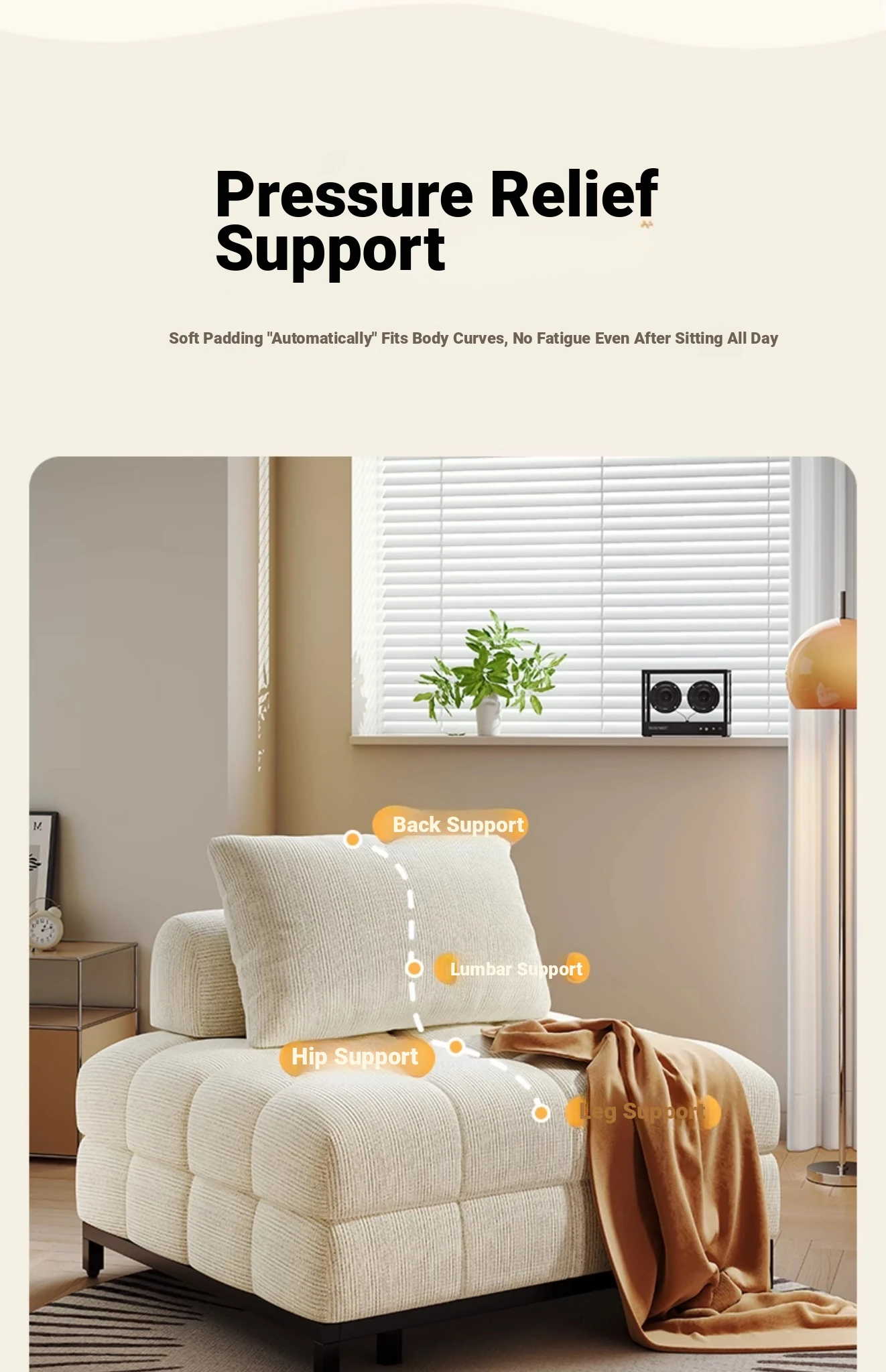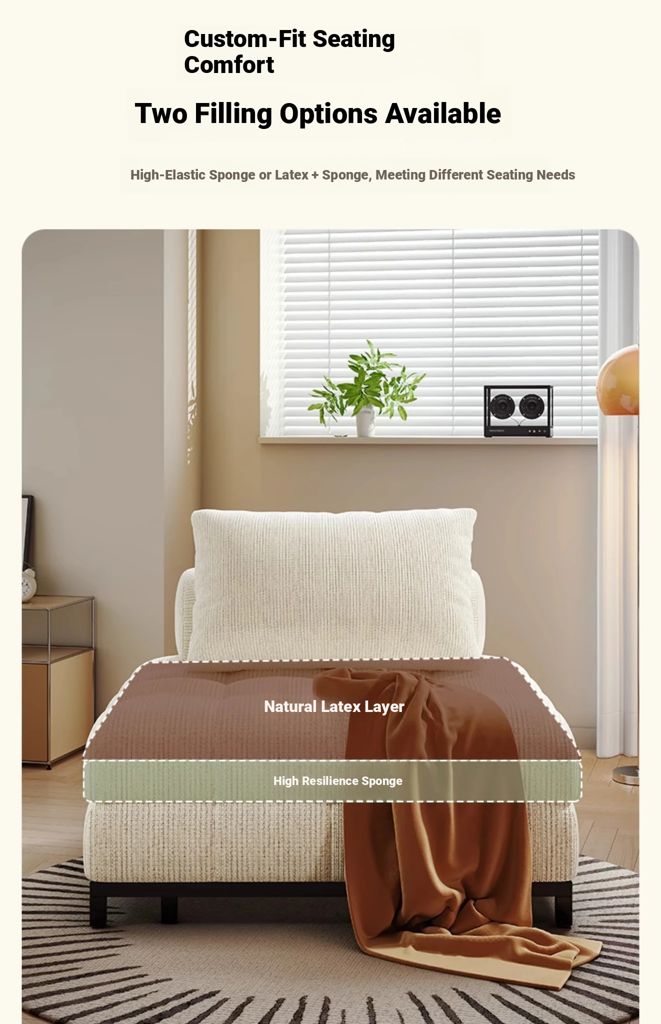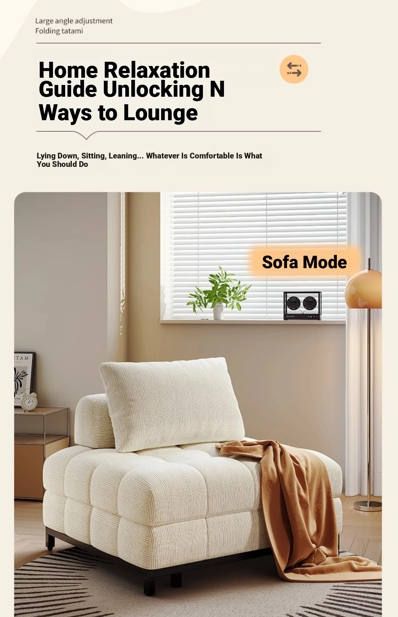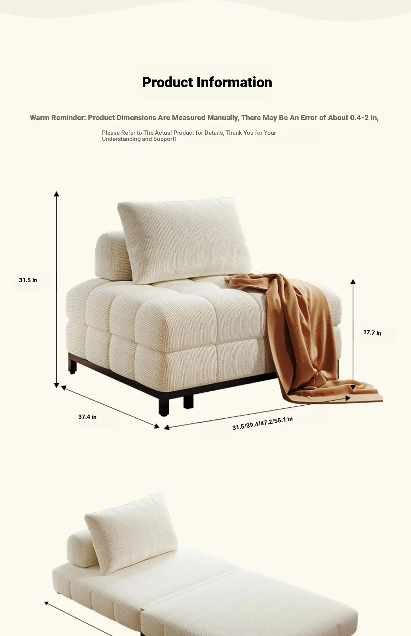 Creamy Wind Folding Single Sofa Bed - Perfect for Small Spaces, Balconies, and Living Rooms. Versatile Puff Sofa for Study and Relaxation - Transformable Design for Sitting and Sleeping!