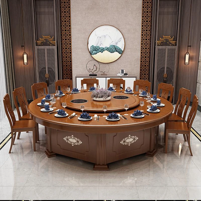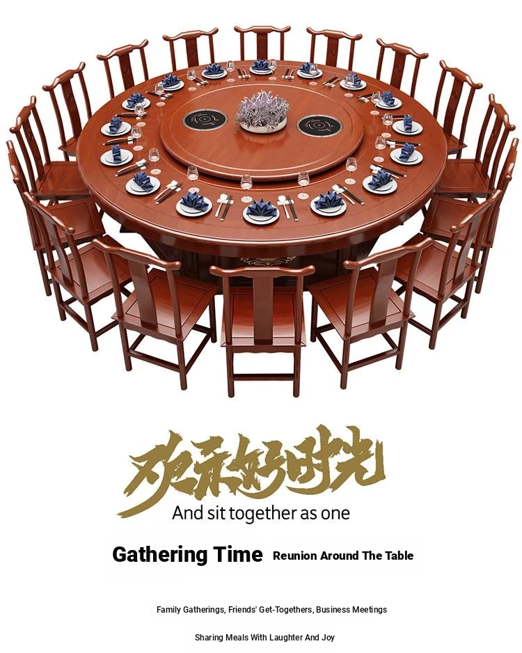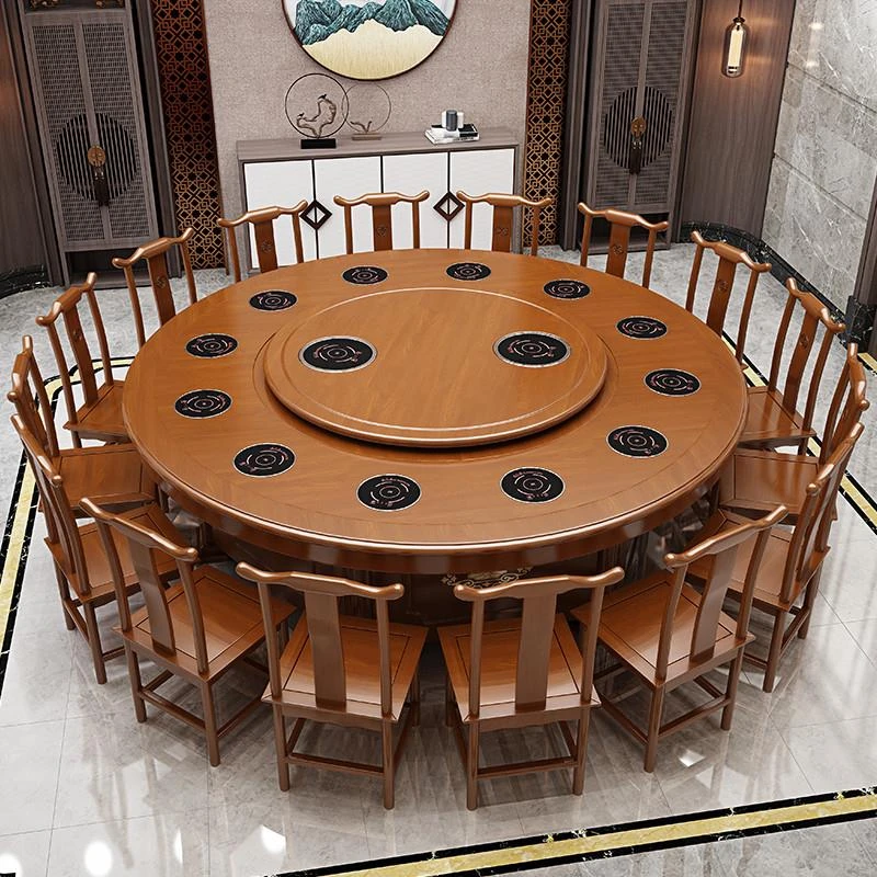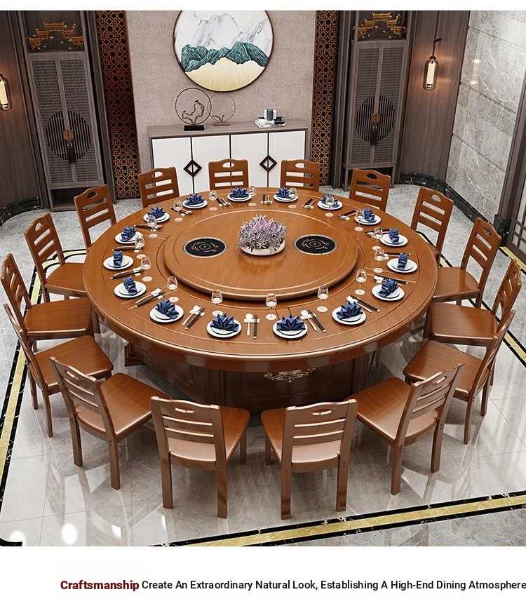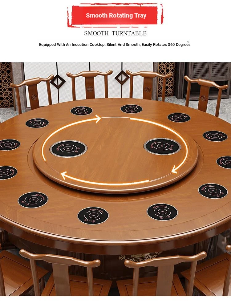 Electric Round Dining Table for 18-20 People - Automatic Rotating Solid Wood Hot Pot Table for Hotels, Restaurants & Banquets - Perfect for Family Gatherings and Celebrations