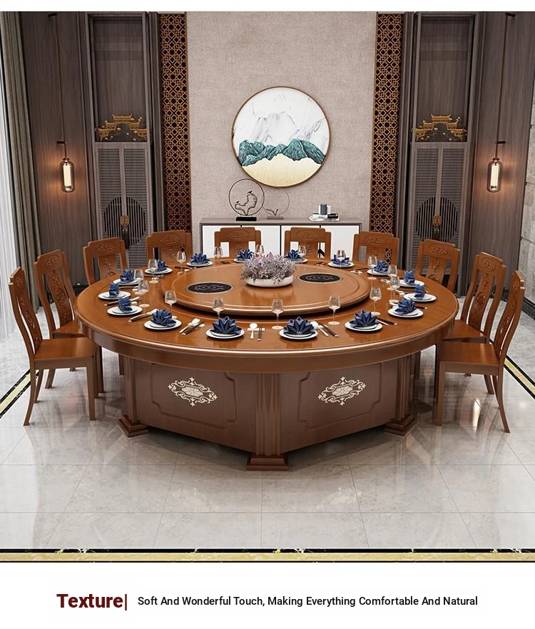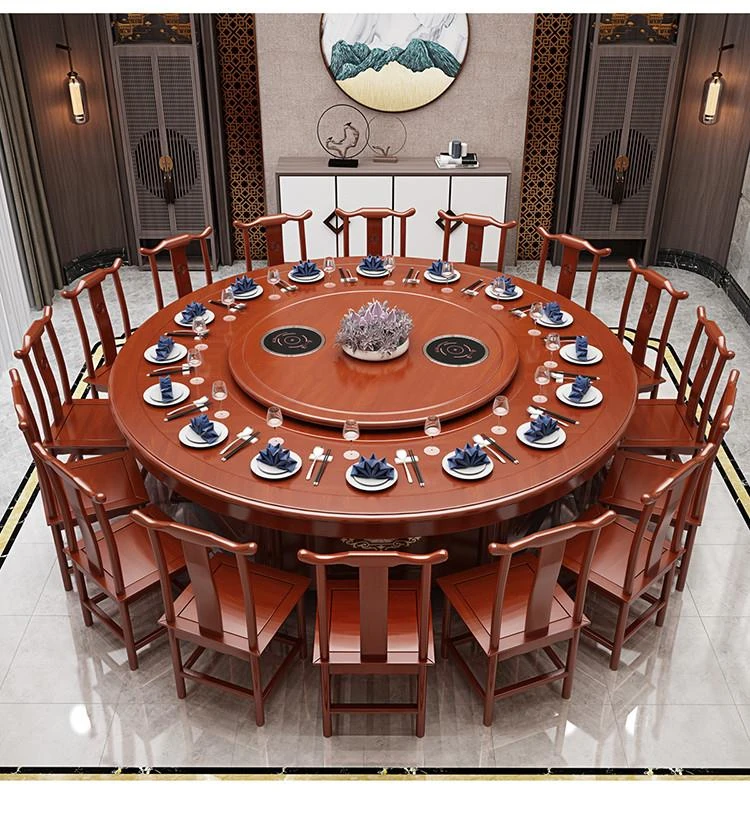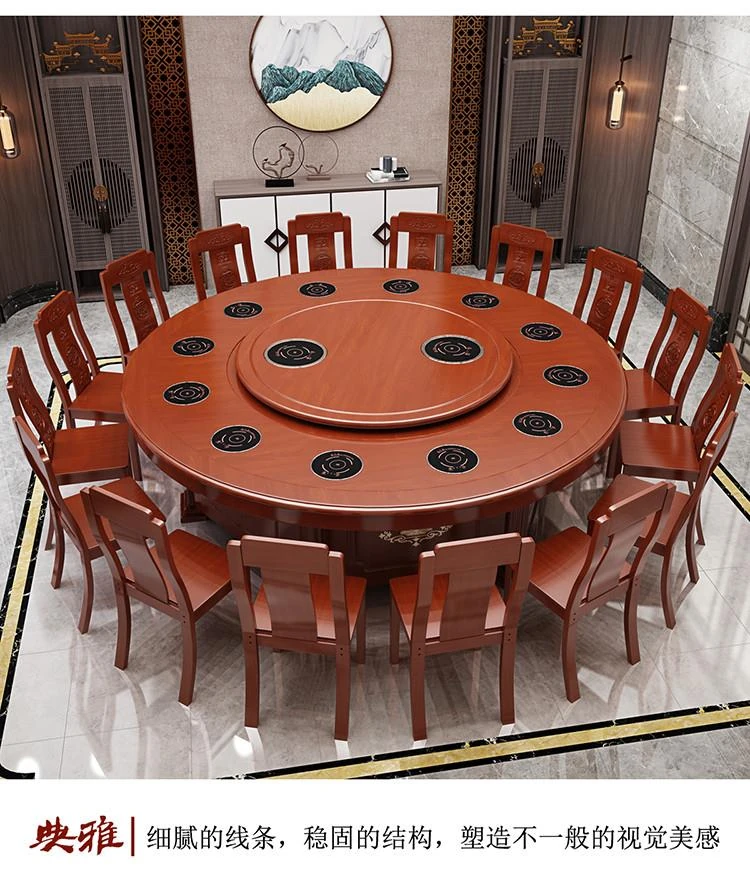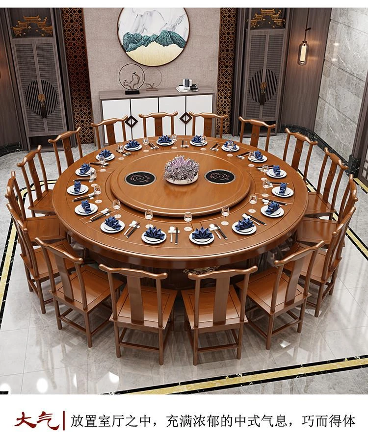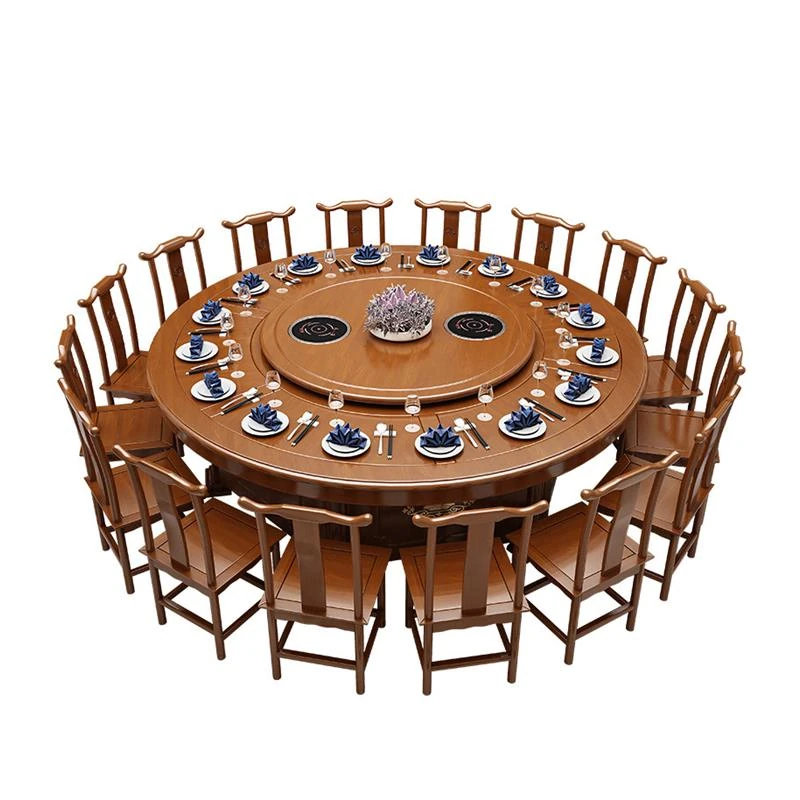 Electric Round Dining Table for 18-20 People - Automatic Rotating Solid Wood Hot Pot Table for Hotels, Restaurants & Banquets - Perfect for Family Gatherings and Celebrations