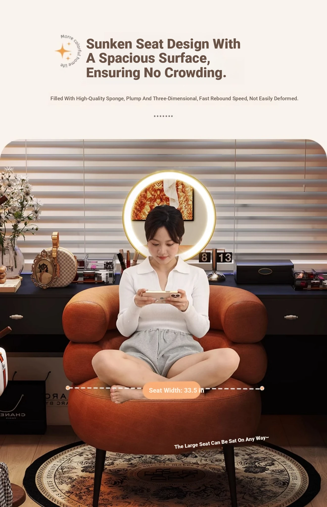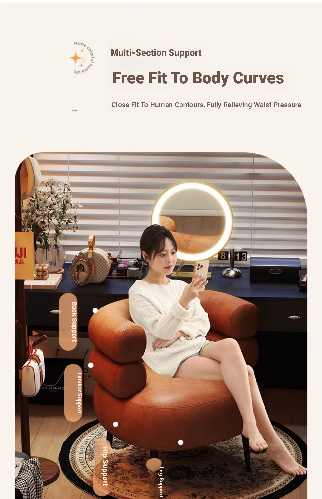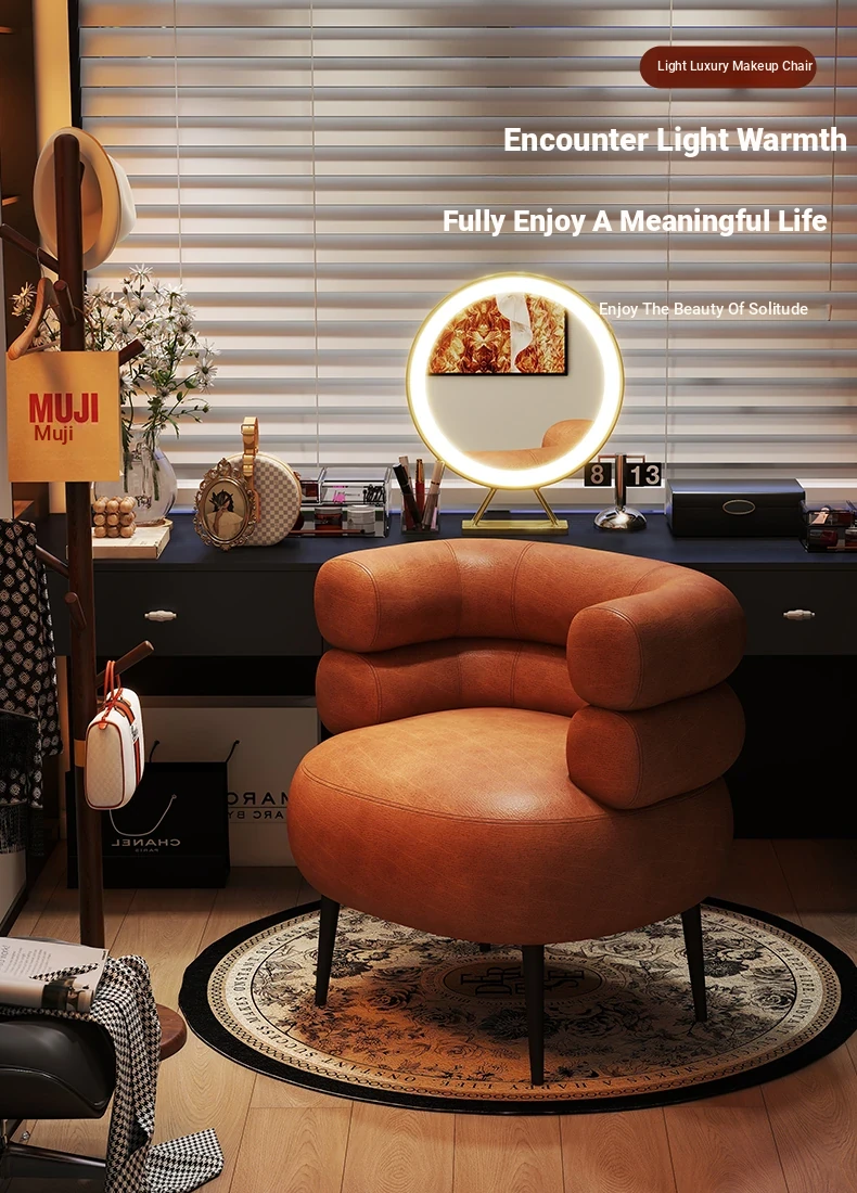Elegant Bedroom Makeup Chair – Luxury Dressing Table Stool with Backrest, Perfect for Walk-in Closets, Home Use, and Nail Art. Stylish Single Sofa Seat for a Chic Touch!