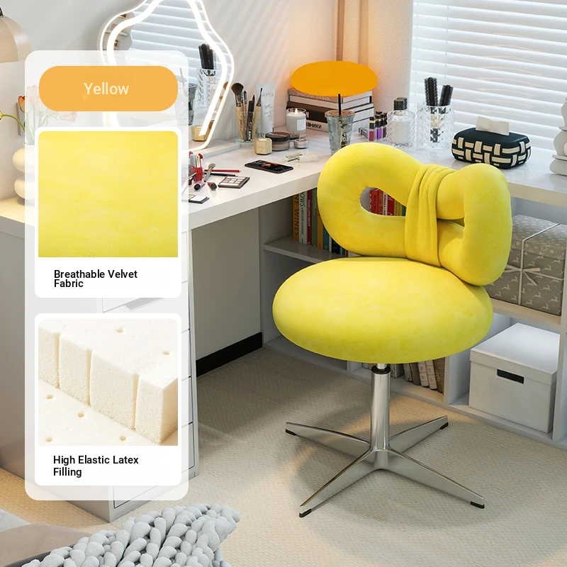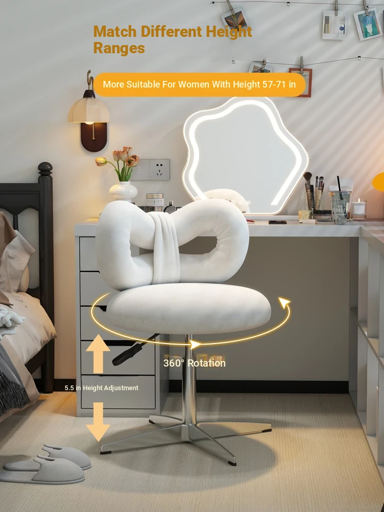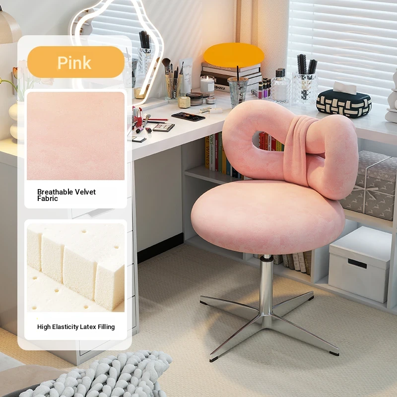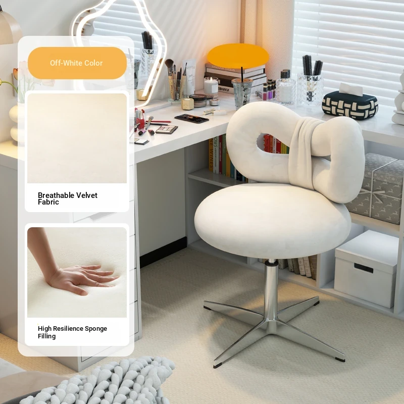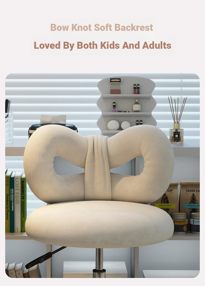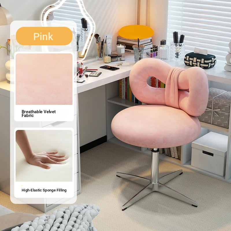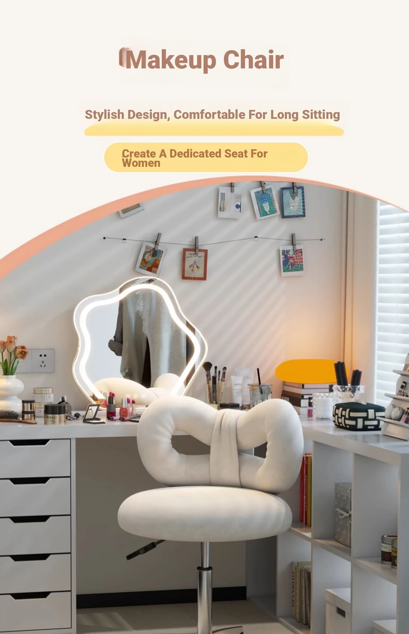 Elegant Makeup Stool with Creamy Bow Design - Luxurious Dressing Room Vanity Chair, Adjustable Height Nail Art Stool for Home Use