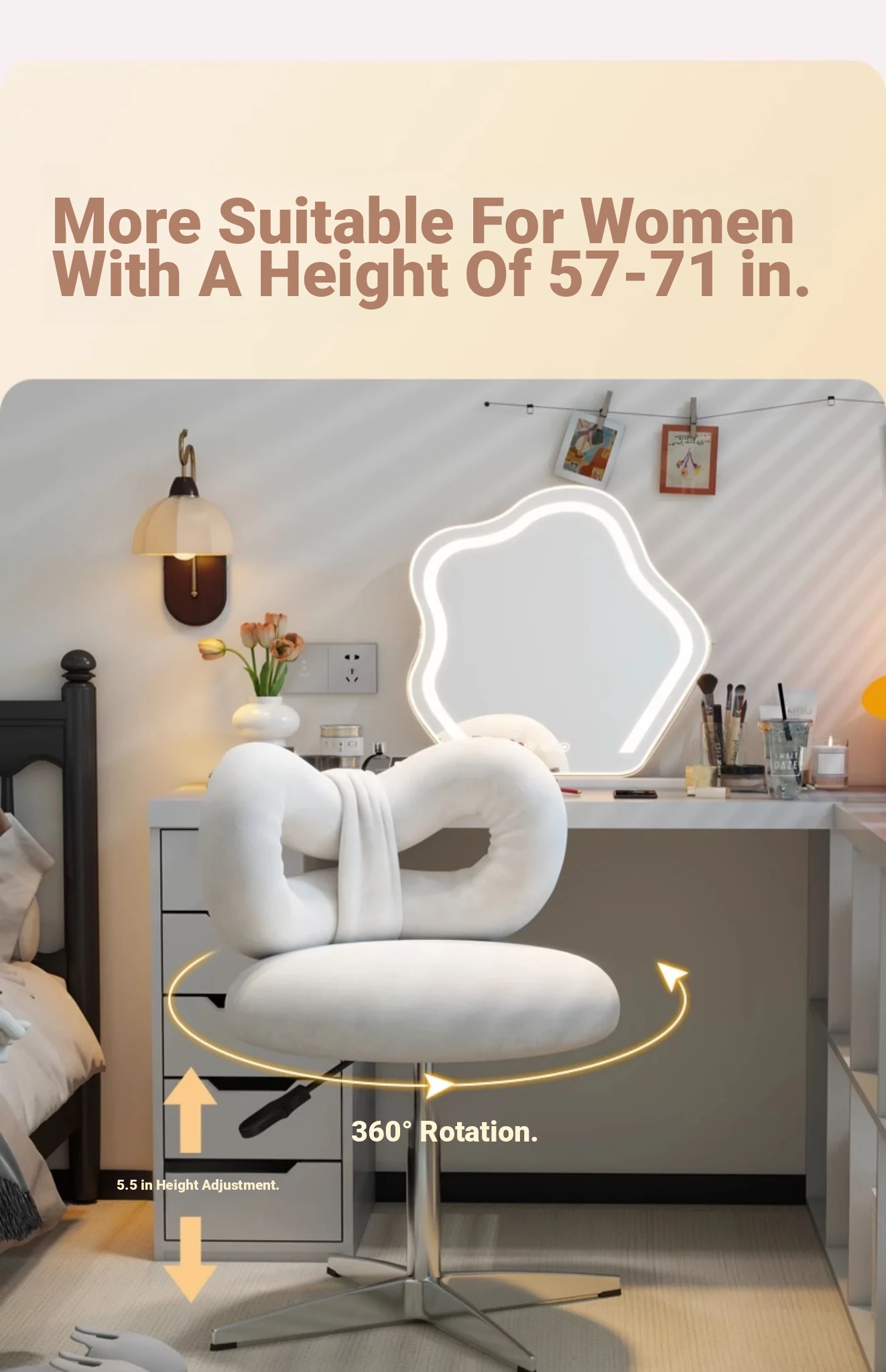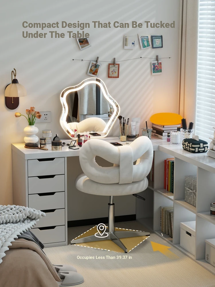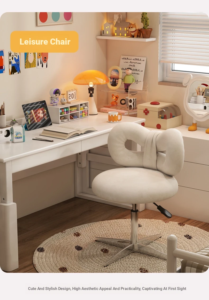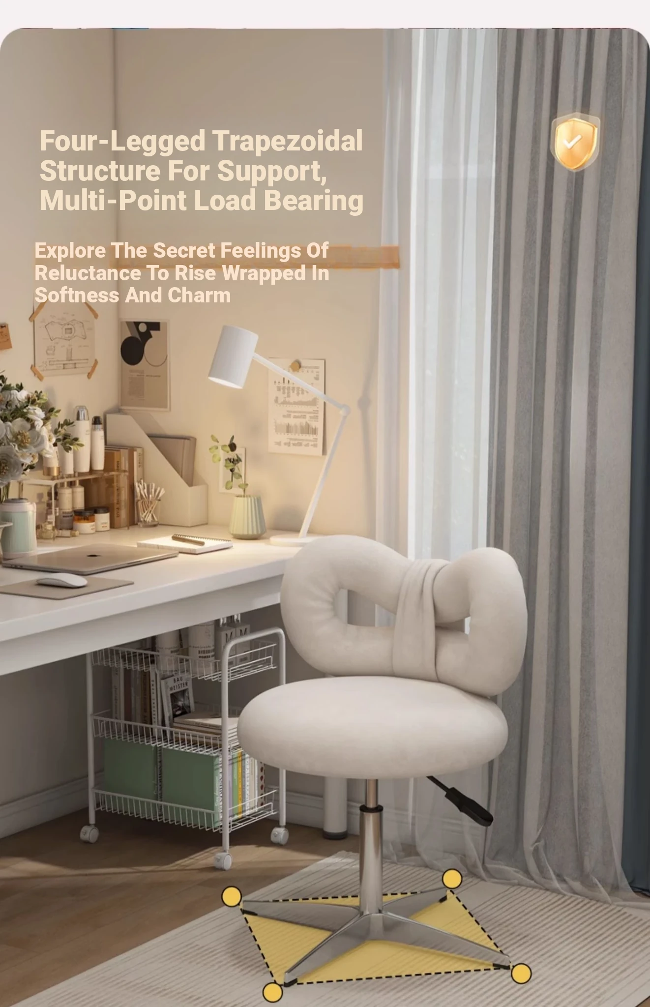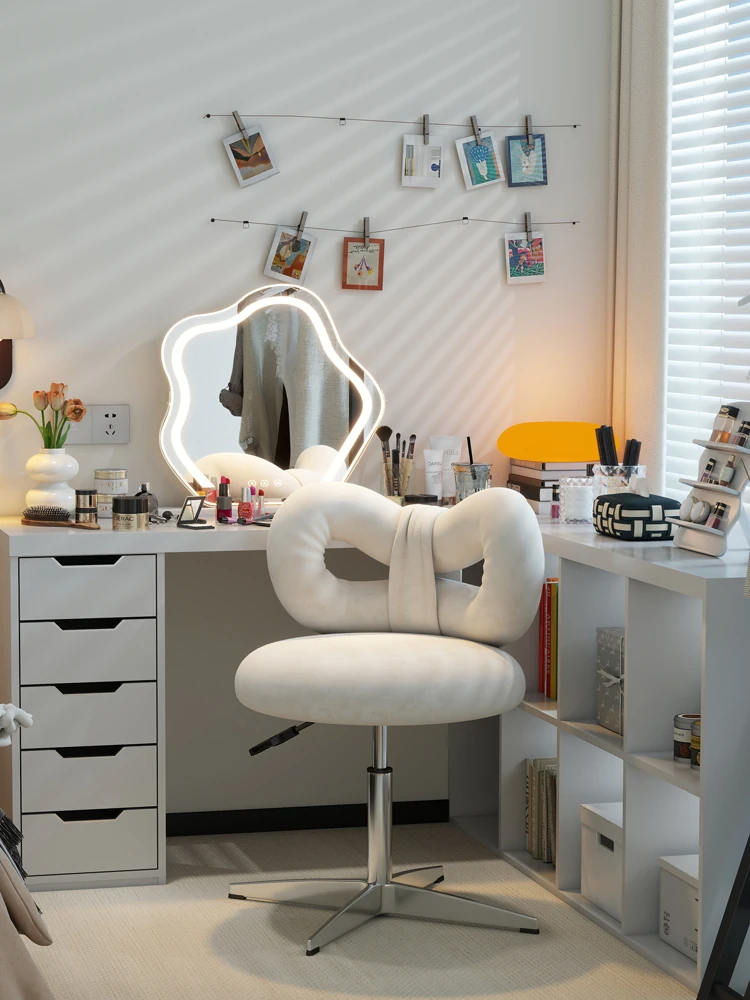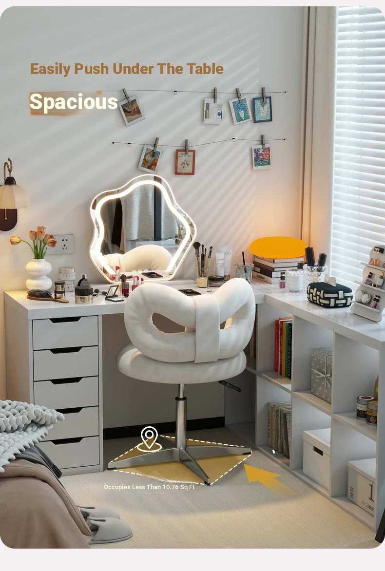 Elegant Makeup Stool with Creamy Bow Design - Luxurious Dressing Room Vanity Chair, Adjustable Height Nail Art Stool for Home Use