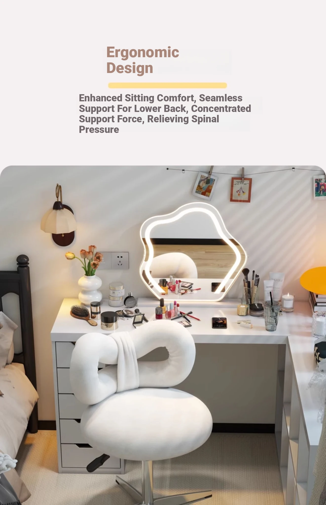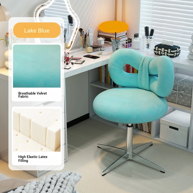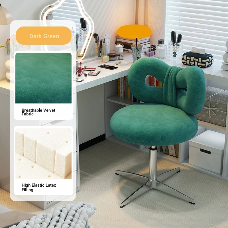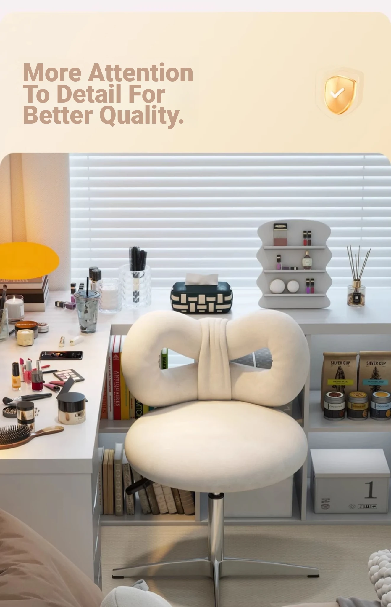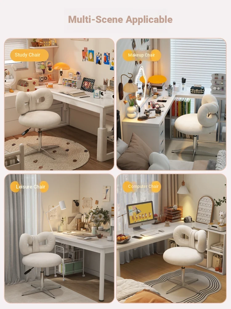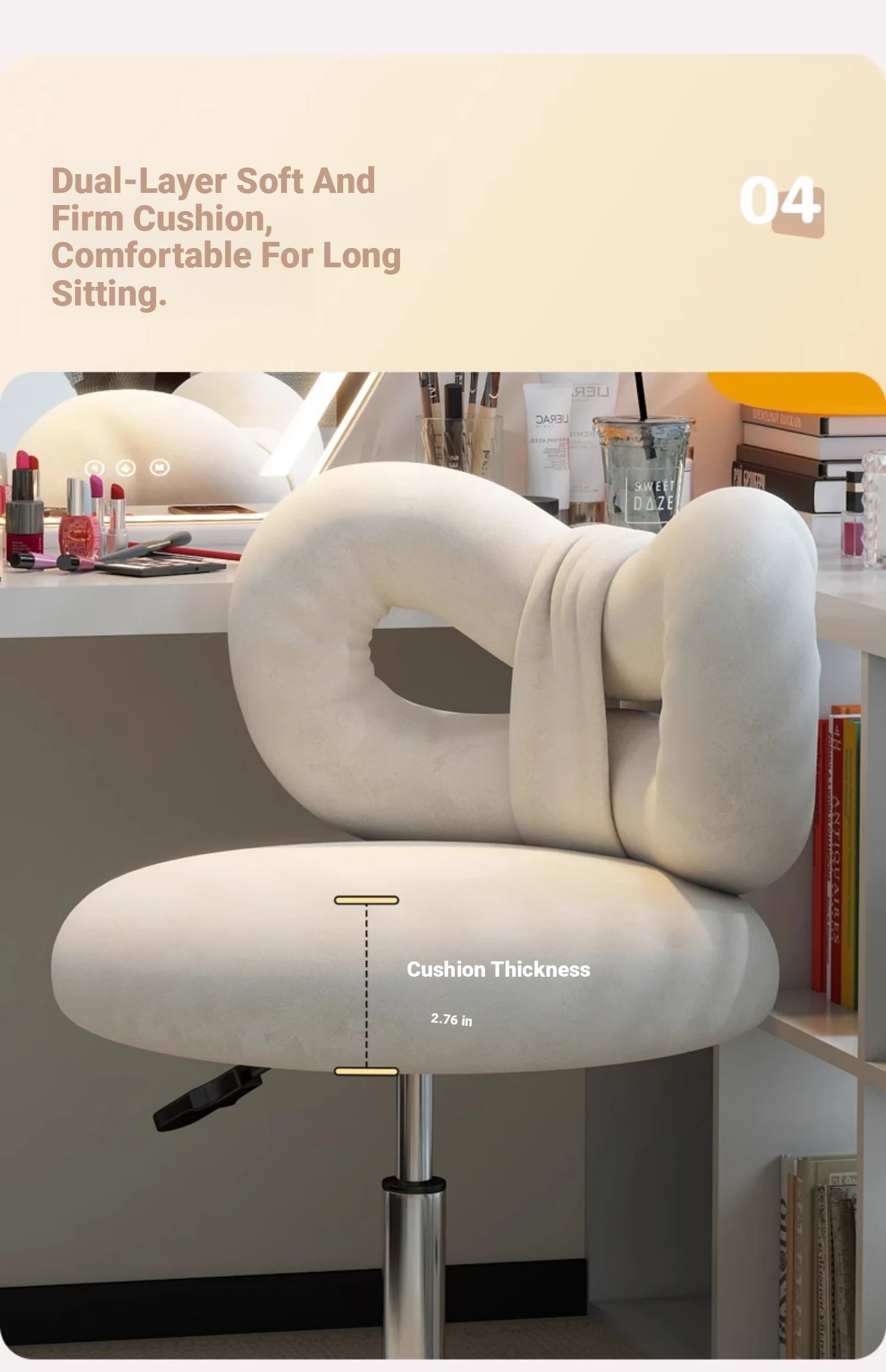Elegant Makeup Stool with Creamy Bow Design - Luxurious Dressing Room Vanity Chair, Adjustable Height Nail Art Stool for Home Use