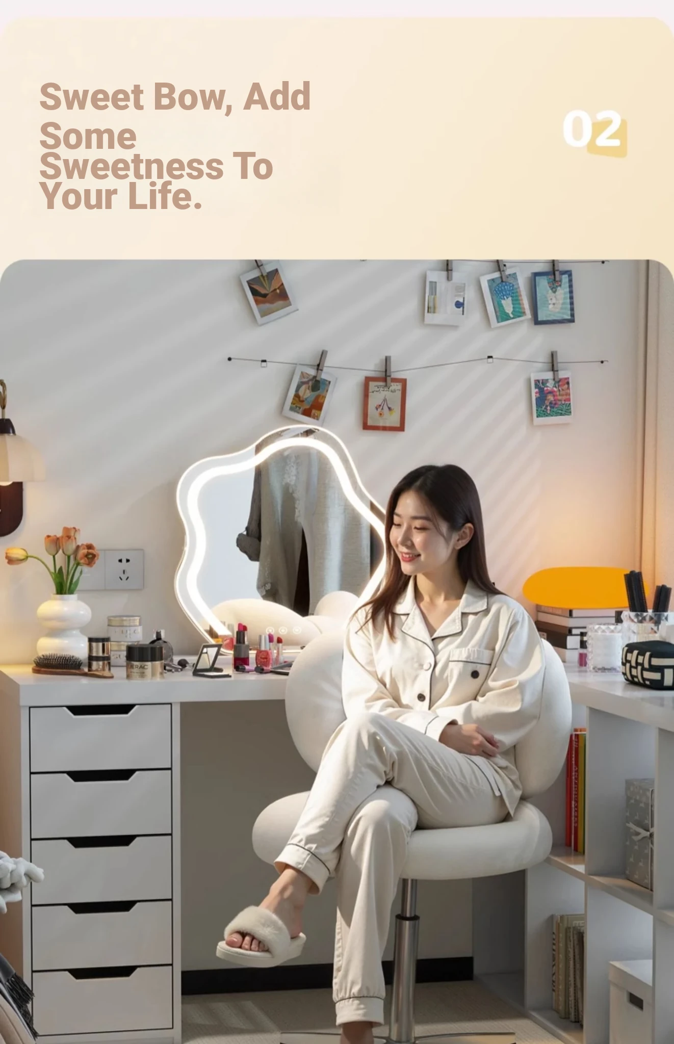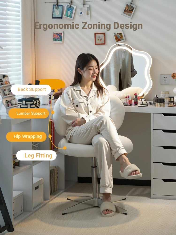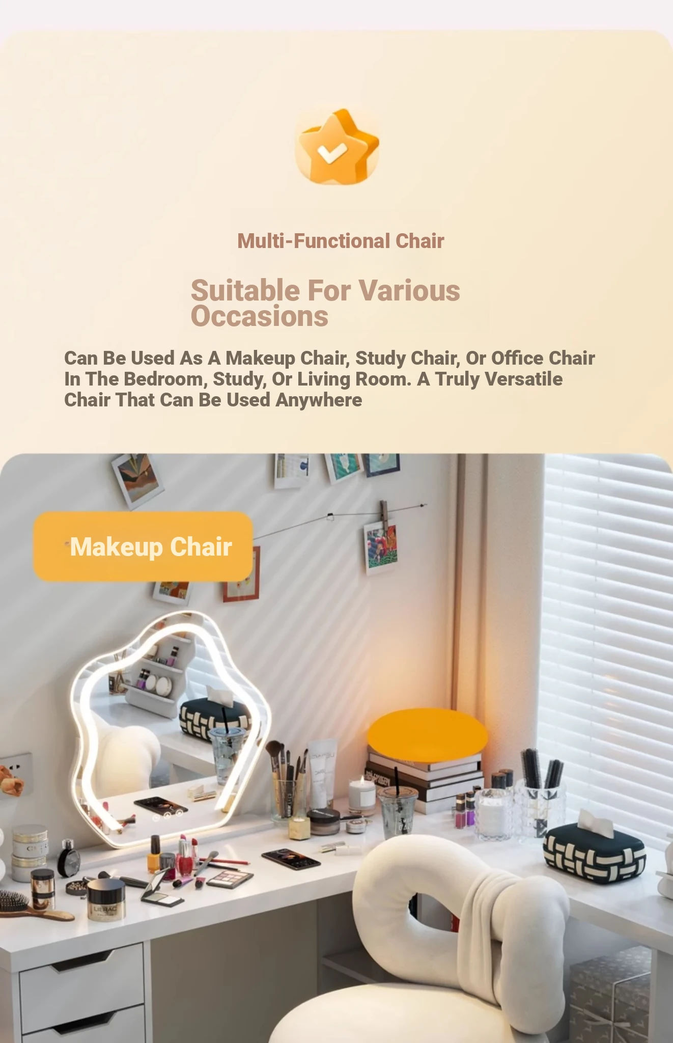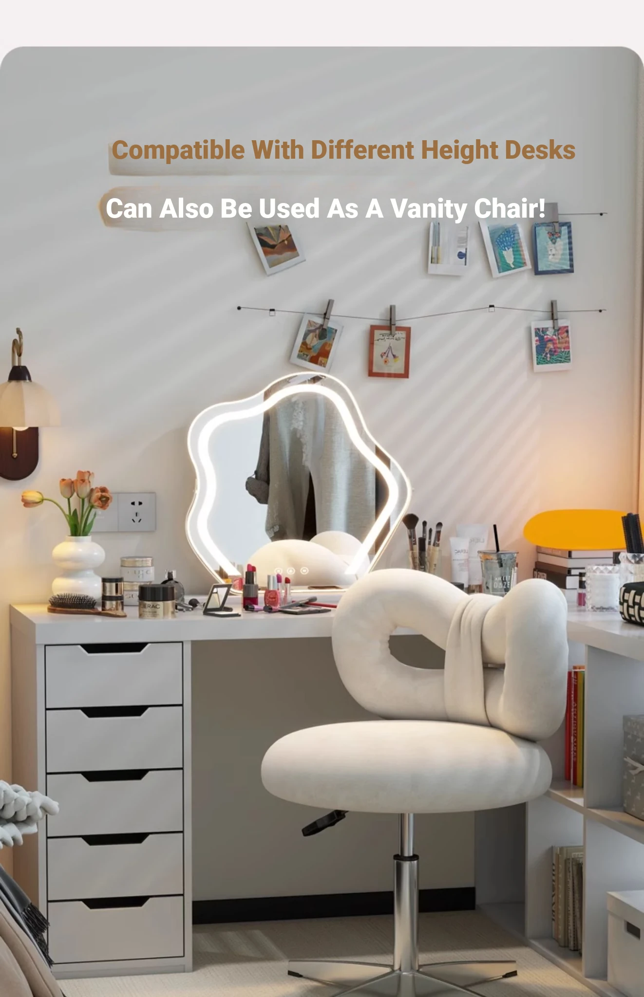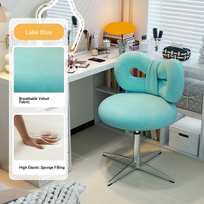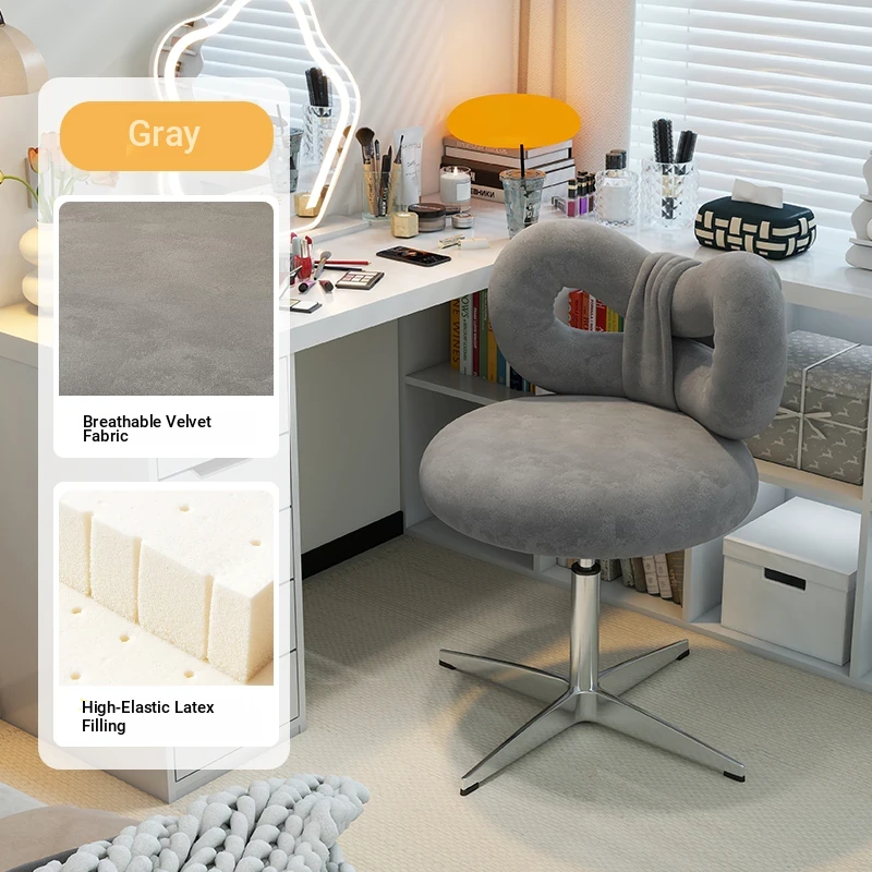 Elegant Makeup Stool with Creamy Bow Design - Luxurious Dressing Room Vanity Chair, Adjustable Height Nail Art Stool for Home Use