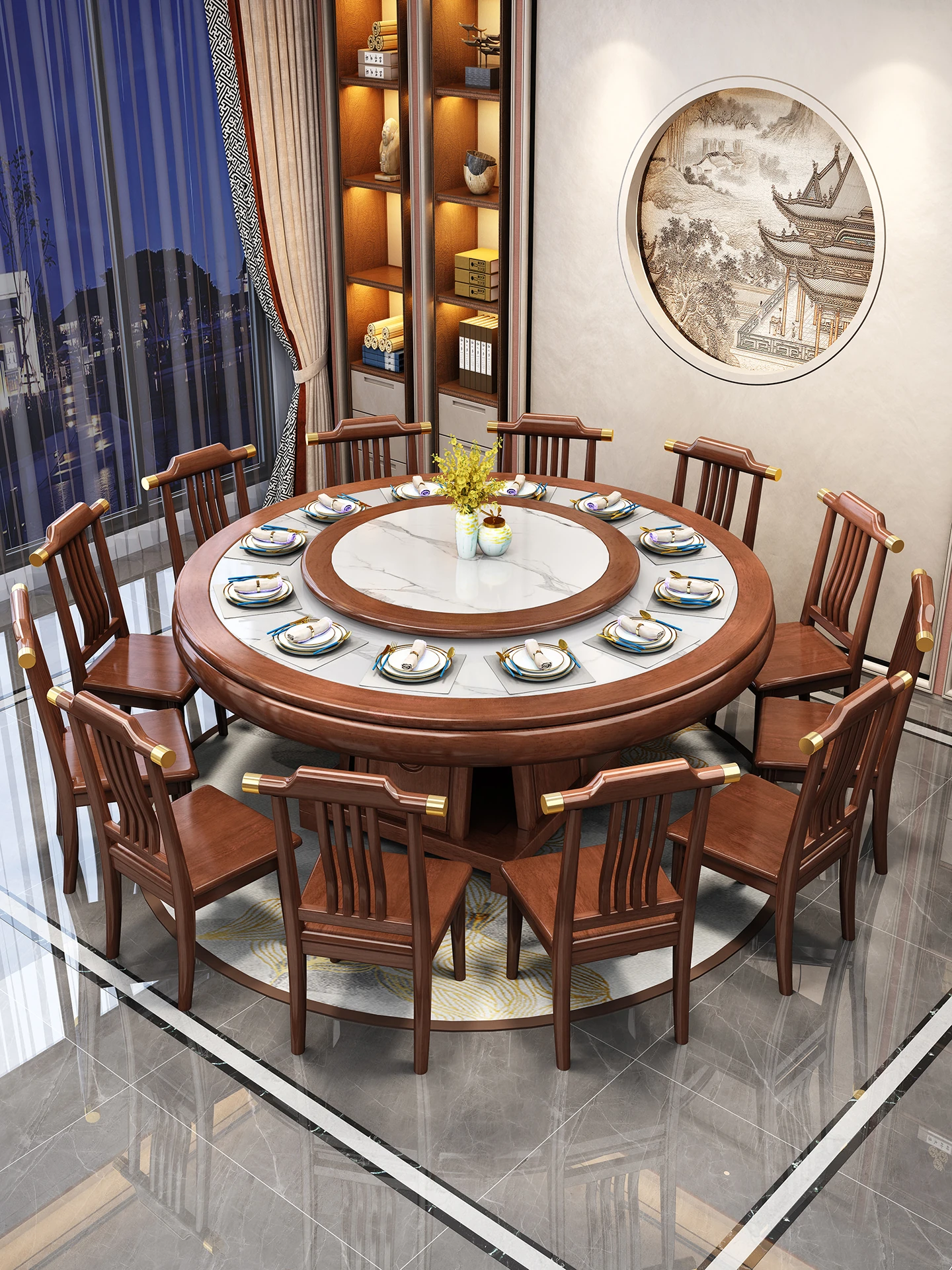 70.87 in rubber wood dining table + dining chair x12