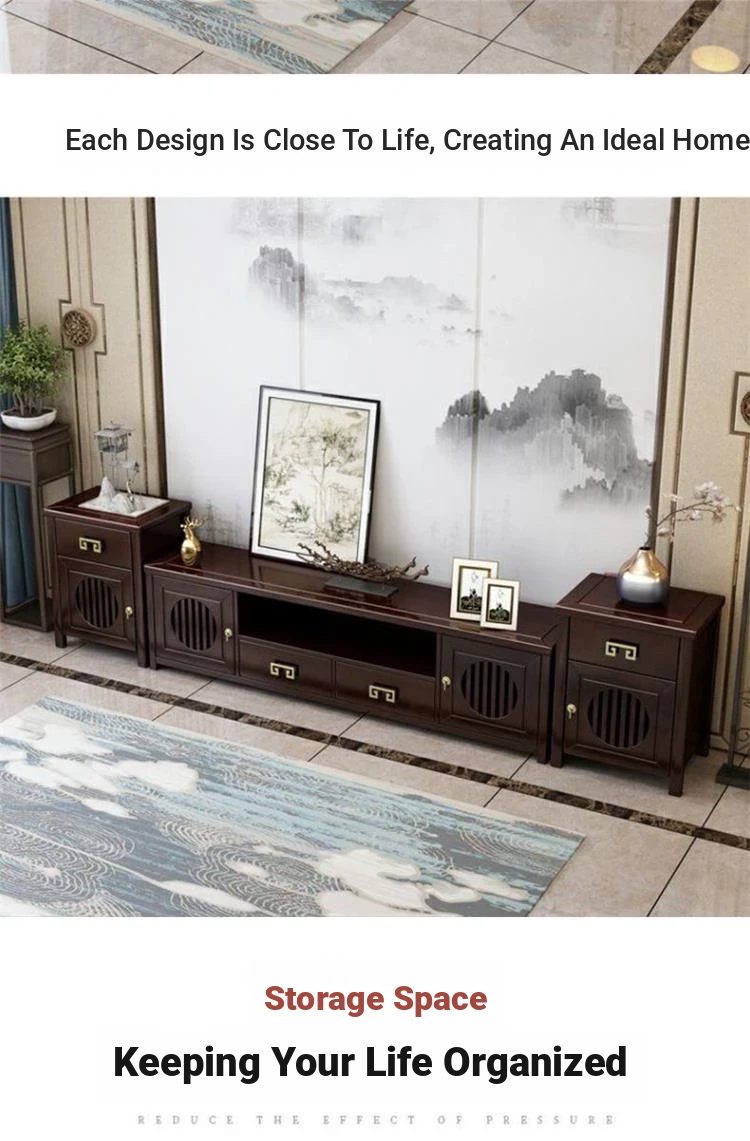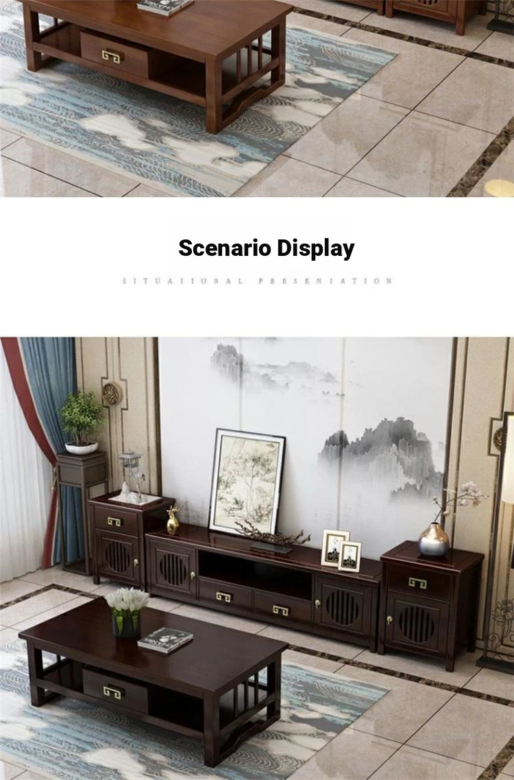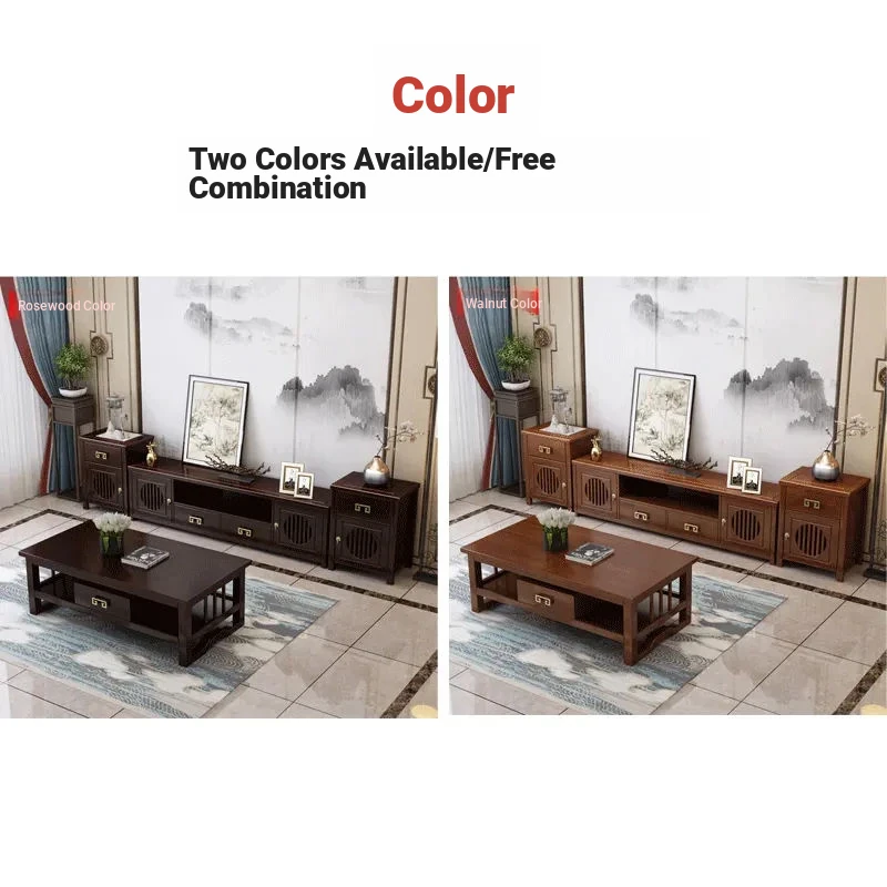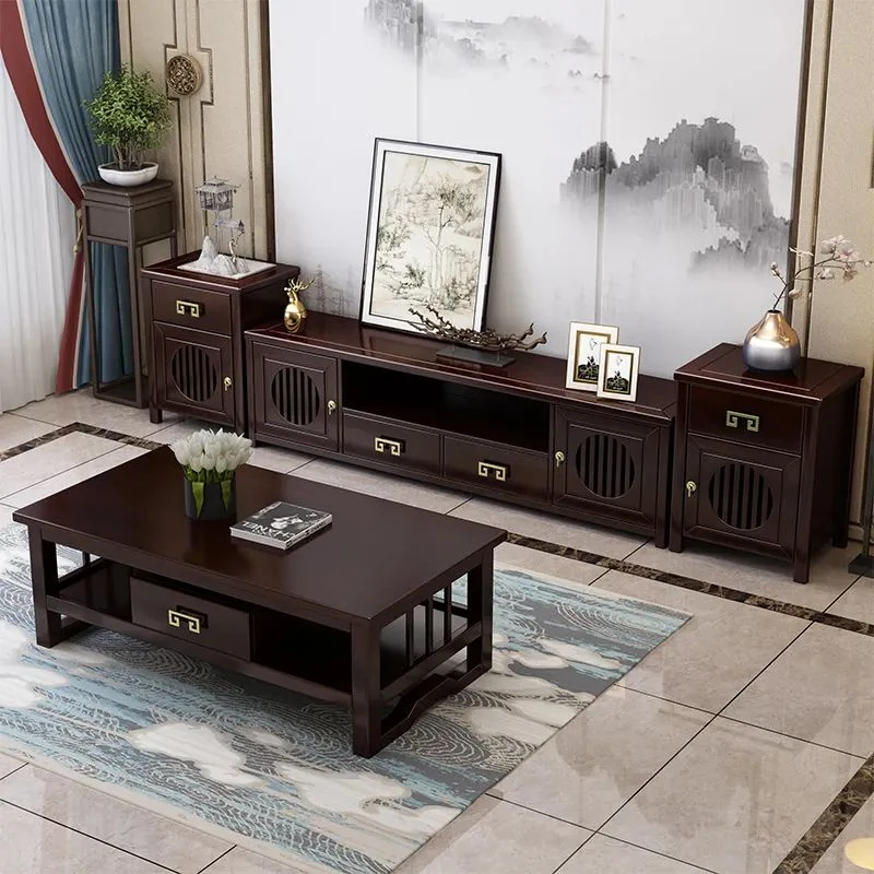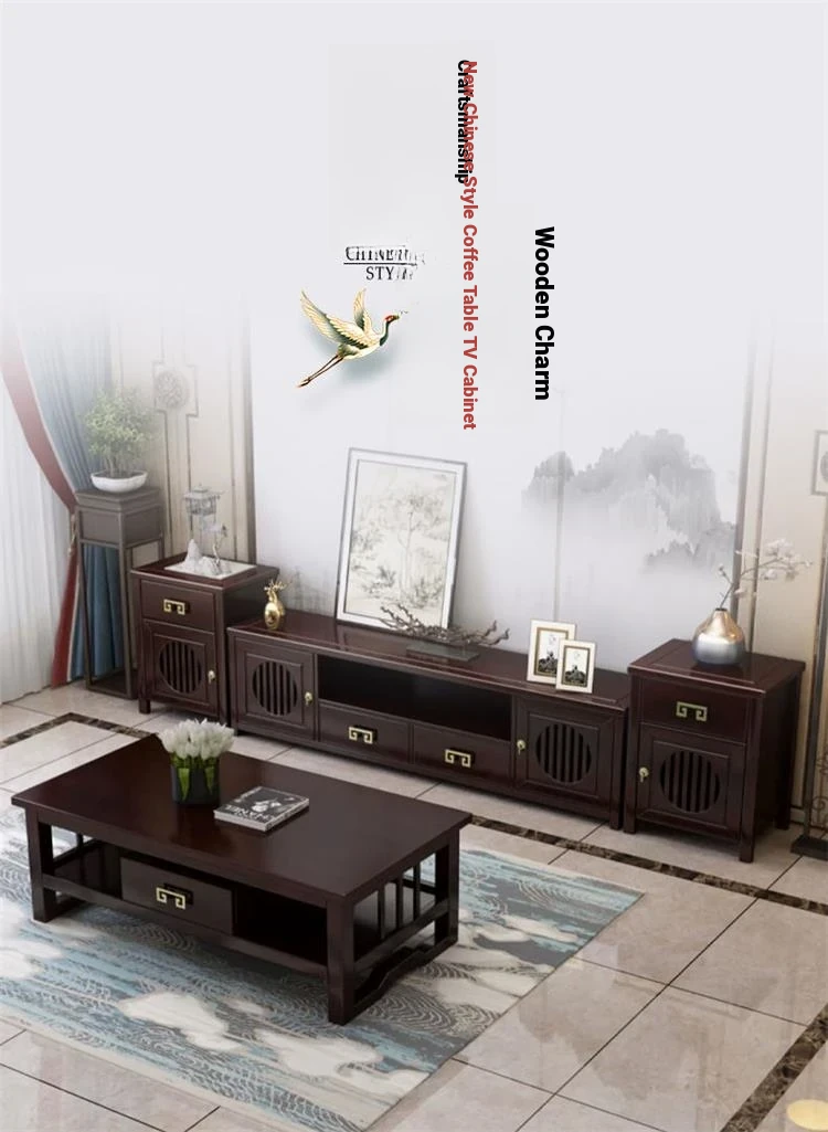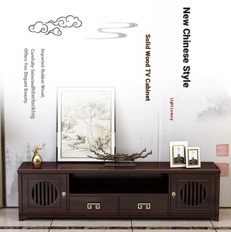 Elegant New Chinese Style Solid Wood TV Cabinet Set for Home - Floor-standing, Perfect for Any Size Living Room, Complete Combination for a Stylish and Functional Entertainment Center.
