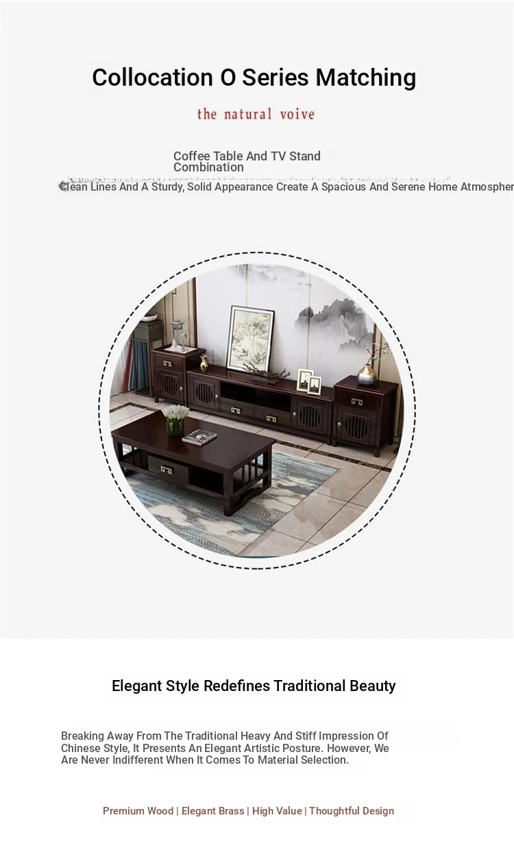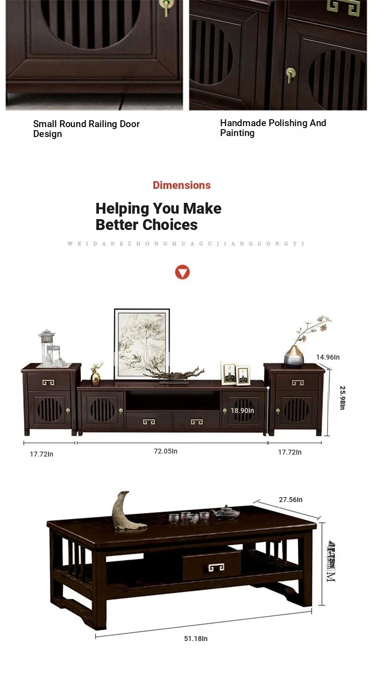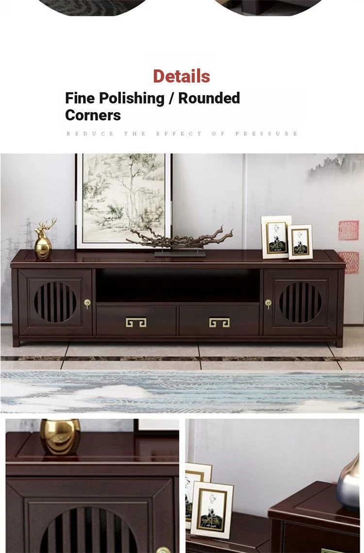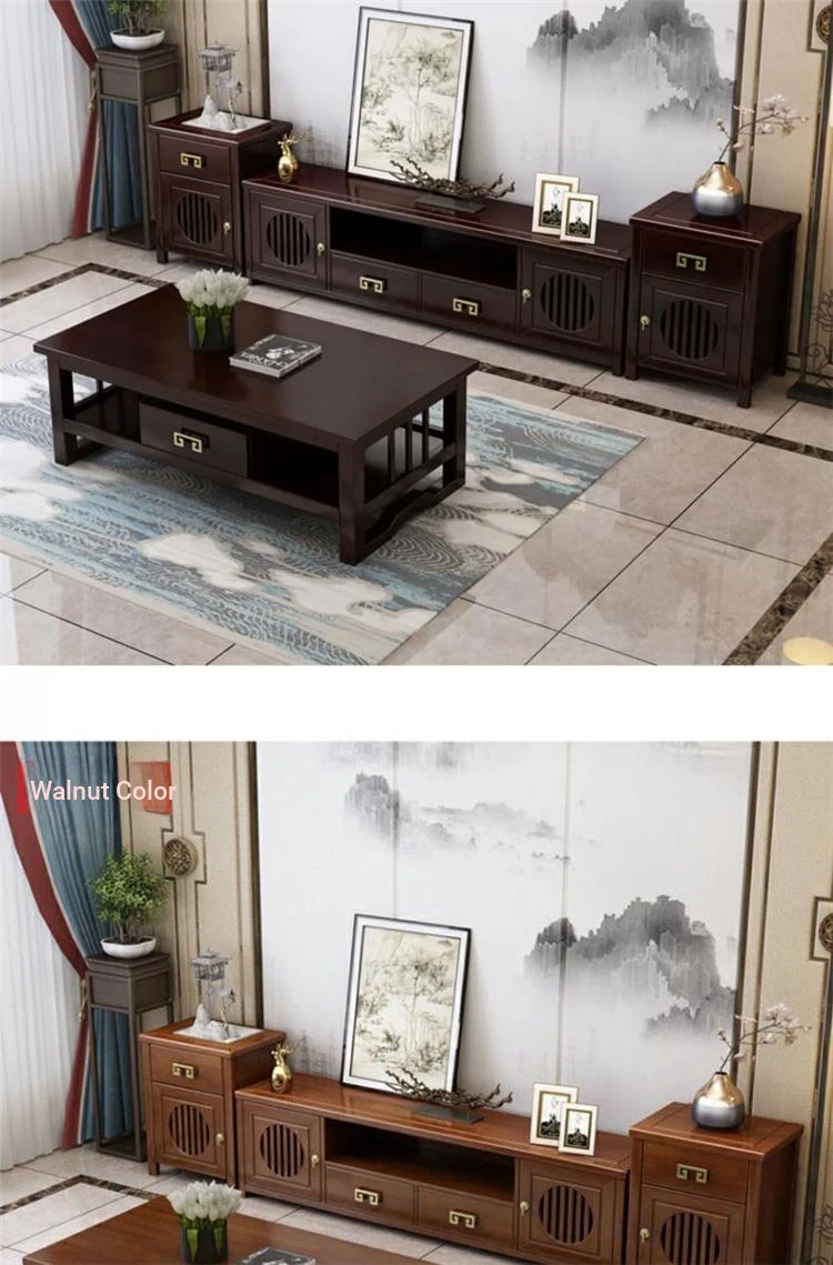 Elegant New Chinese Style Solid Wood TV Cabinet Set for Home - Floor-standing, Perfect for Any Size Living Room, Complete Combination for a Stylish and Functional Entertainment Center.