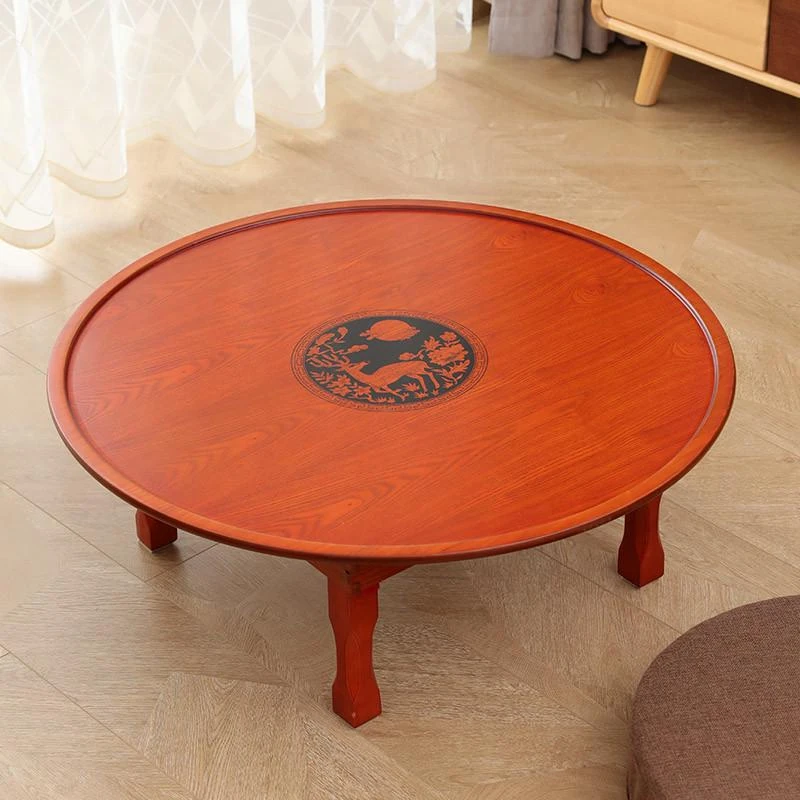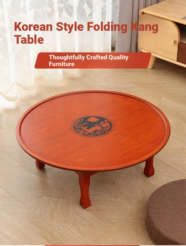 Foldable Round Tatami Low Table - Perfect for Dining or Relaxing! Korean-style Window Table, Ideal for Home Use and Cozy Spaces. Perfect for Family Meals and Lazy Days!