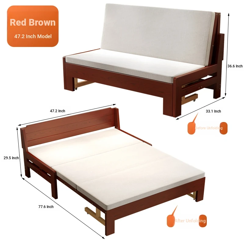 47.24 in wide reddish brown (removable mattress)