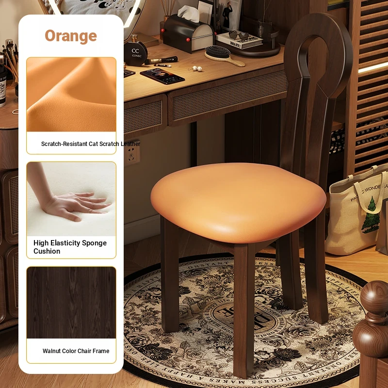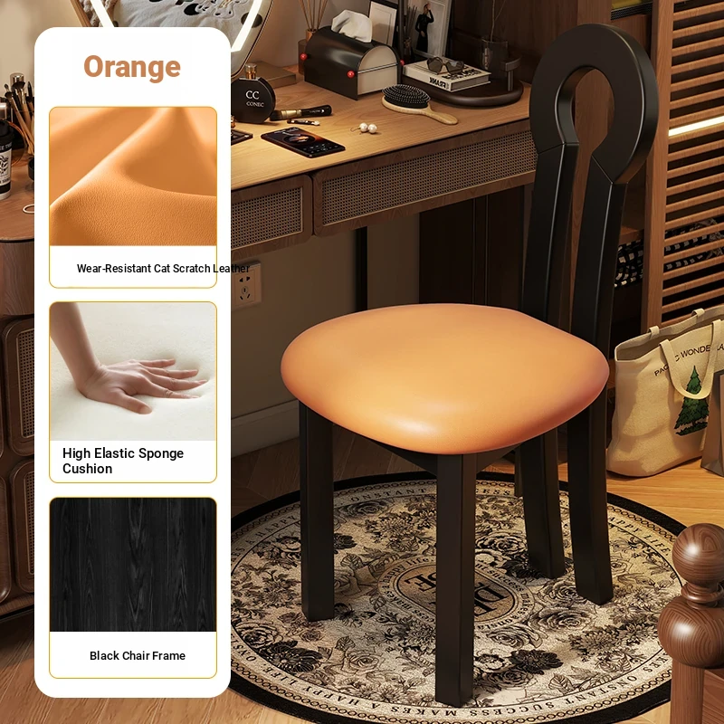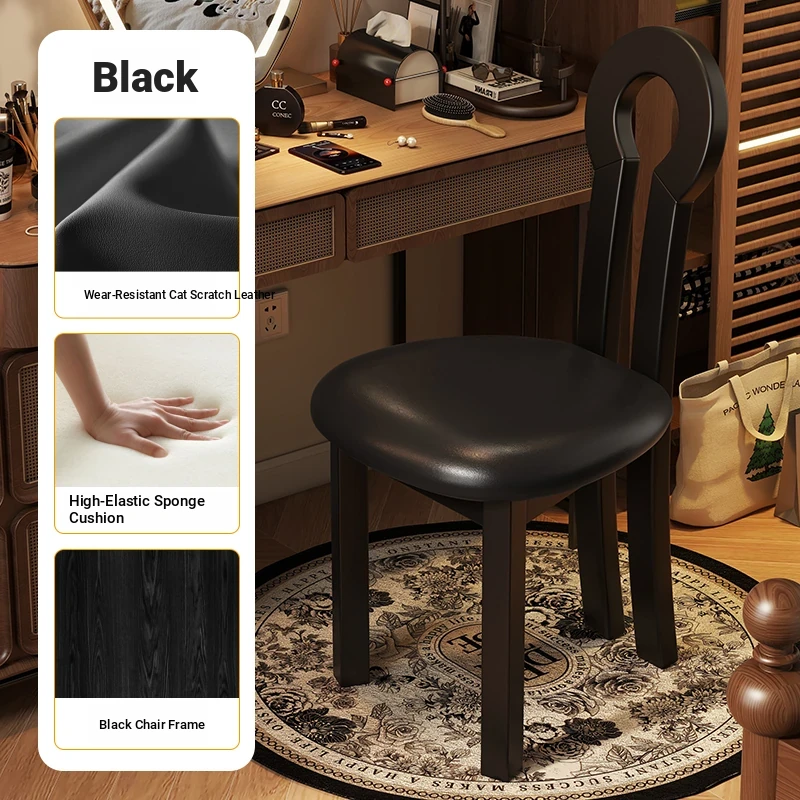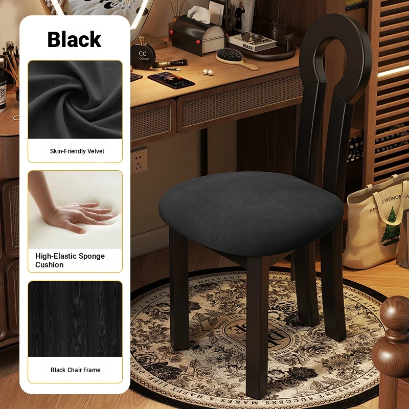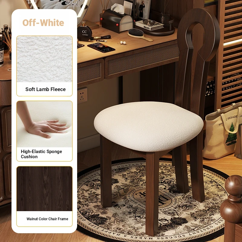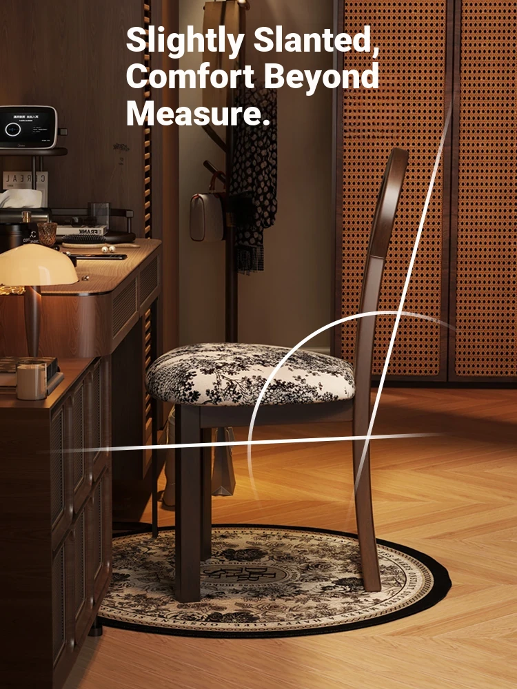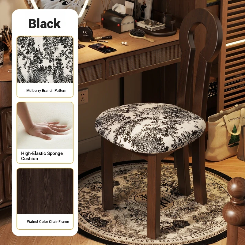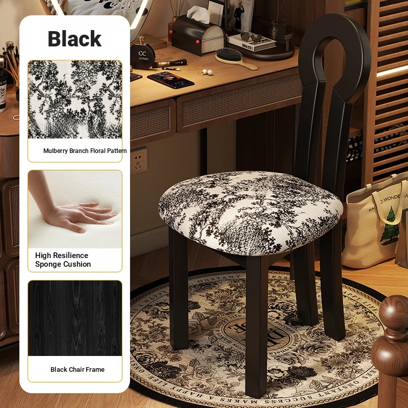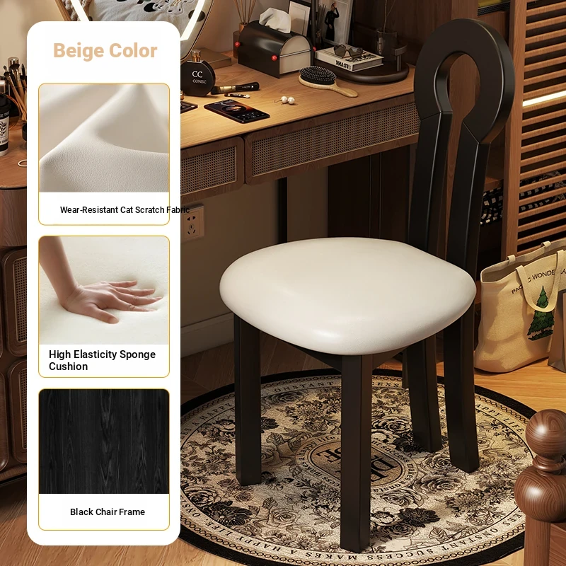 French Vintage Vanity Stool - Elegant Makeup Chair for Girls' Bedrooms, Backrest Design, Wabi-Sabi Style, Home Use, Solid Wood Antique Charm