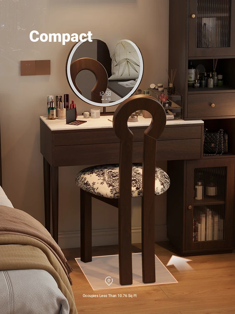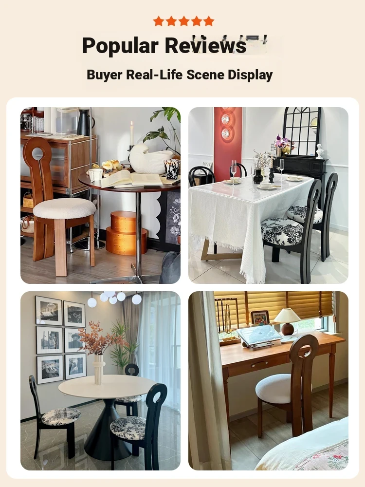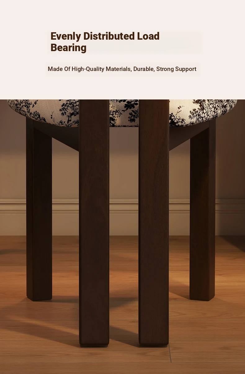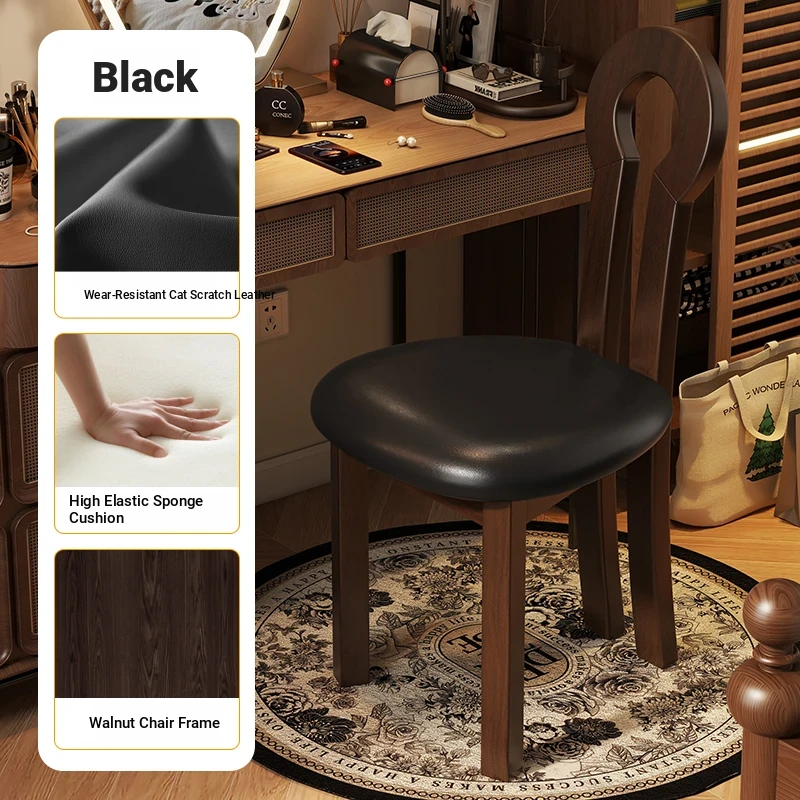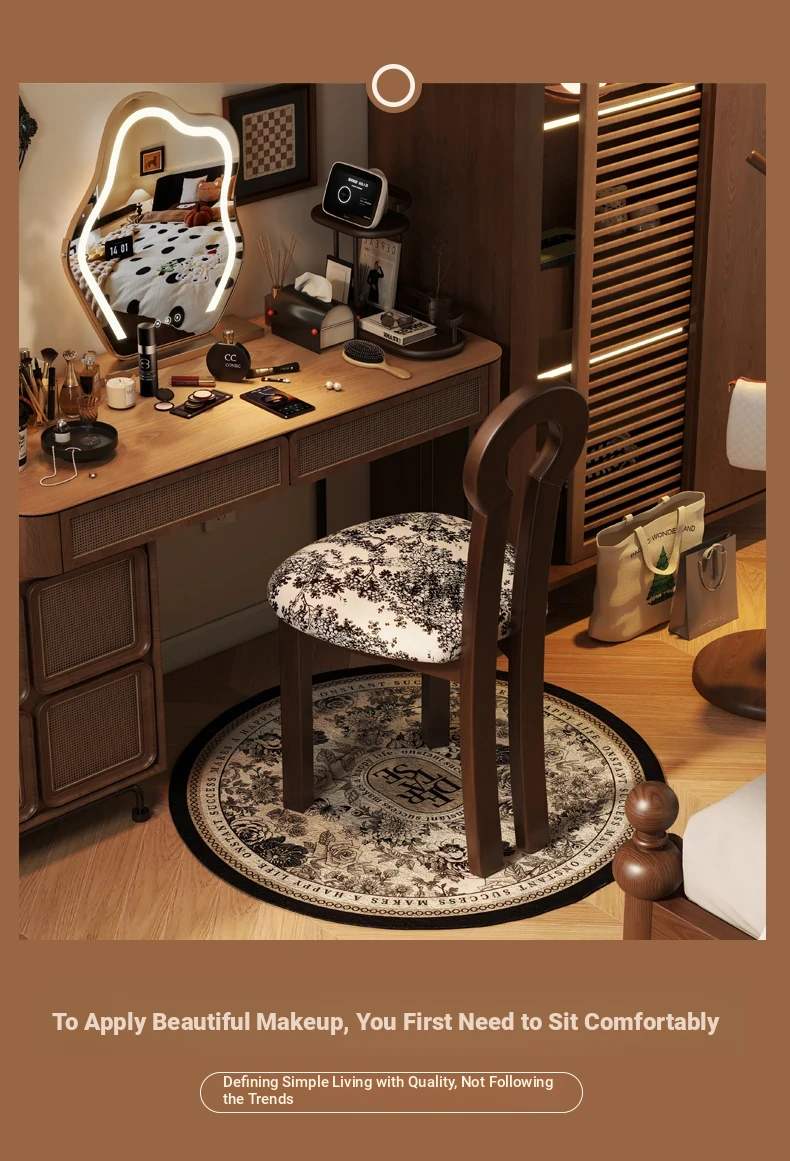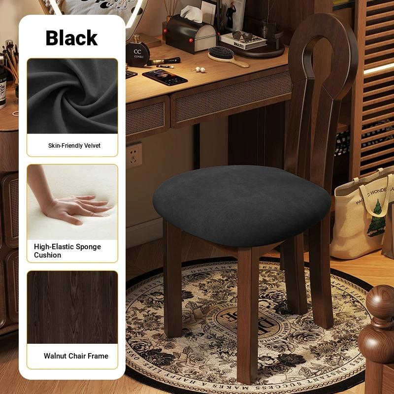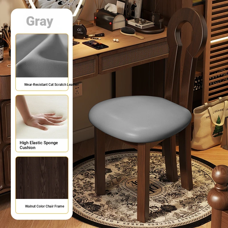 French Vintage Vanity Stool - Elegant Makeup Chair for Girls' Bedrooms, Backrest Design, Wabi-Sabi Style, Home Use, Solid Wood Antique Charm