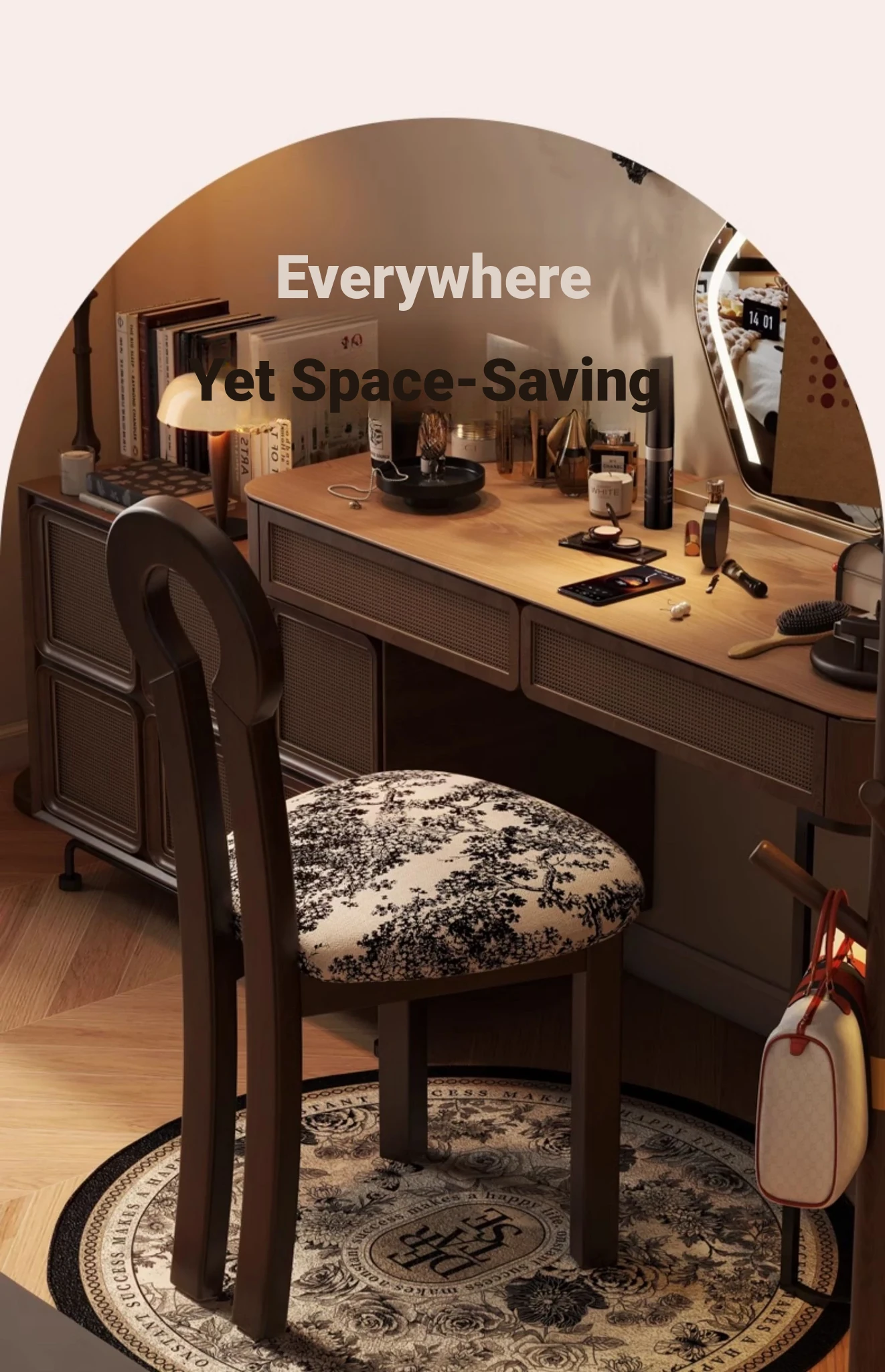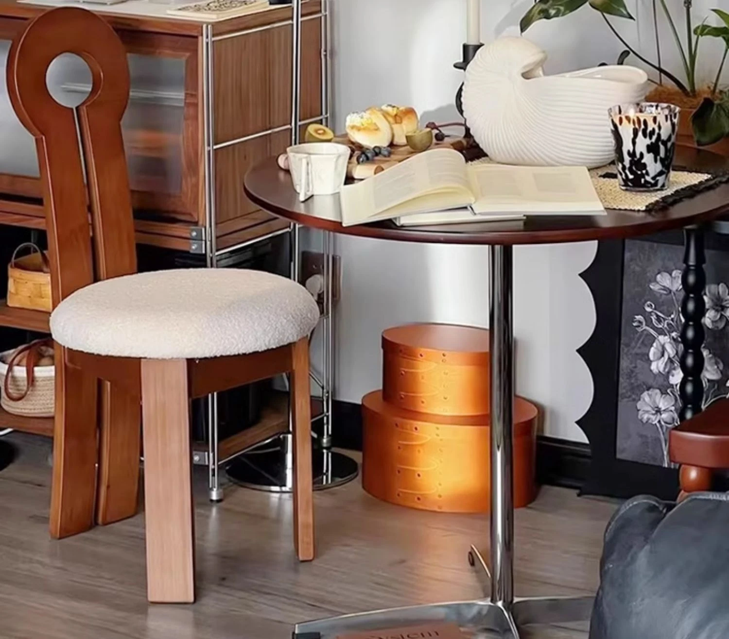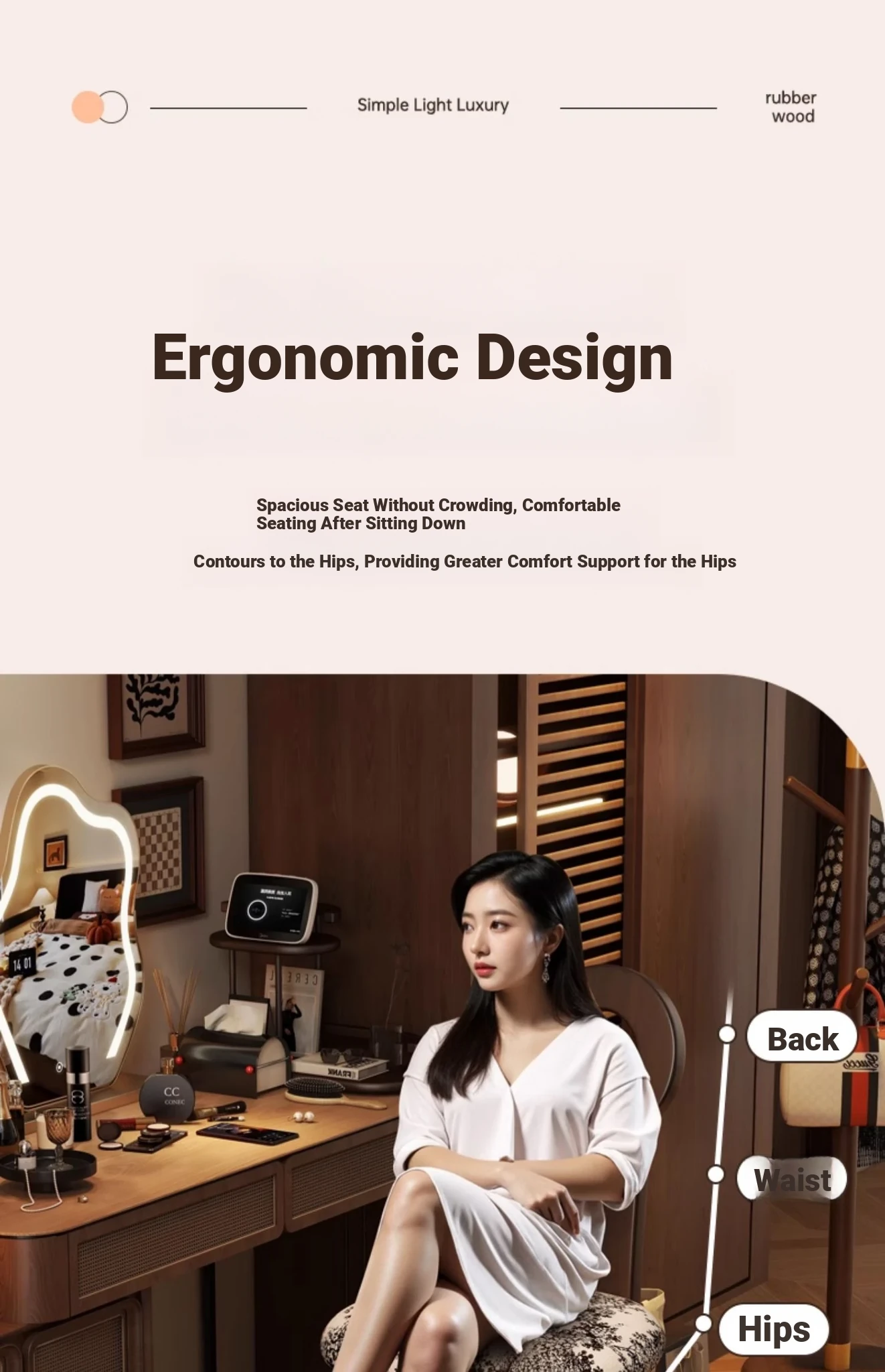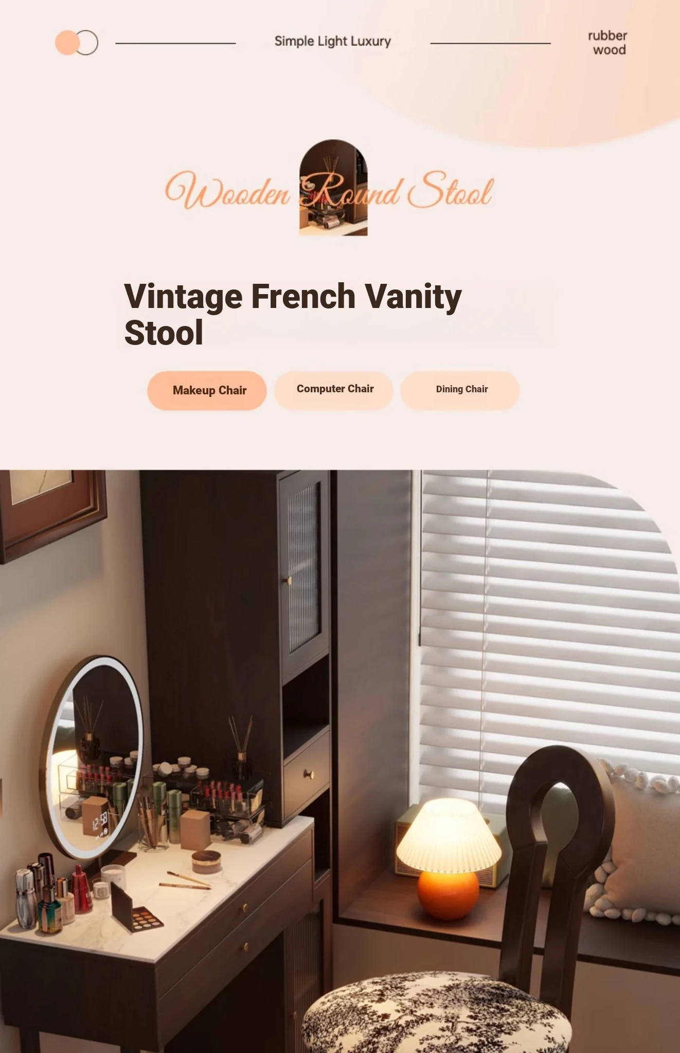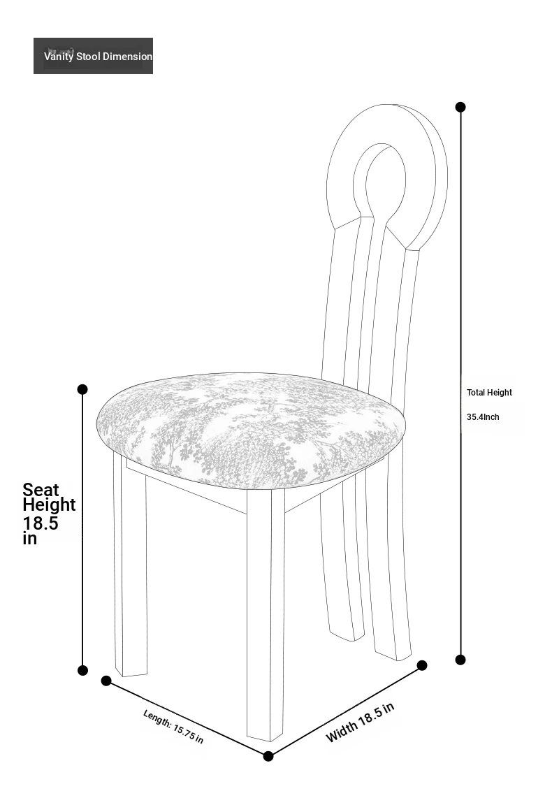French Vintage Vanity Stool - Elegant Makeup Chair for Girls' Bedrooms, Backrest Design, Wabi-Sabi Style, Home Use, Solid Wood Antique Charm