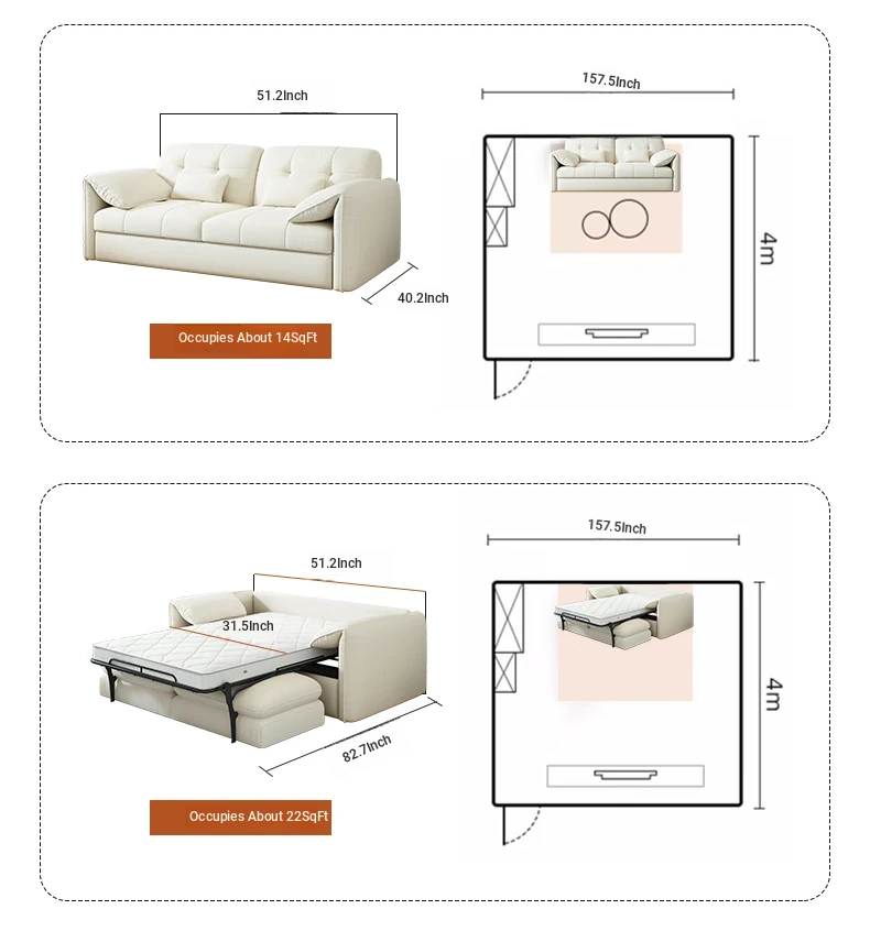51.18 in sofa + high rebound sponge mattress