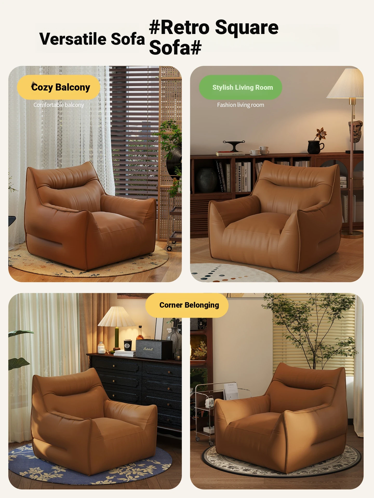 Lazy Sofa Chair – Single Bed and Lounge Combo, Perfect for Bedroom or Balcony, Retro Bean Bag for Relaxation and Tatami Style Comfort