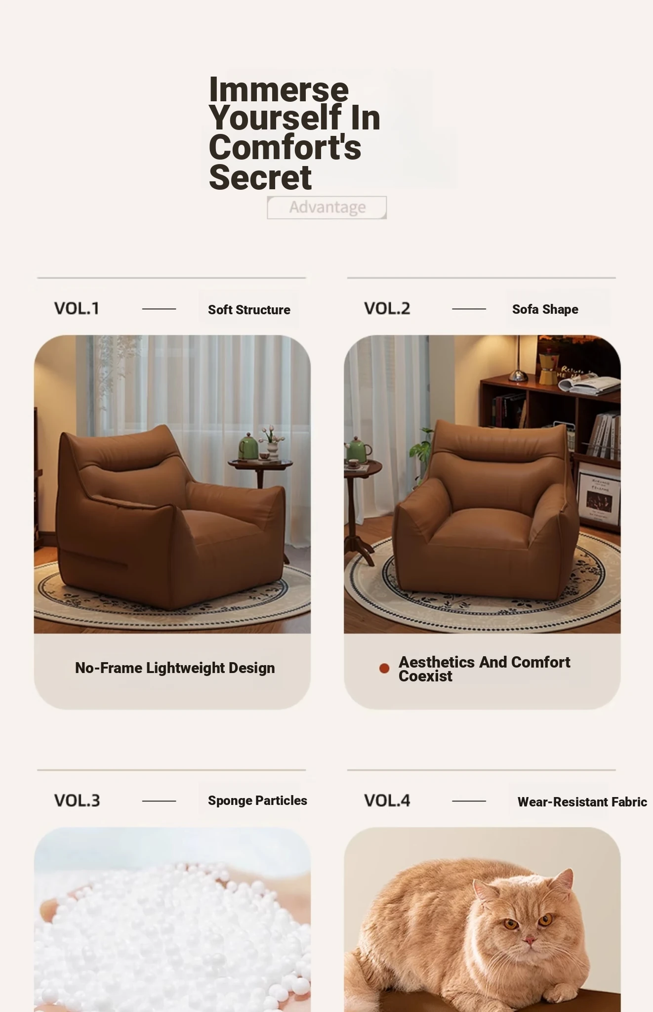 Creamy-white + Pedal [Abrasion Resistant Cat Scratch]]