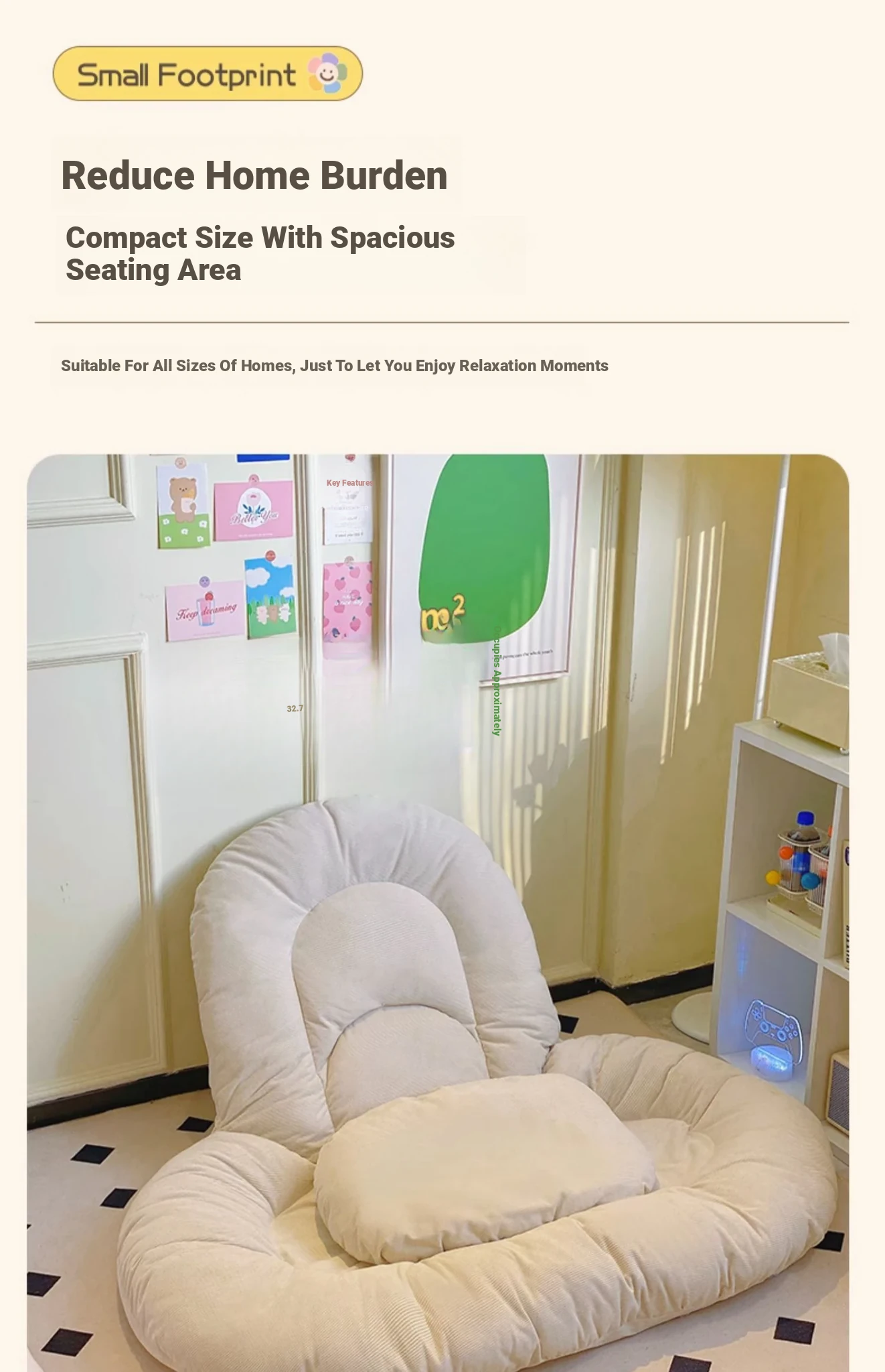 Creamy-white-corduroy [backrest/armrest 5 gear adjustment]]