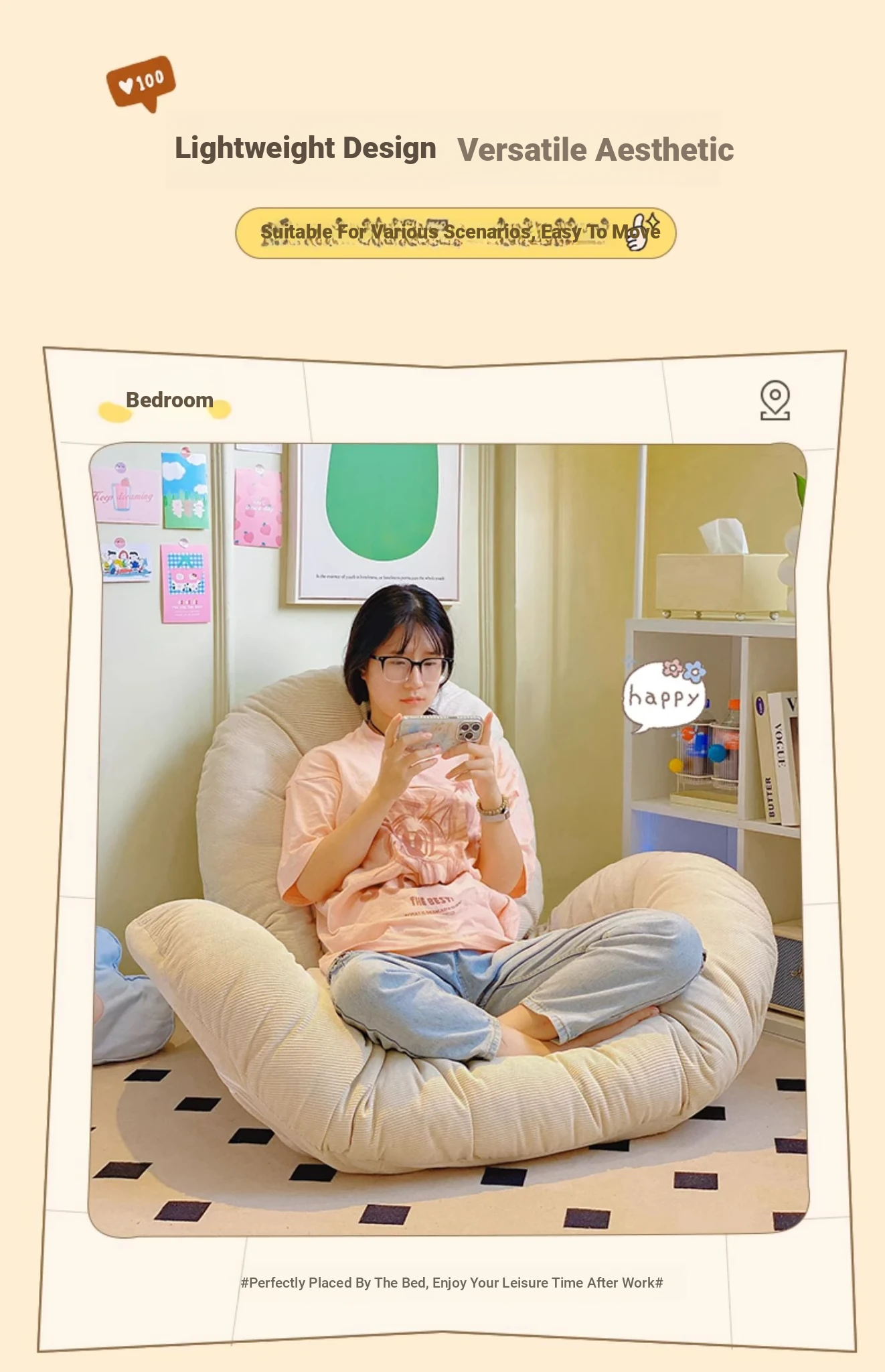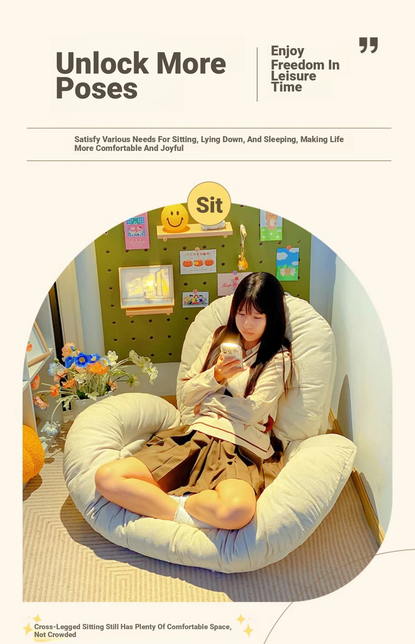 Lazy Sofa Chair - Single Tatami Window Seat with Backrest, Perfect for Bedroom and Balcony, Compact Folding Design for Ultimate Comfort and Trendy Relaxation