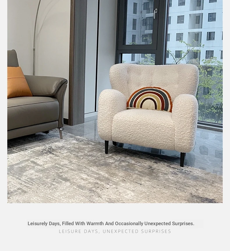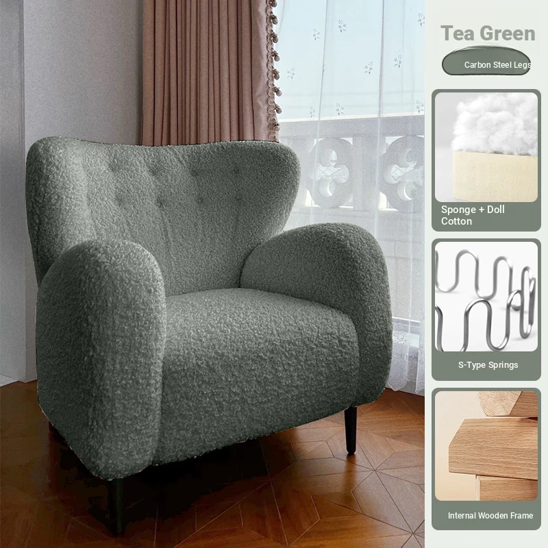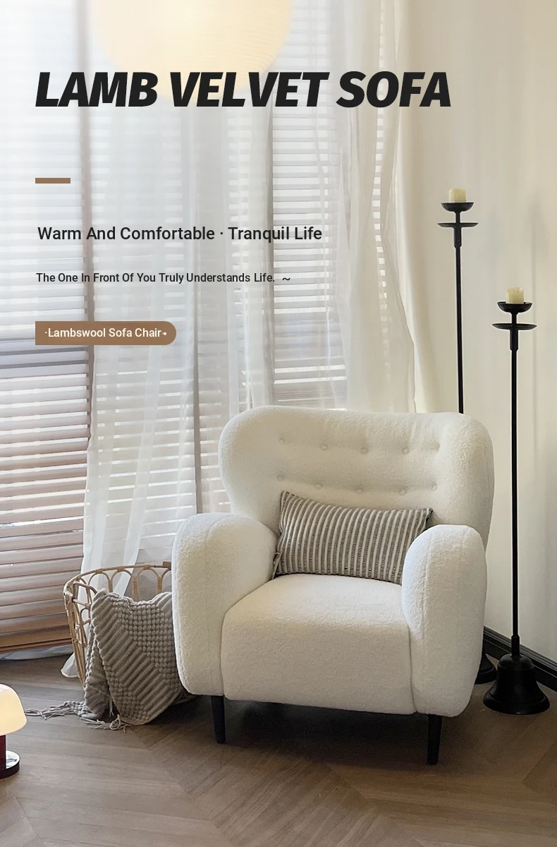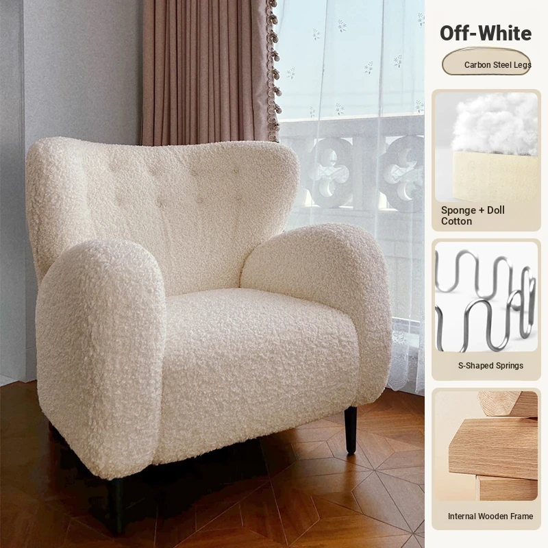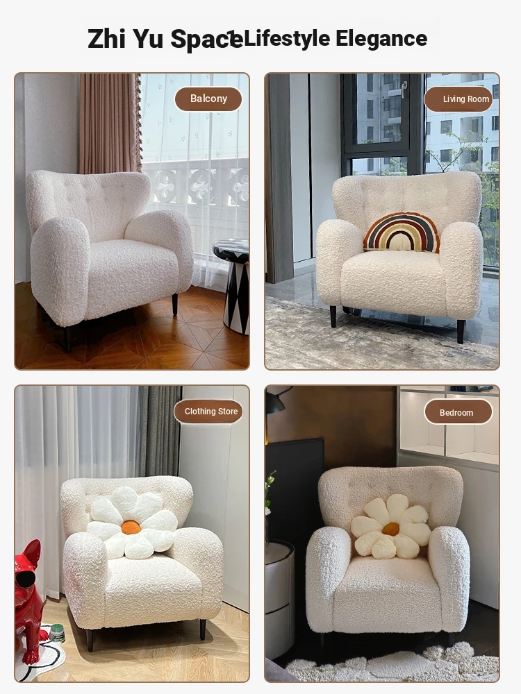 Luxury Single Sofa Chair - Designer Nordic Style Lamb Fleece Lounge Chair for Living Room, Bedroom, and Balcony - Perfect for Relaxation and Comfort