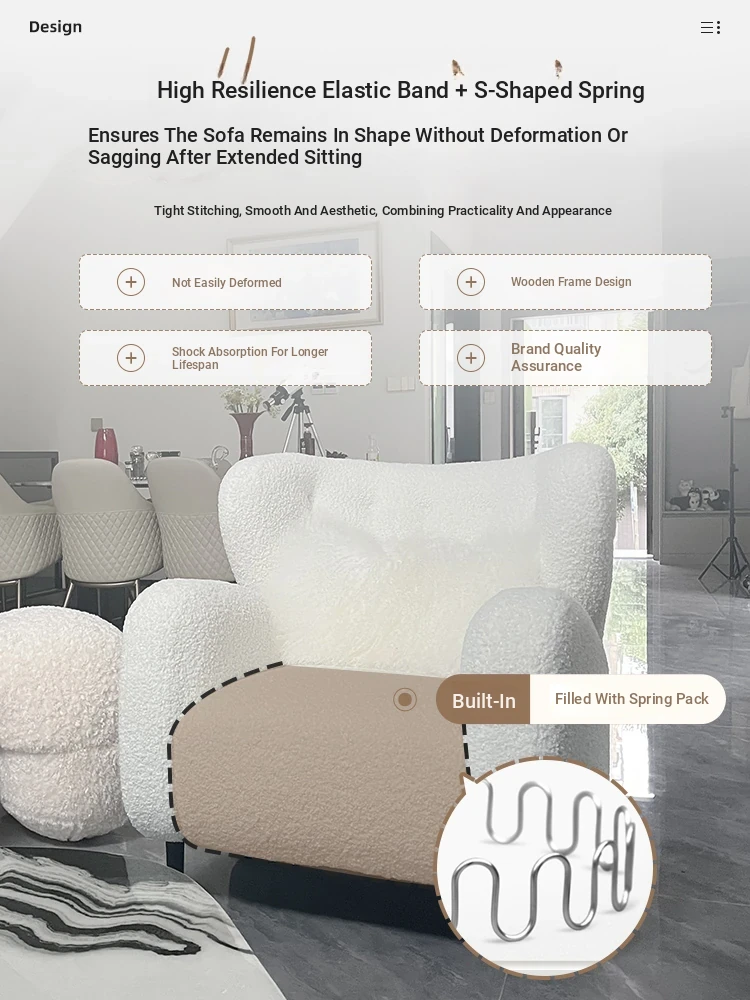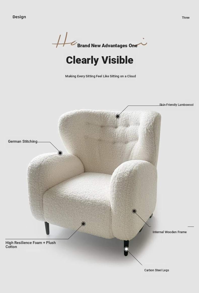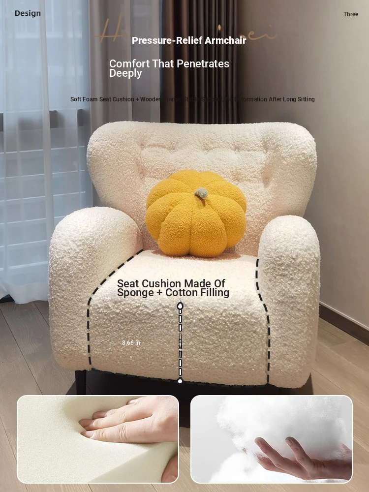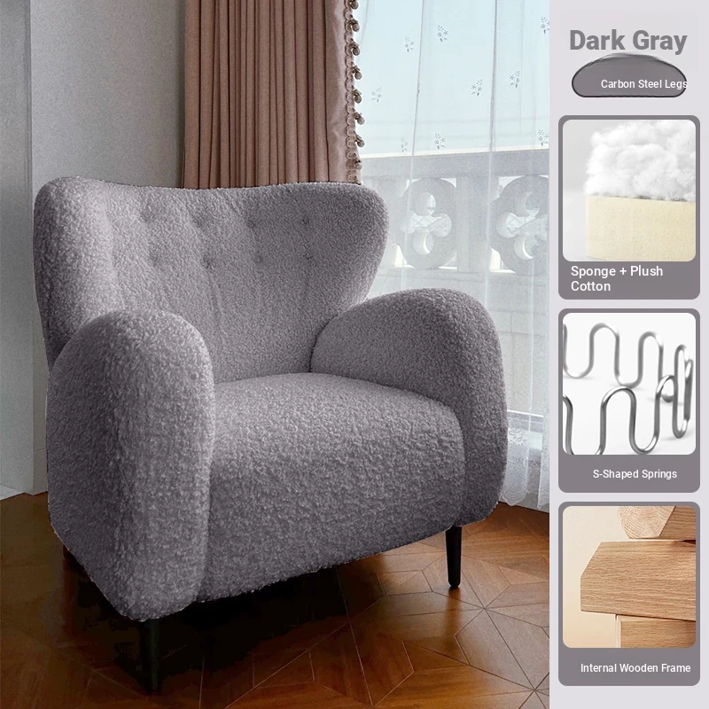 Luxury Single Sofa Chair - Designer Nordic Style Lamb Fleece Lounge Chair for Living Room, Bedroom, and Balcony - Perfect for Relaxation and Comfort