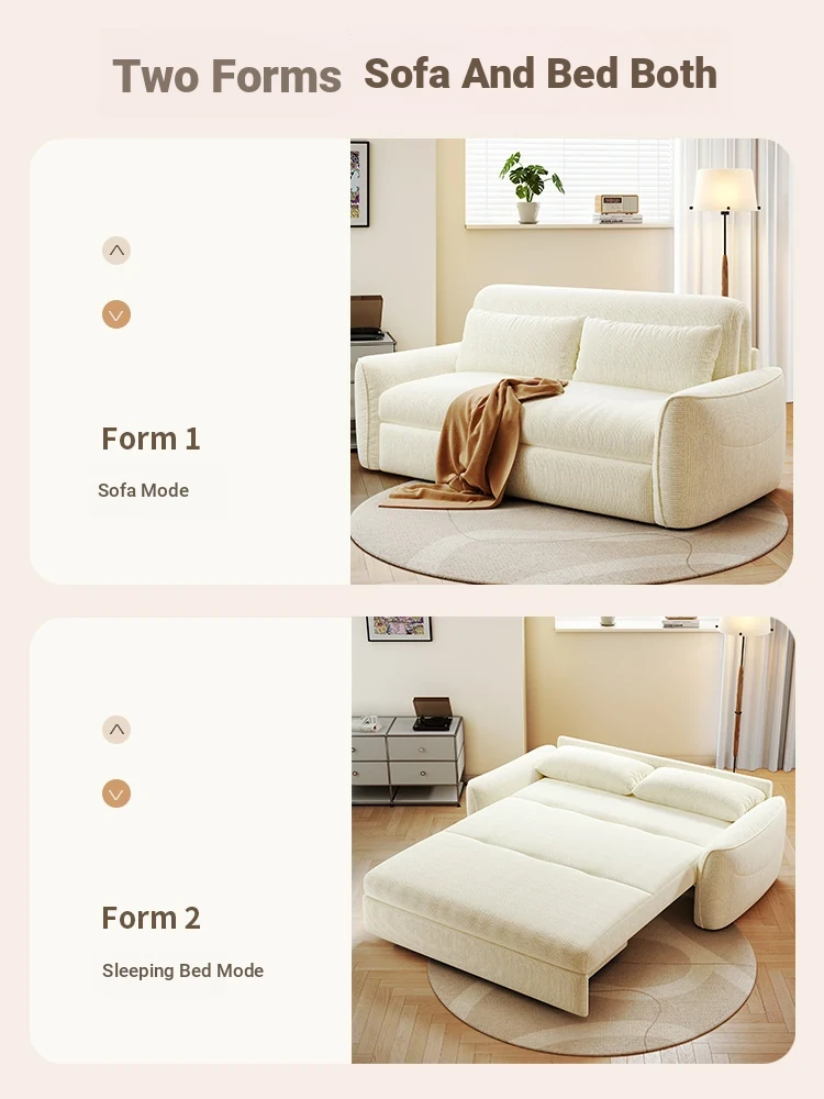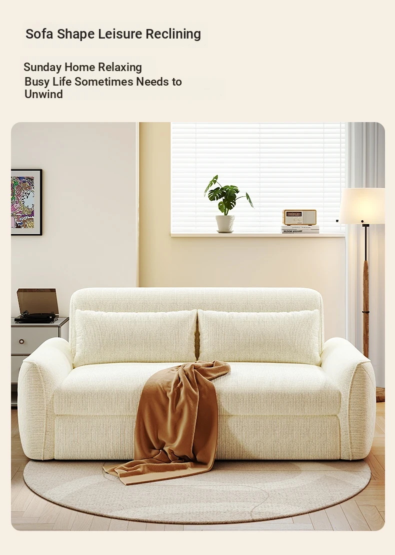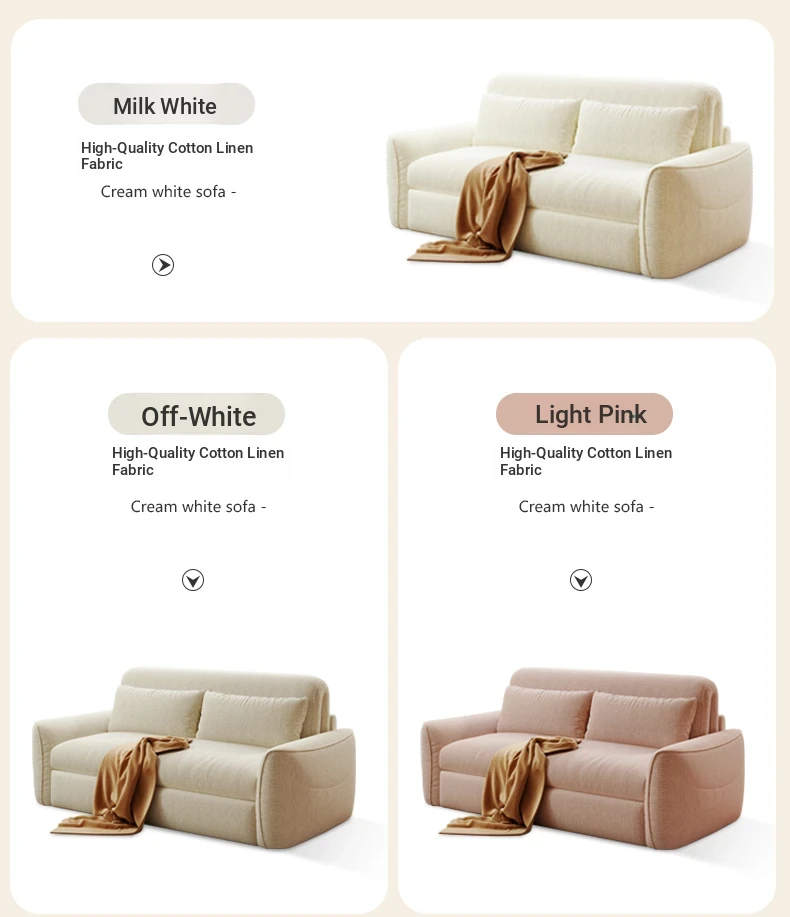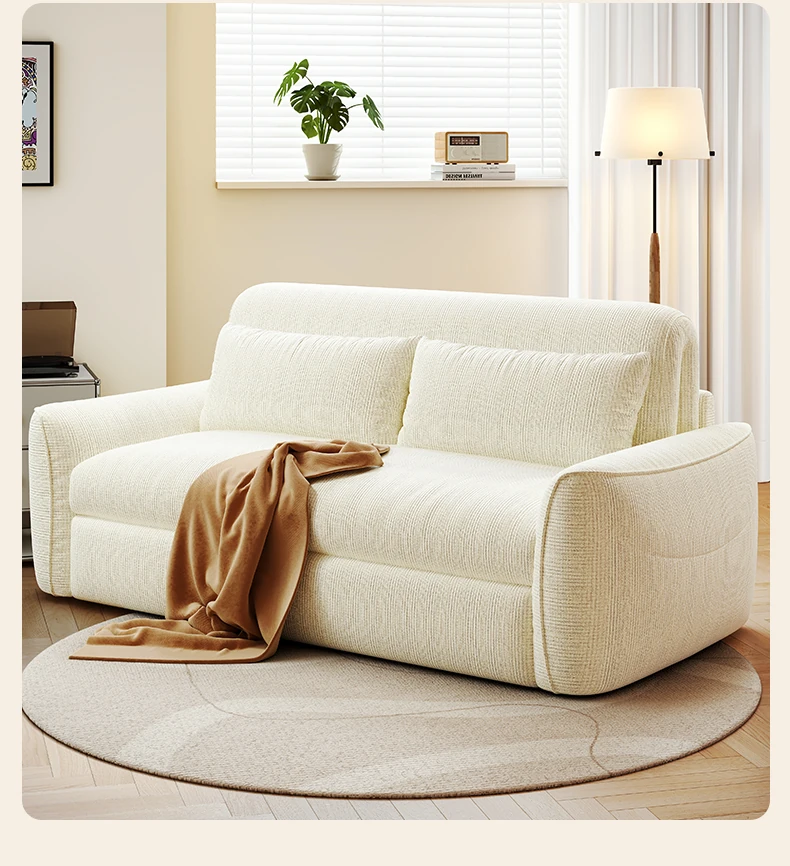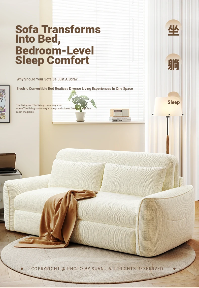 Modern Minimalist Electric Sofa Bed - Expandable Fabric Sofa for Small Spaces, Perfect for Living Rooms and Home Offices, Versatile Creamy Aesthetic for Sitting and Sleeping