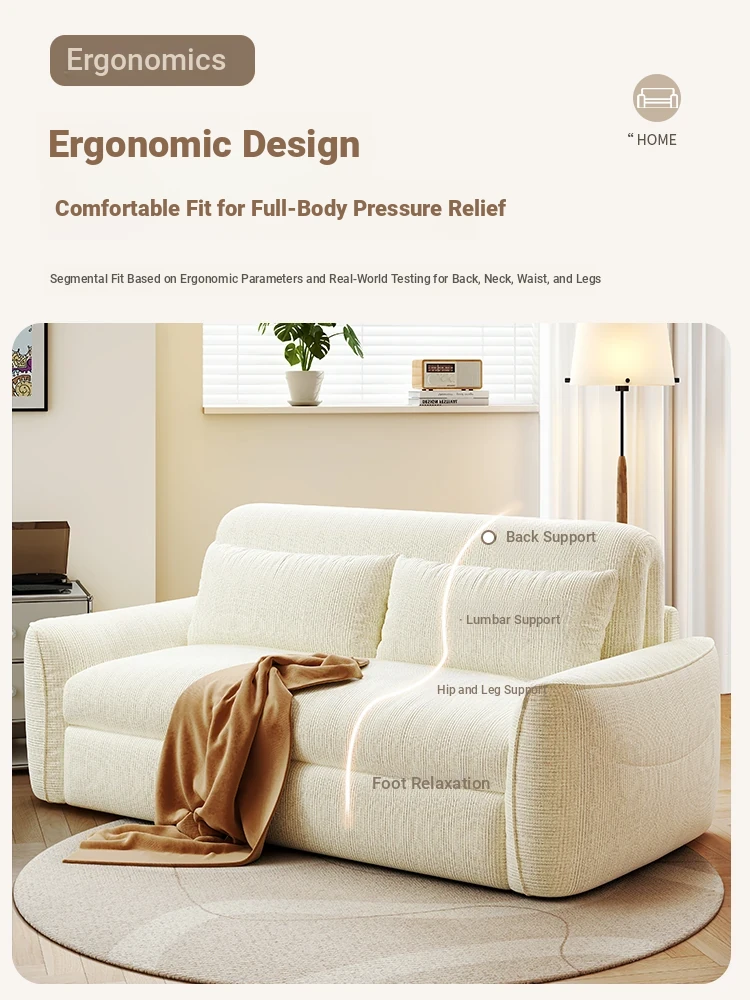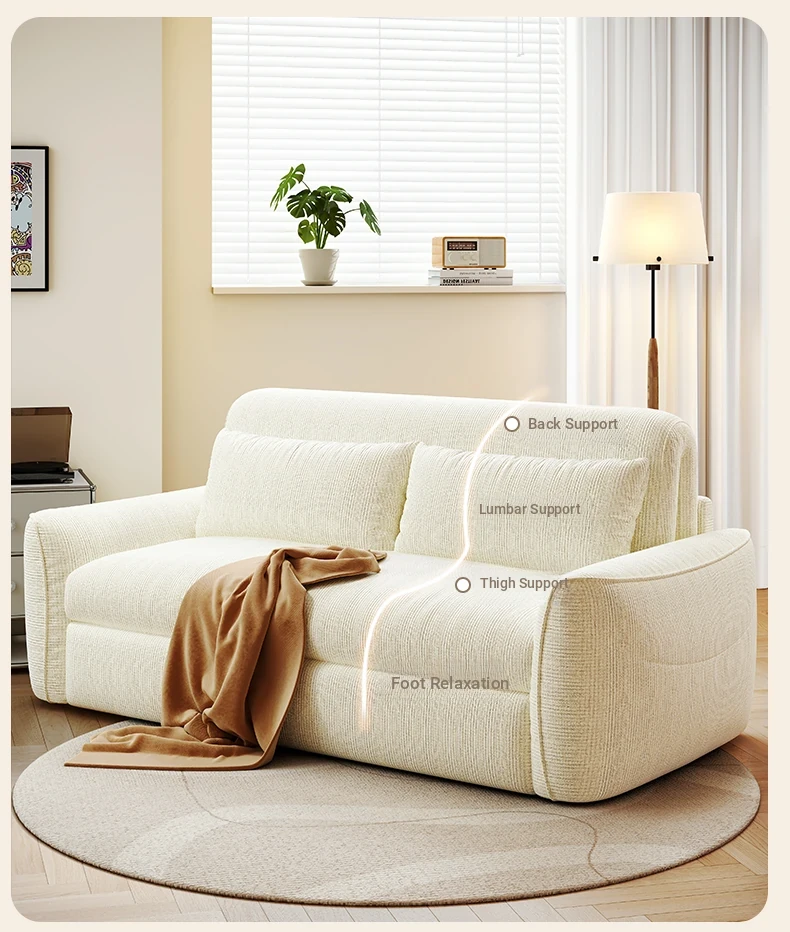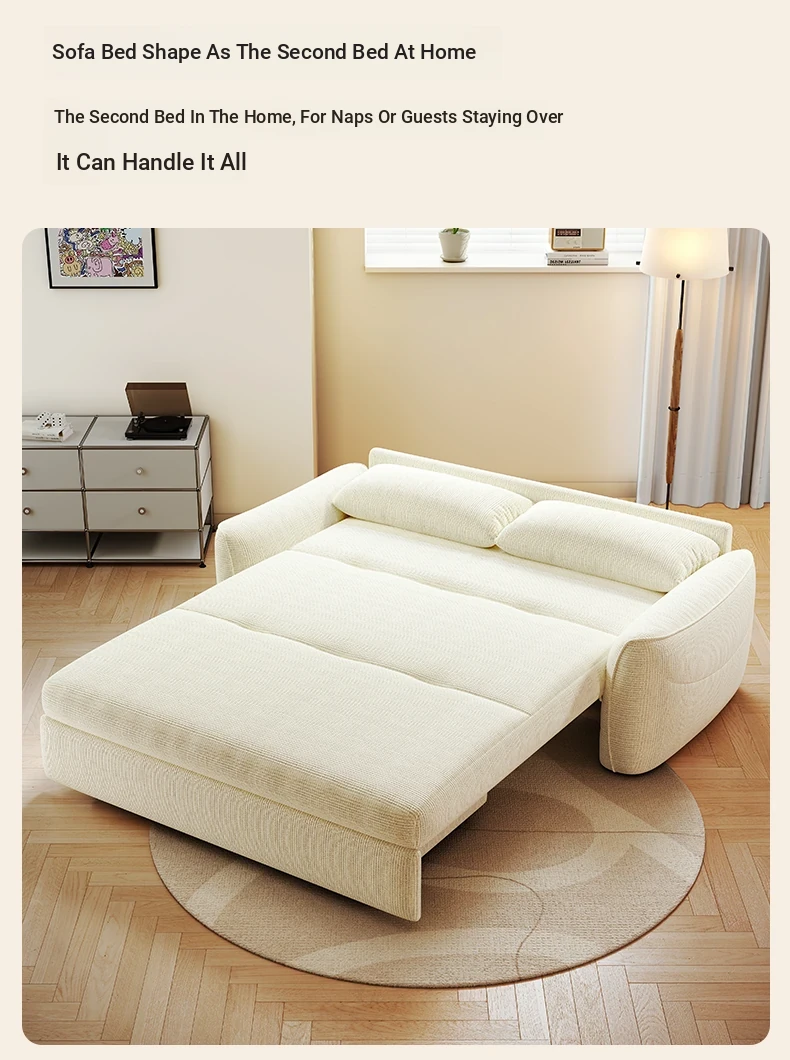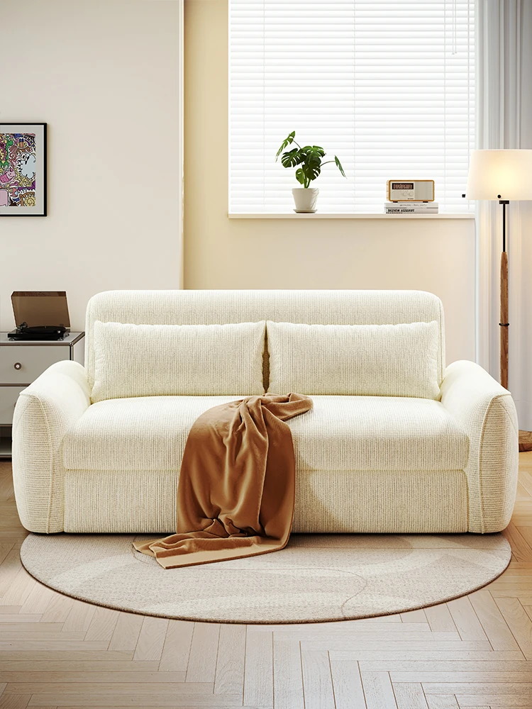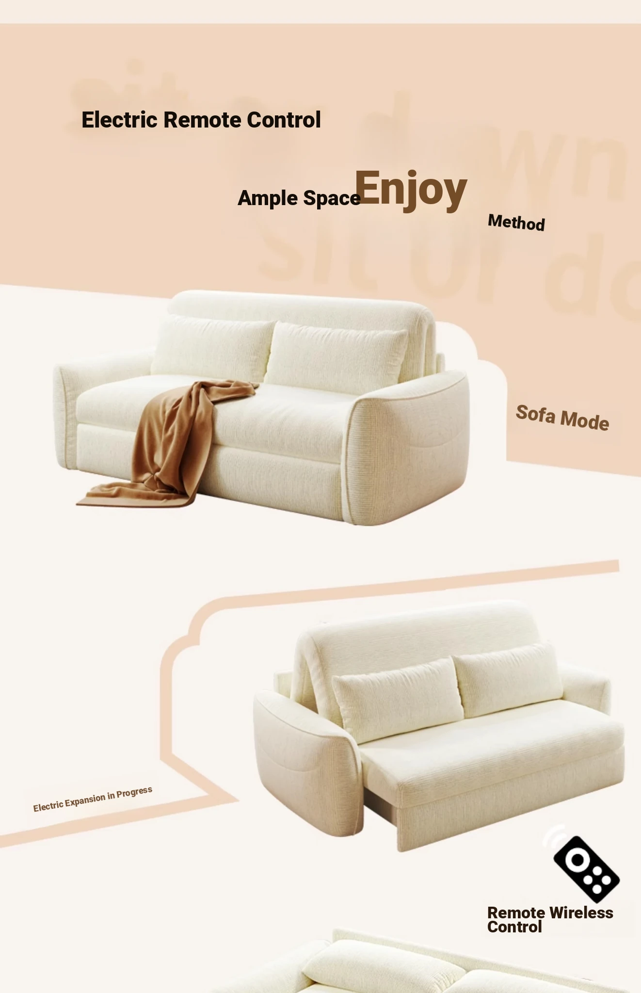 Modern Minimalist Electric Sofa Bed - Expandable Fabric Sofa for Small Spaces, Perfect for Living Rooms and Home Offices, Versatile Creamy Aesthetic for Sitting and Sleeping