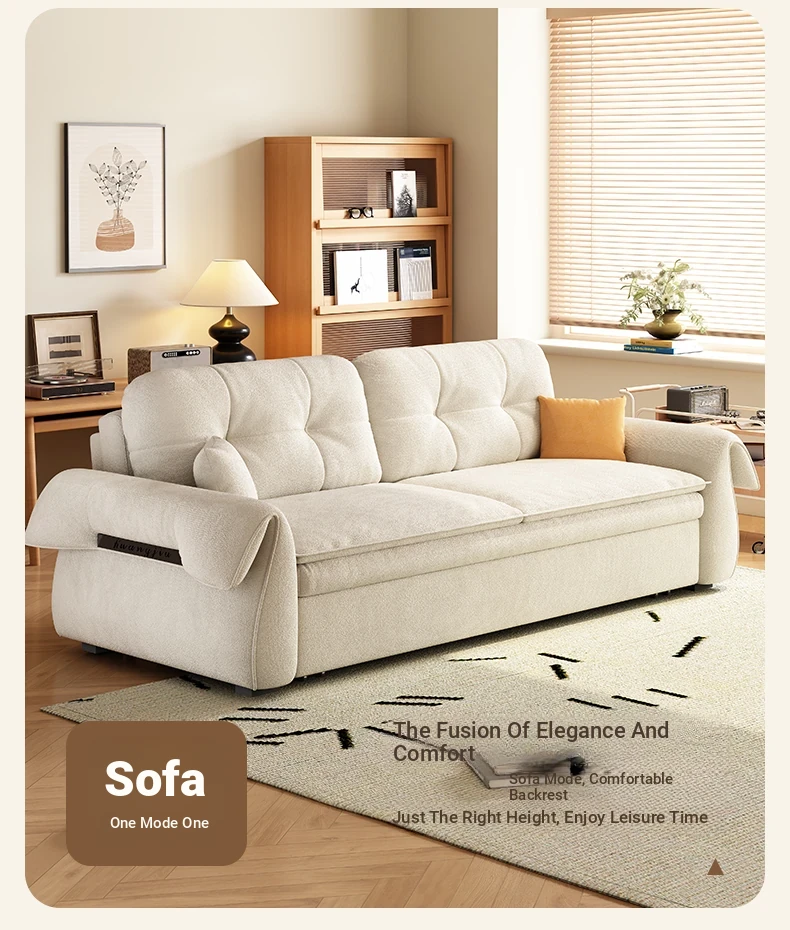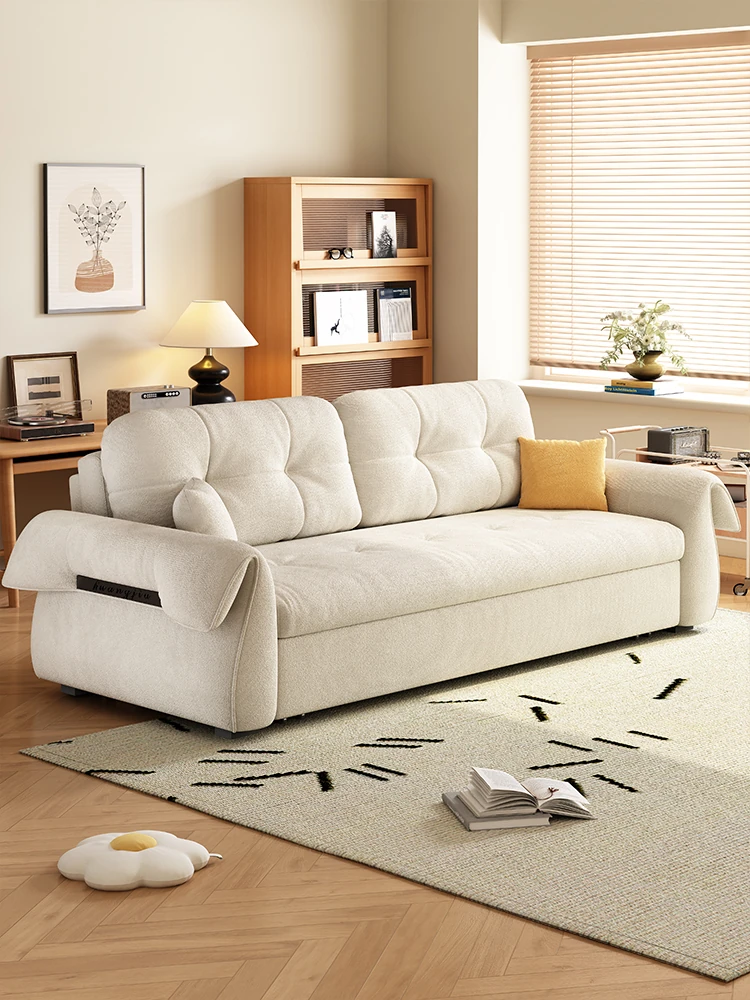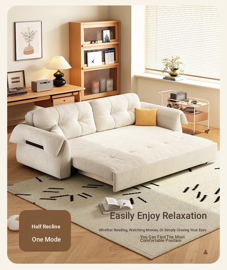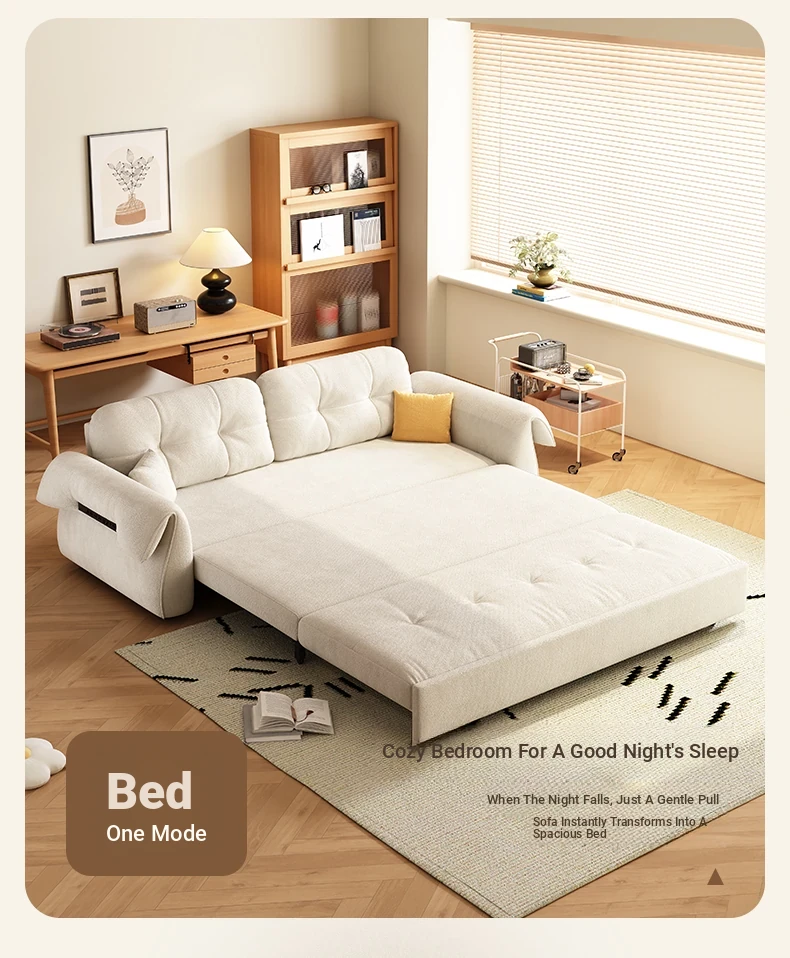 Modern Minimalist Foldable Sofa Bed - Retractable Fabric Couch for Small Apartments, Perfect for Living Rooms and Studies, Versatile Design for Sitting and Sleeping, Trendy and Stylish!