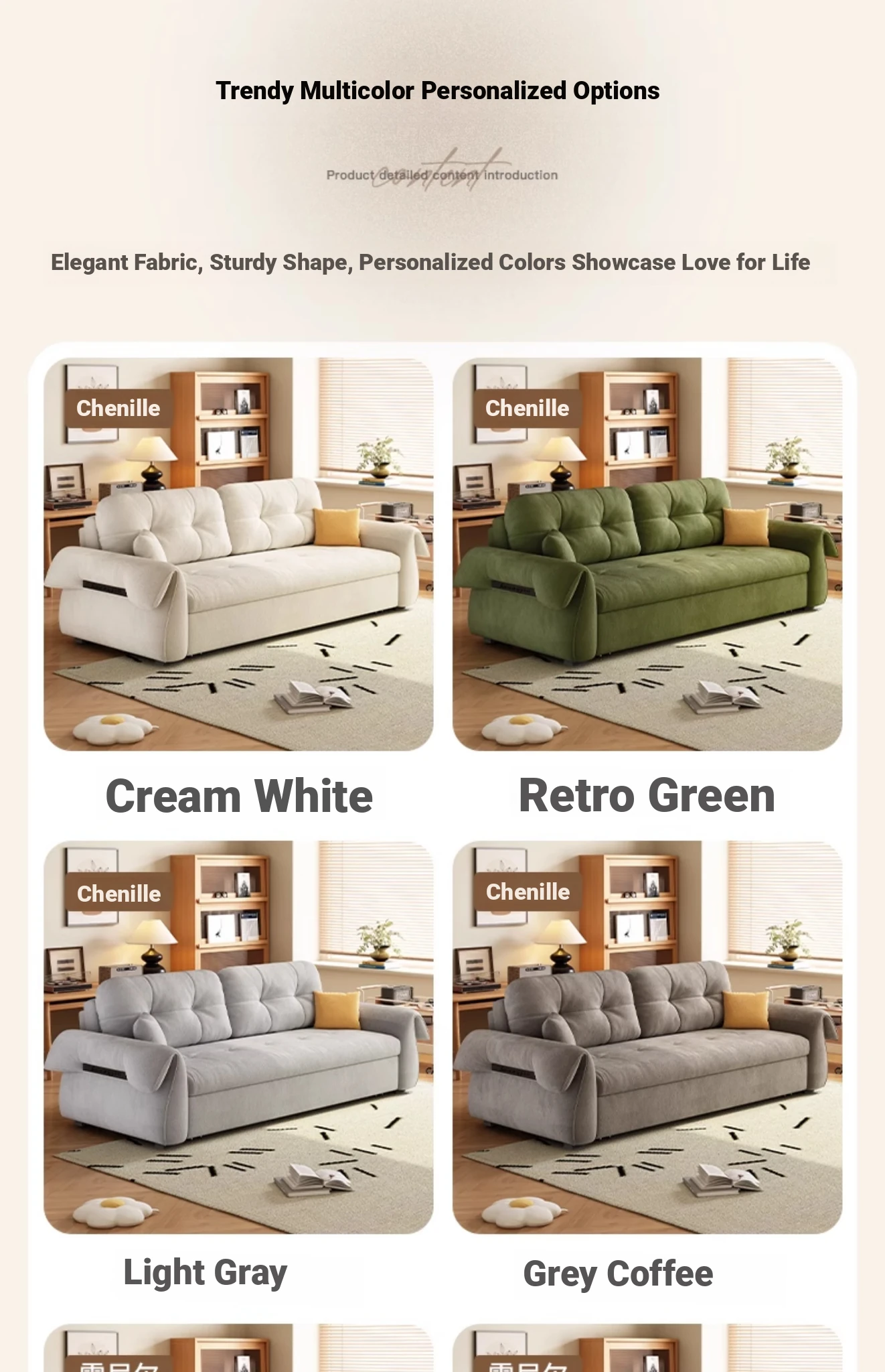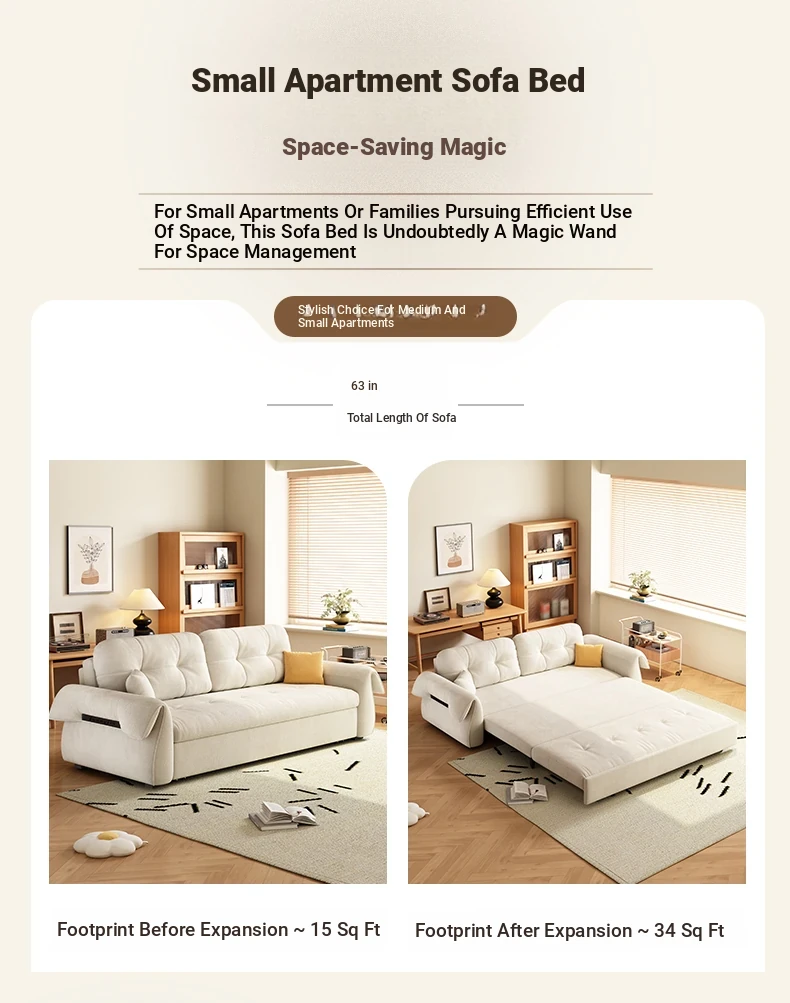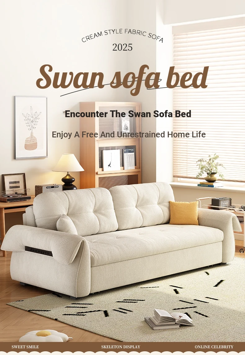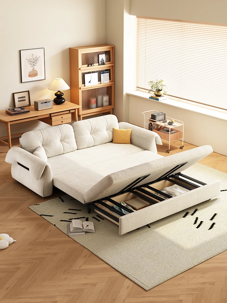 Modern Minimalist Foldable Sofa Bed - Retractable Fabric Couch for Small Apartments, Perfect for Living Rooms and Studies, Versatile Design for Sitting and Sleeping, Trendy and Stylish!
