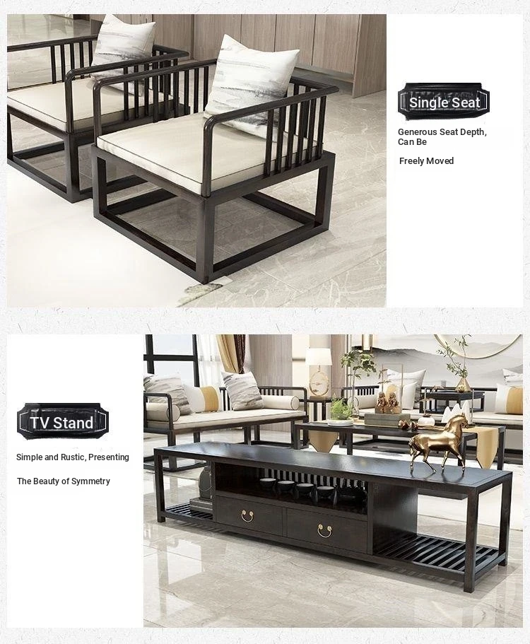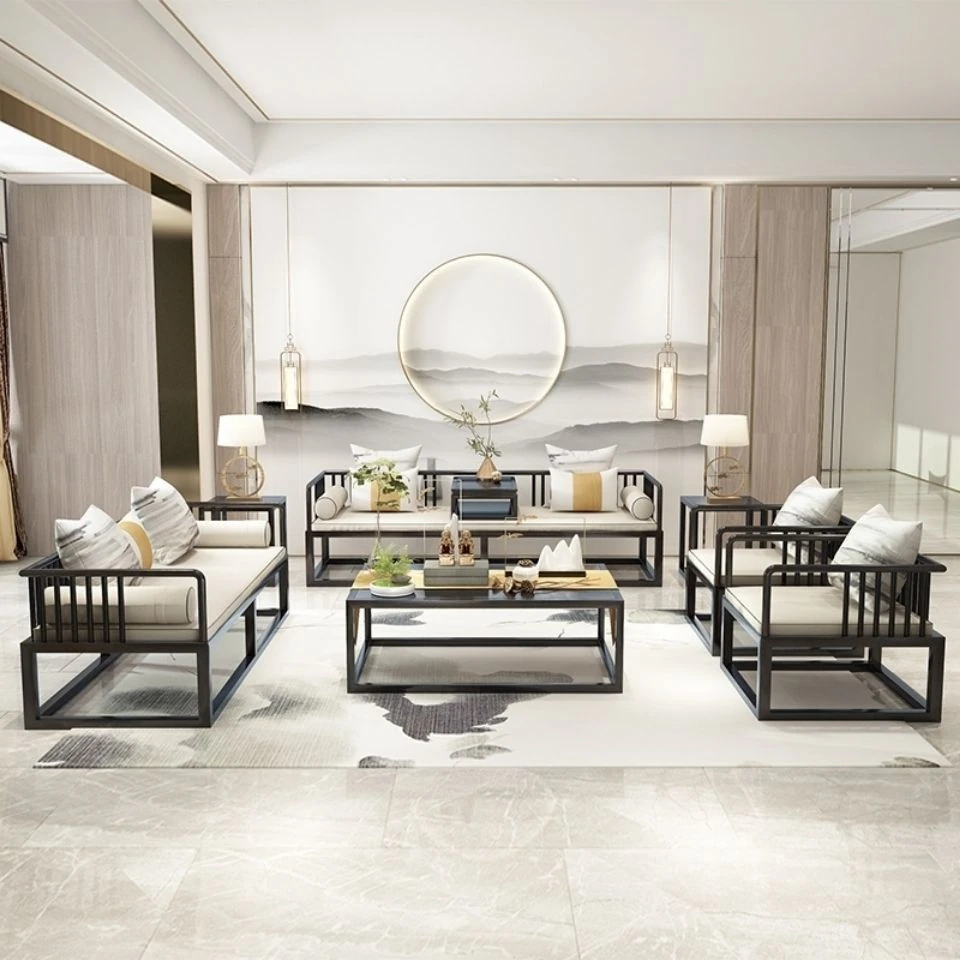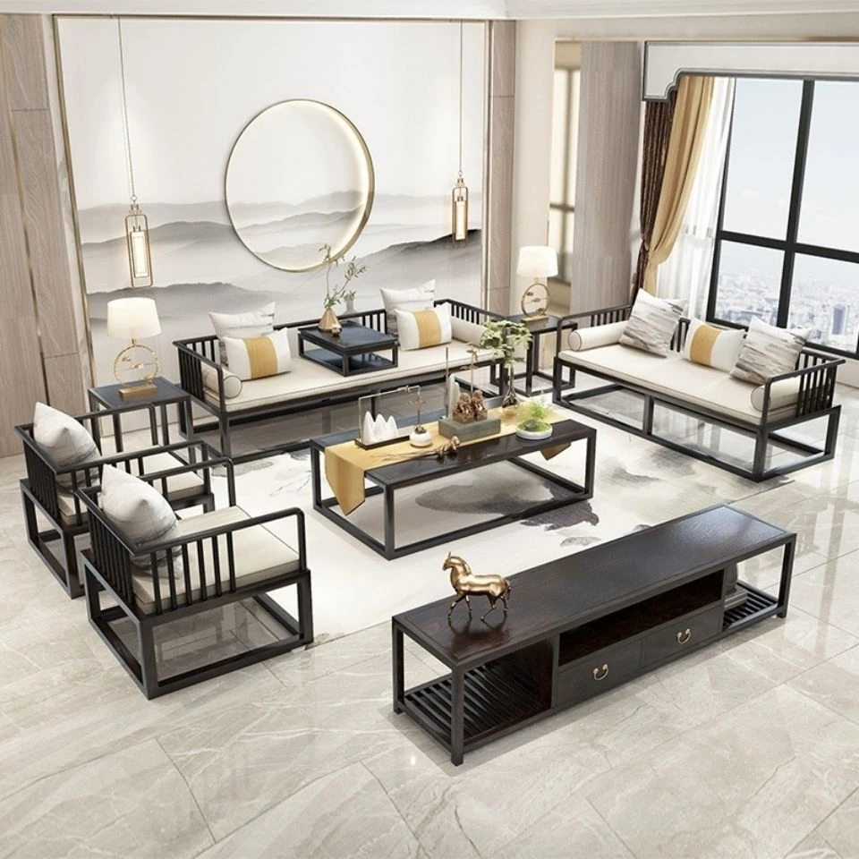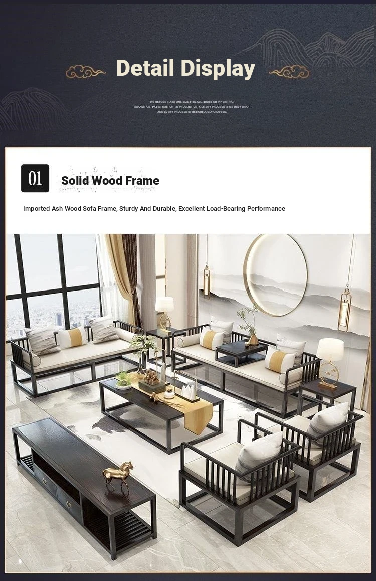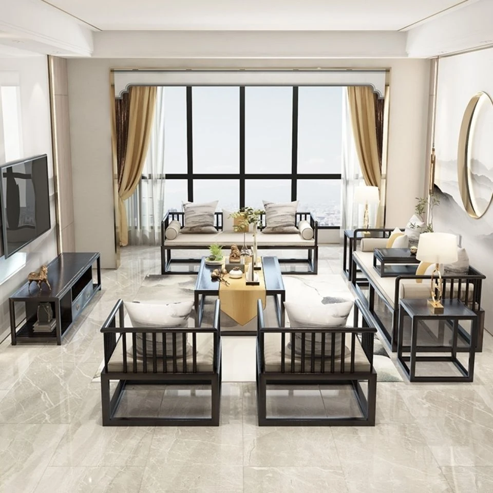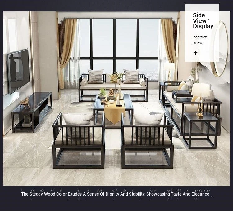 Modern Minimalist New Chinese Style Solid Wood Sofa Set for Small Spaces - Luxurious Yet Affordable Living Room Furniture for Model Homes