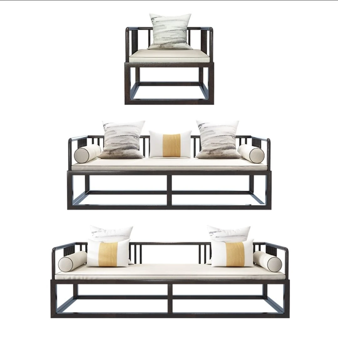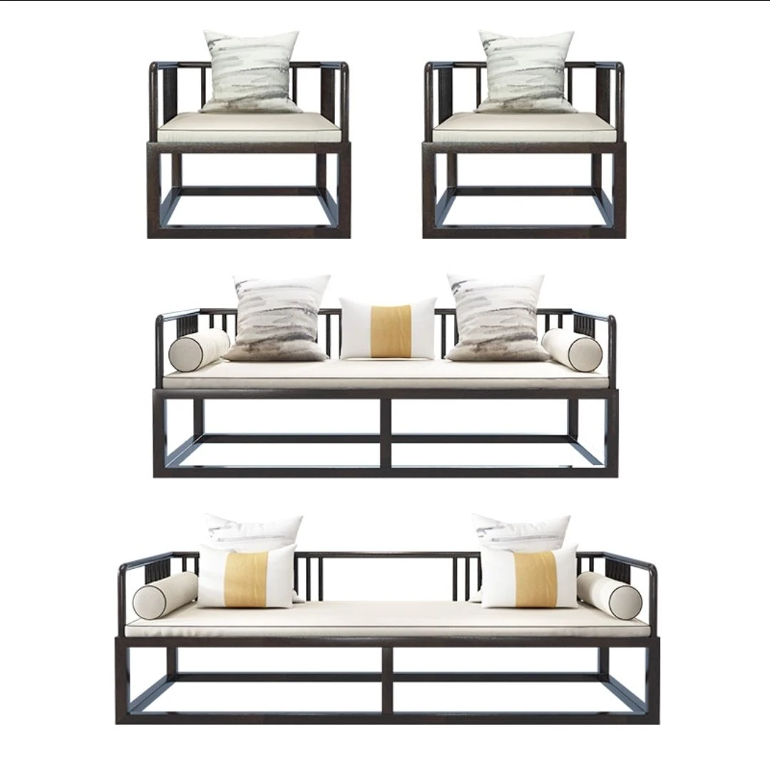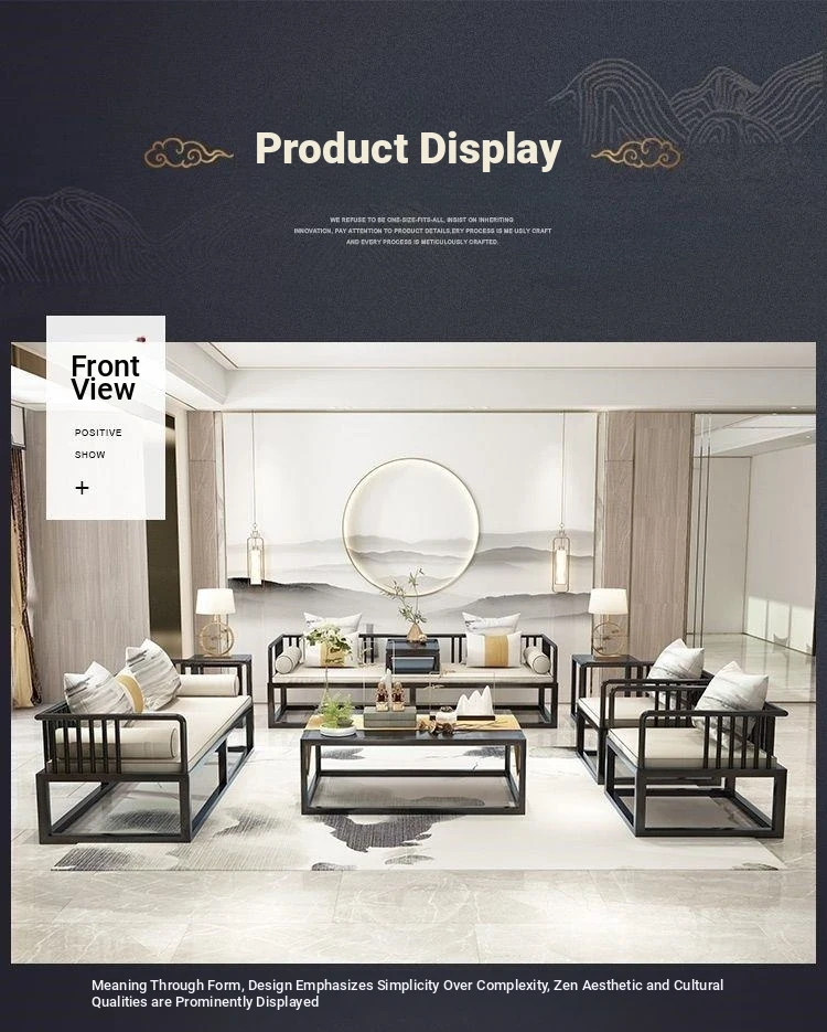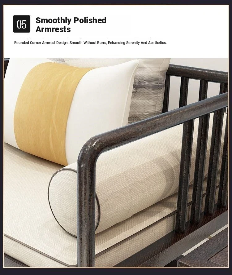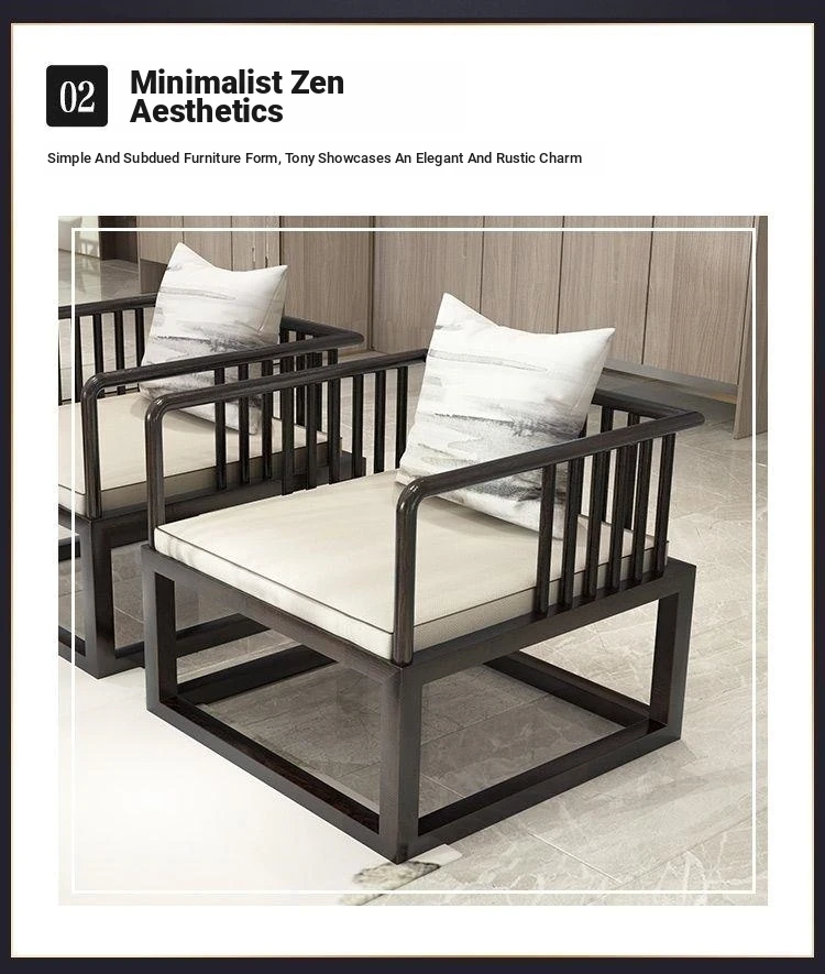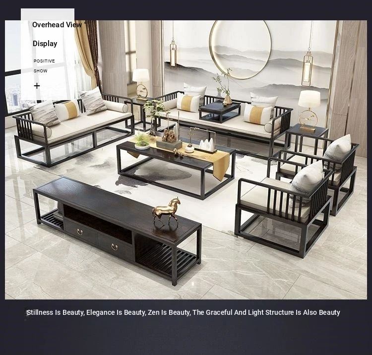 Modern Minimalist New Chinese Style Solid Wood Sofa Set for Small Spaces - Luxurious Yet Affordable Living Room Furniture for Model Homes