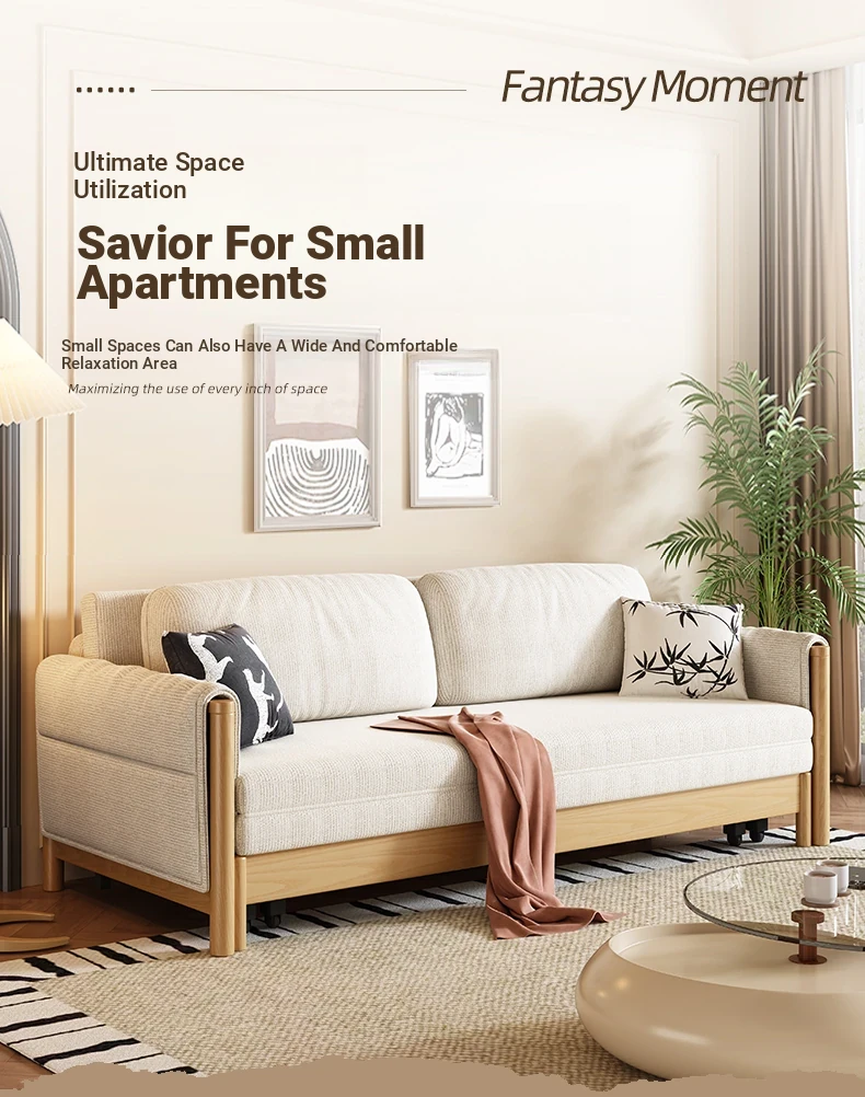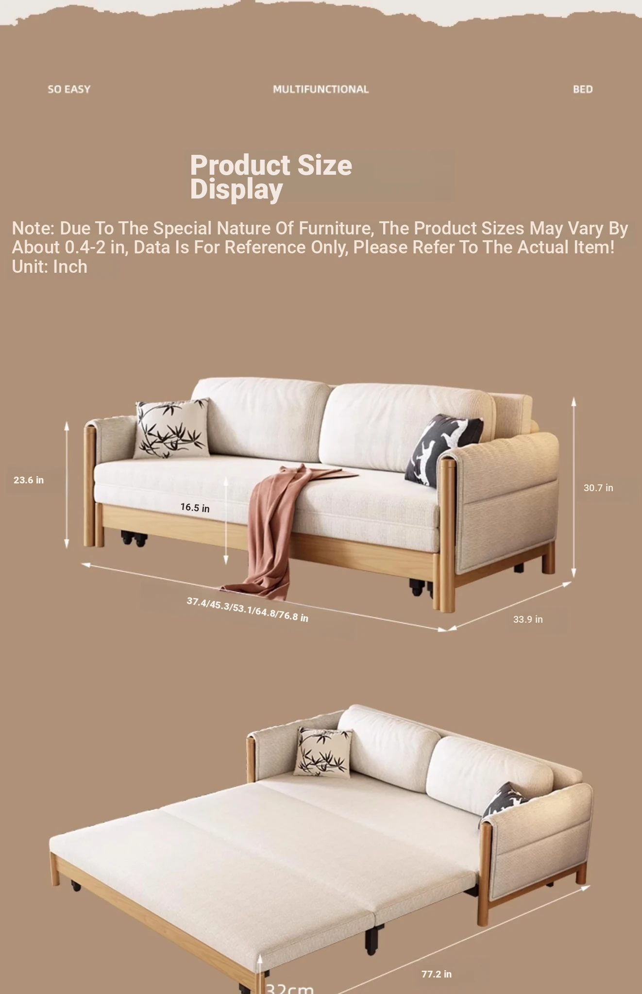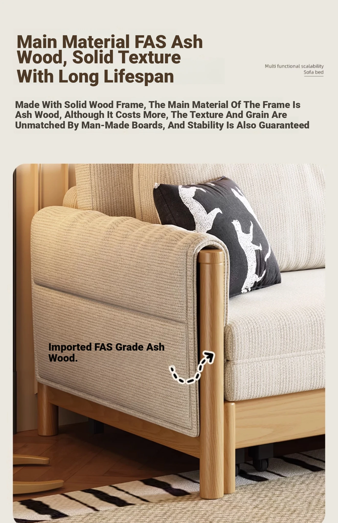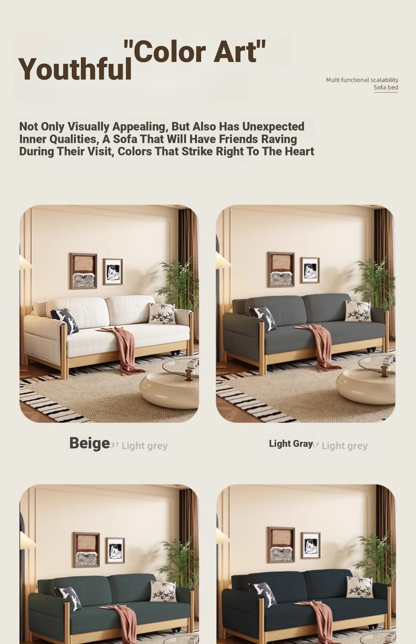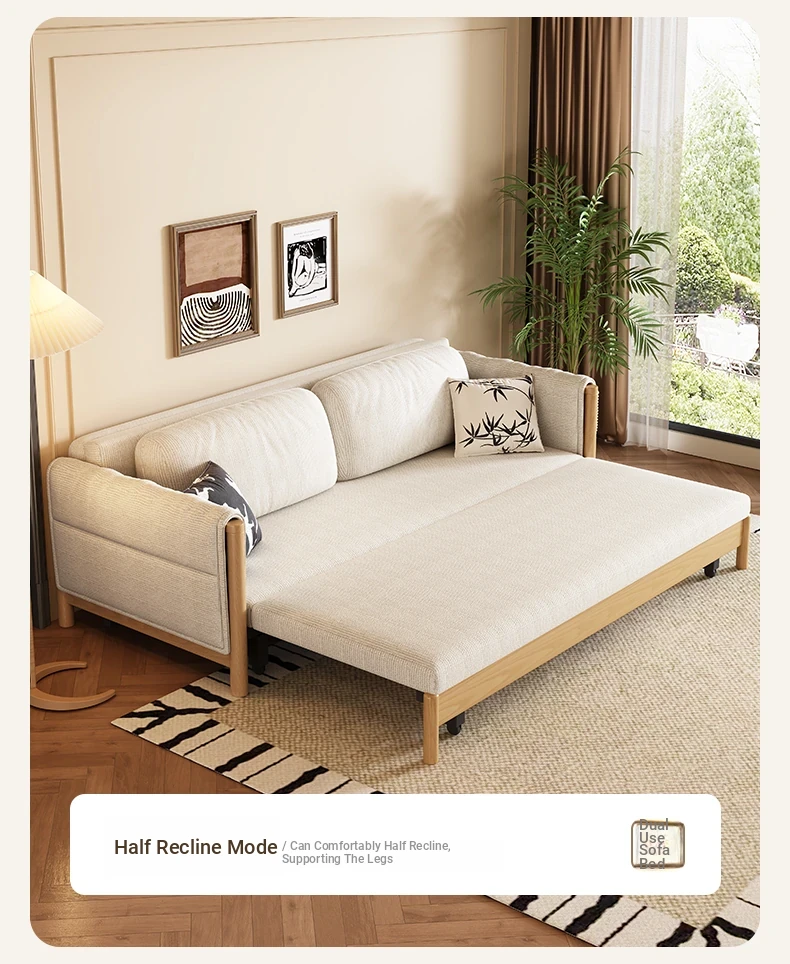 Modern Minimalist Solid Wood Sofa Bed 2025 New Foldable Design for Small Living Rooms, Stylish Convertible Sofa for Couples, Perfect for Dual Use as Seating and Sleeping
