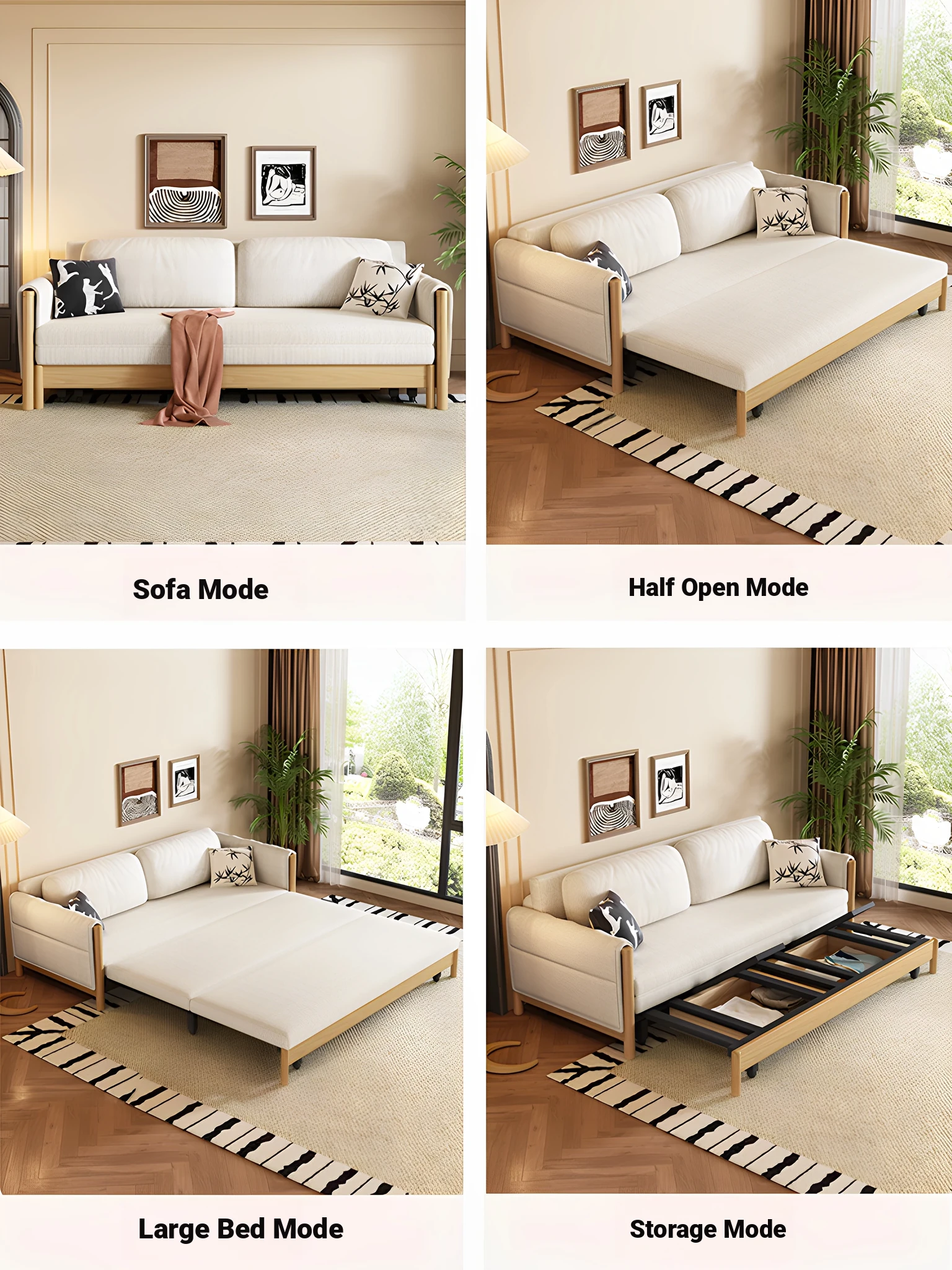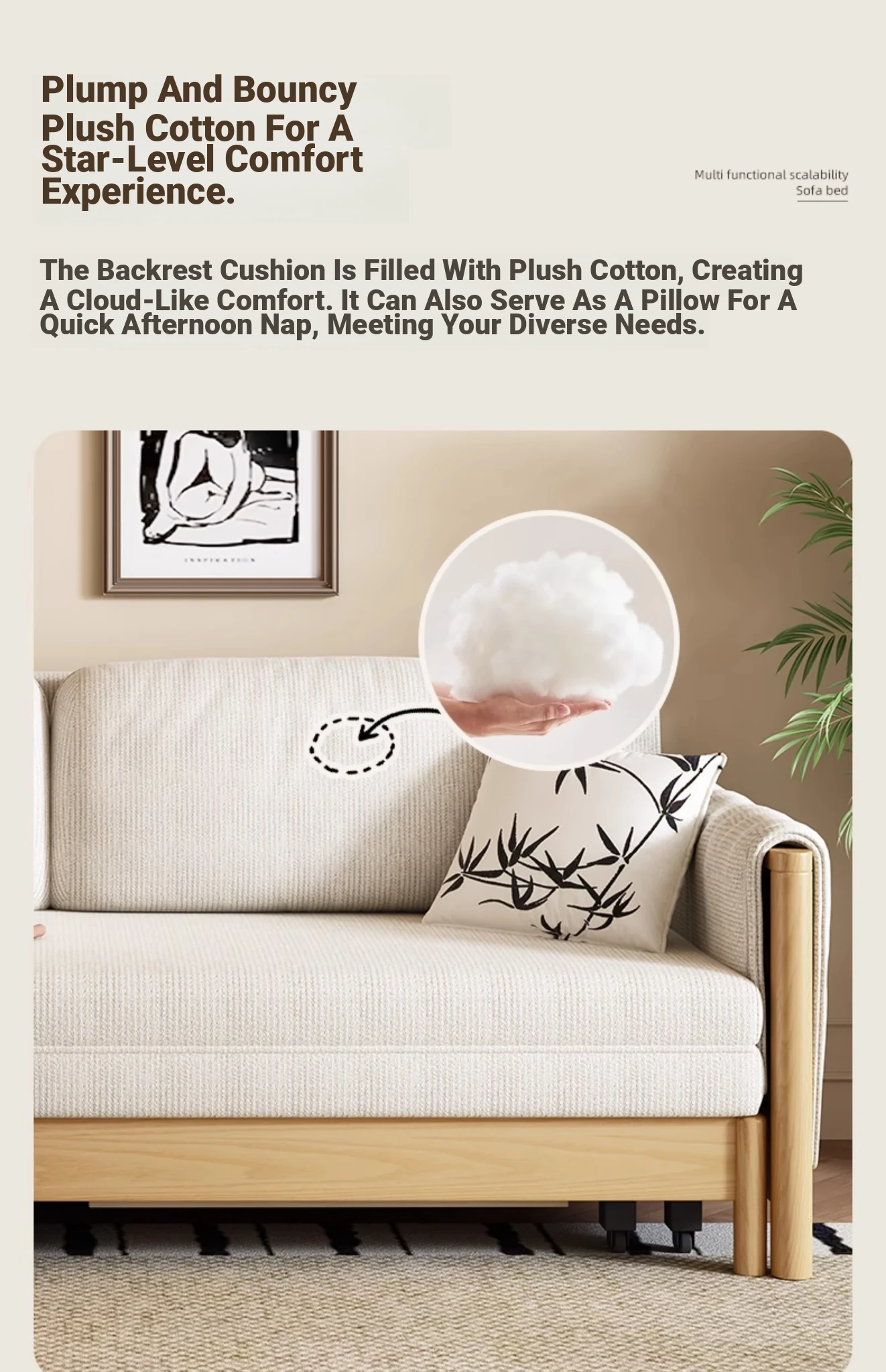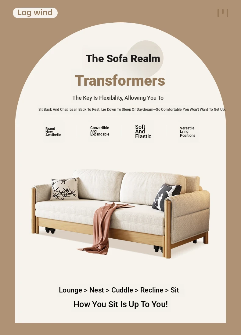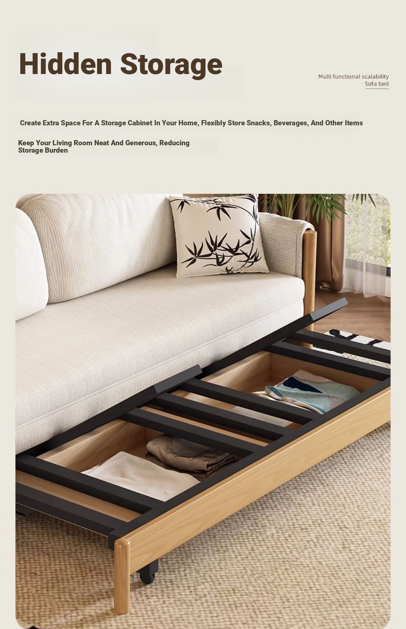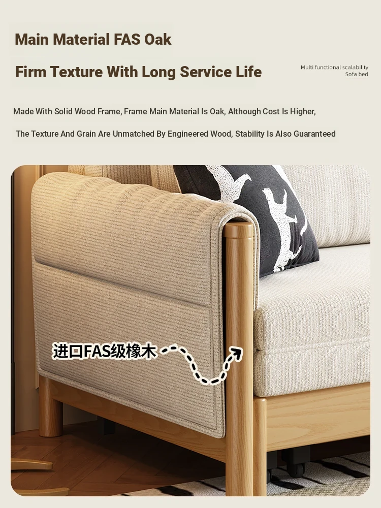Modern Minimalist Solid Wood Sofa Bed 2025 New Foldable Design for Small Living Rooms, Stylish Convertible Sofa for Couples, Perfect for Dual Use as Seating and Sleeping