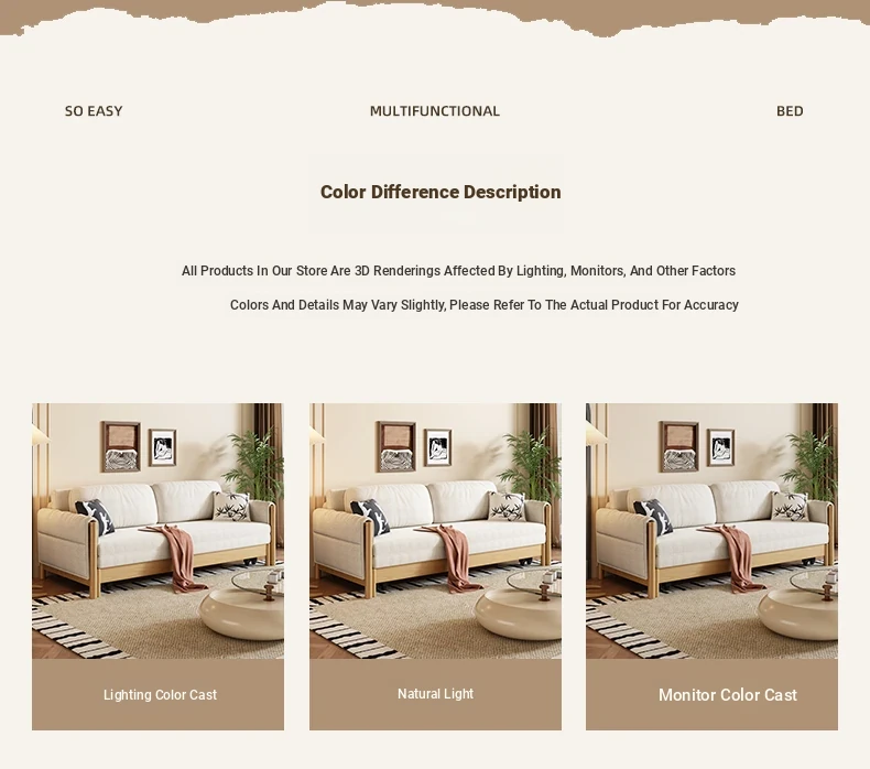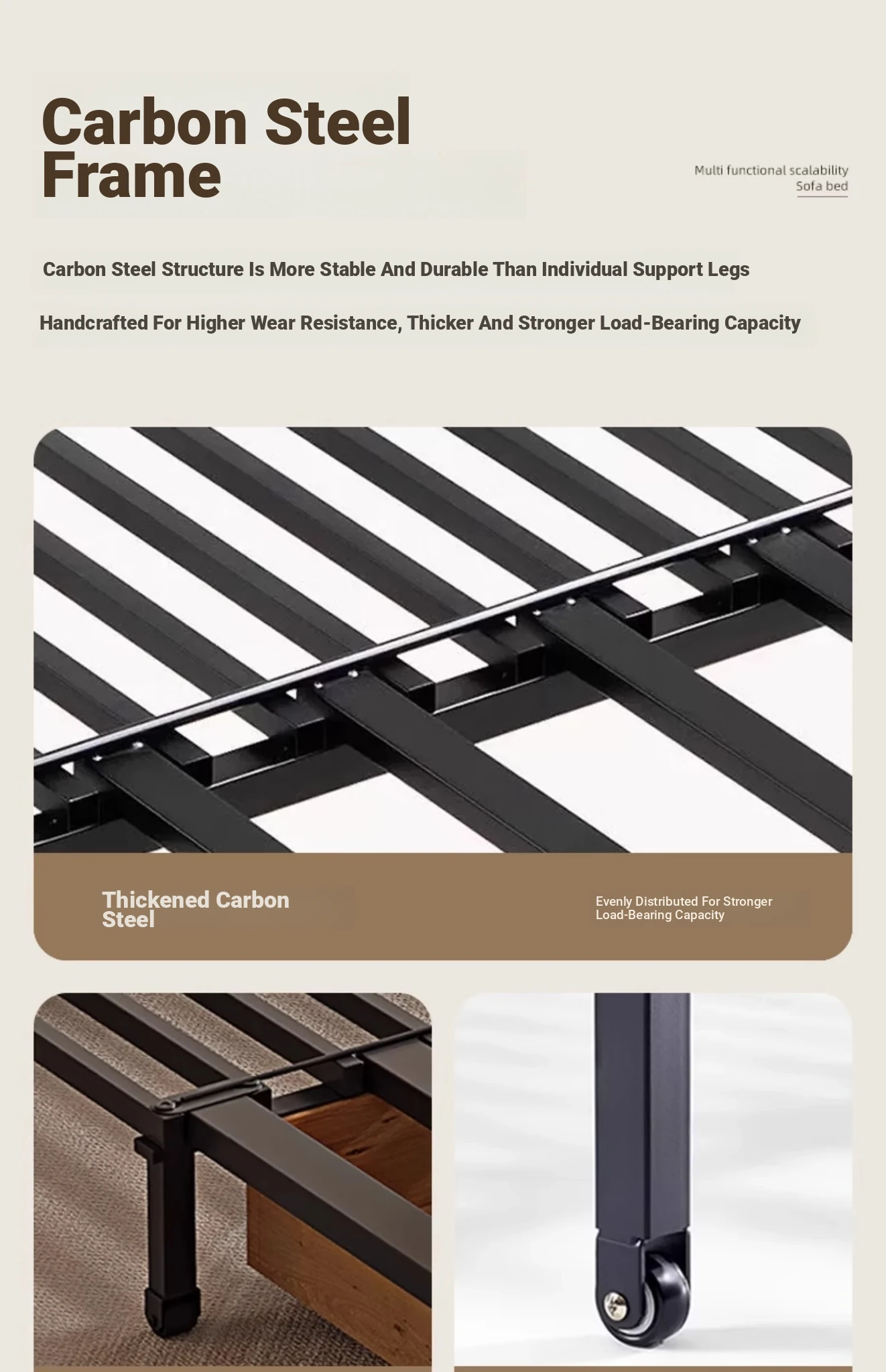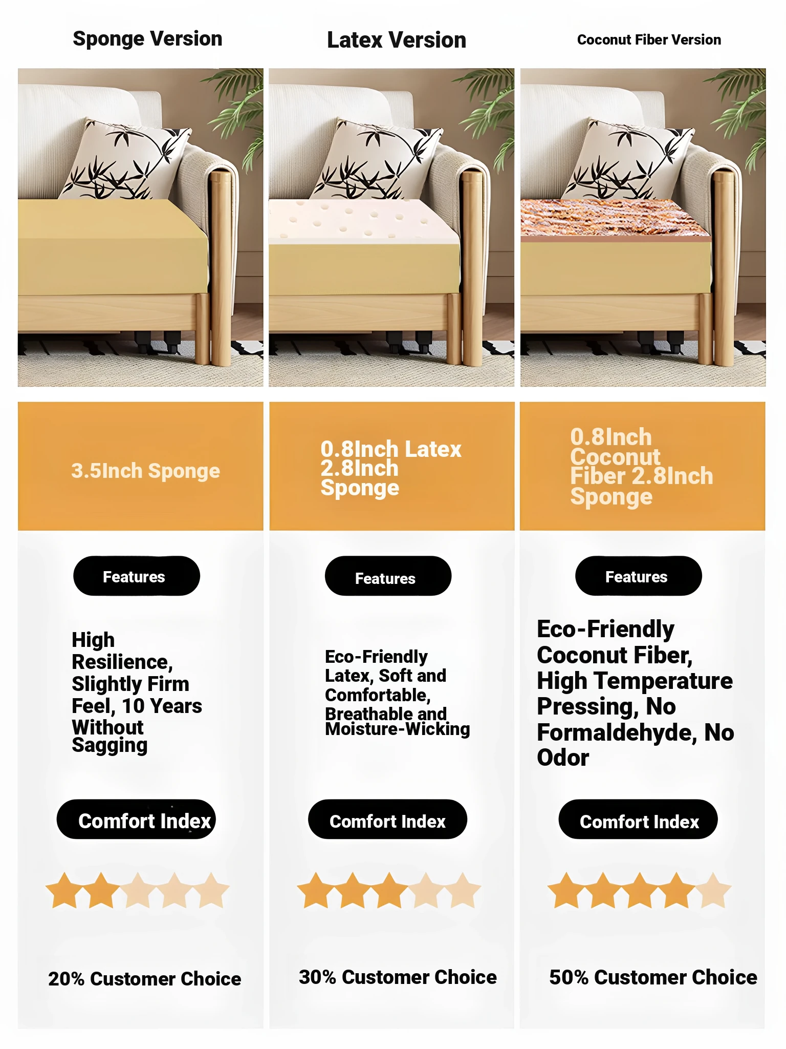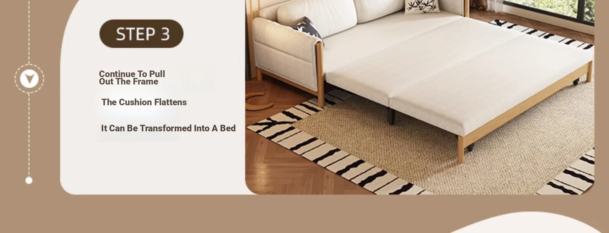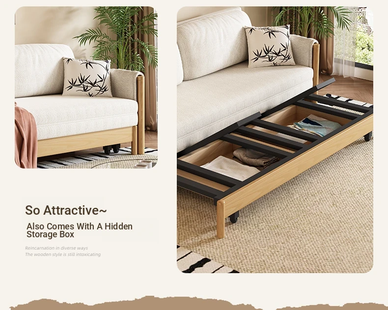 Modern Minimalist Solid Wood Sofa Bed 2025 New Foldable Design for Small Living Rooms, Stylish Convertible Sofa for Couples, Perfect for Dual Use as Seating and Sleeping