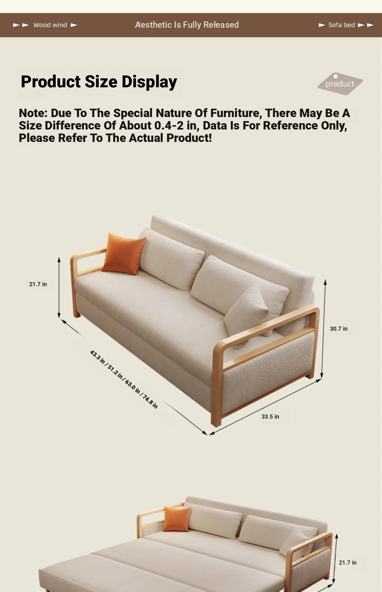 43.31 in * 77.17 in high density sponge + Environmental-Friendly Brown (plus storage)