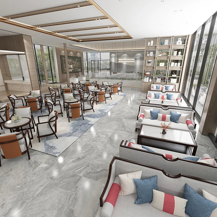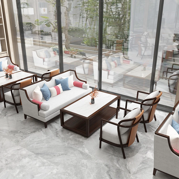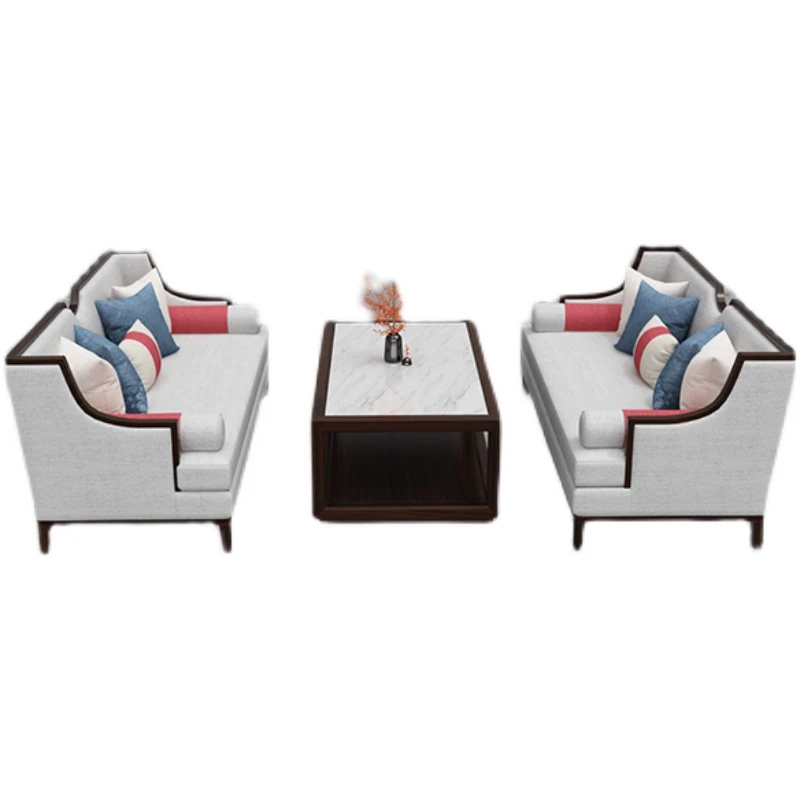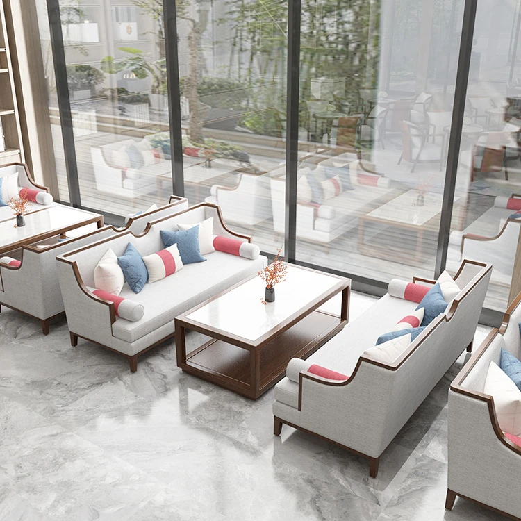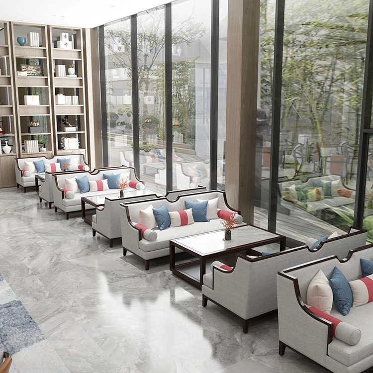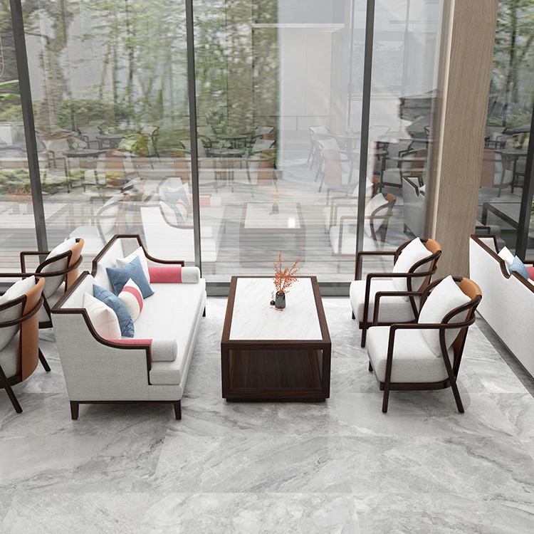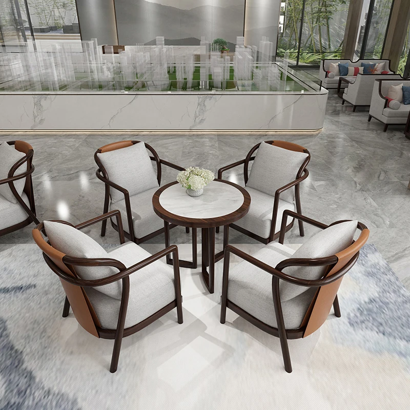 Modern New Chinese Style Solid Wood Sofa Set for Sales Office - Double Three-Person Reception Booth Furniture for Hotels and Clubs