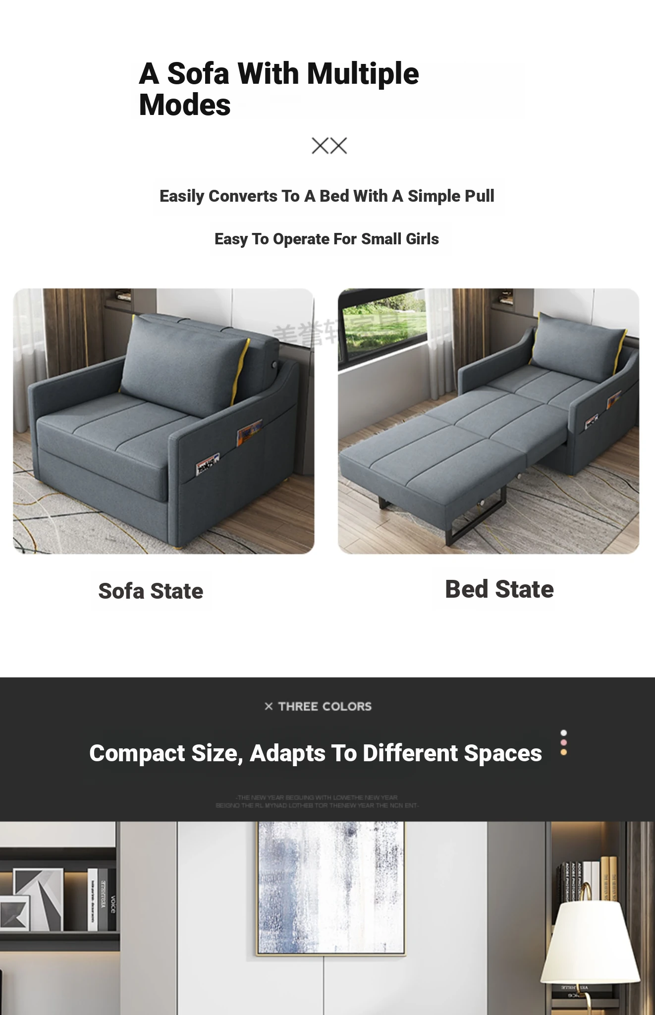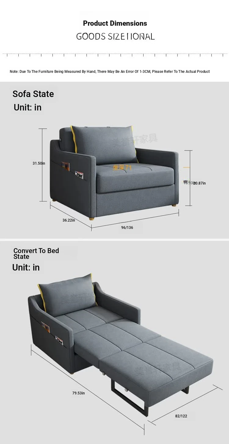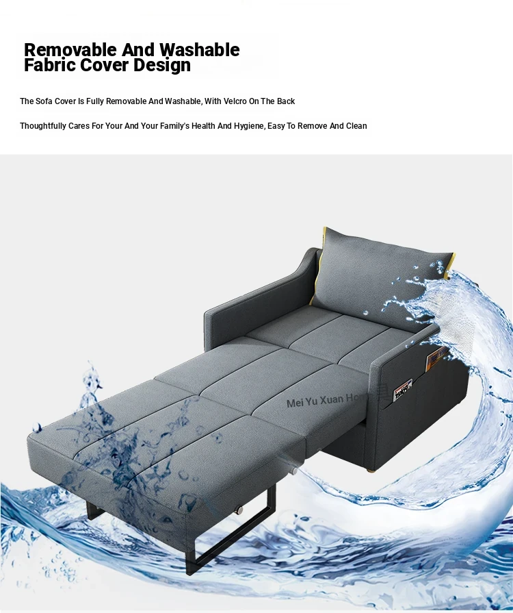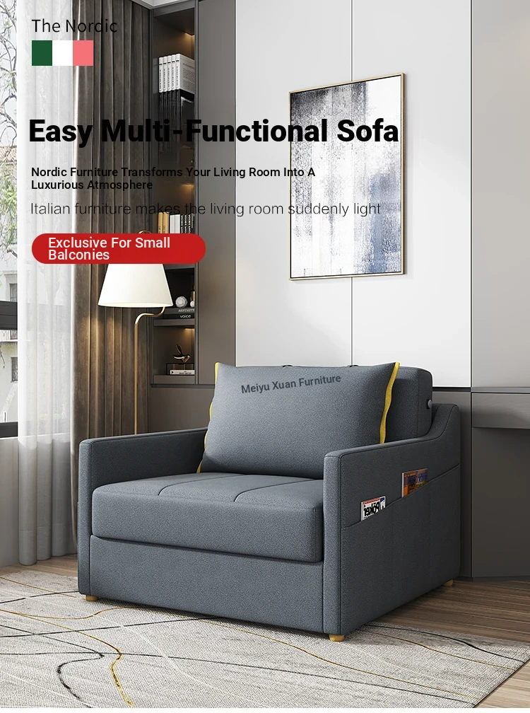 Multifunctional 0.96m Wide Sofa Bed for Small Living Rooms - Compact, Simple, and Foldable Solid Wood Design, Perfect for Single Sitting and Sleeping