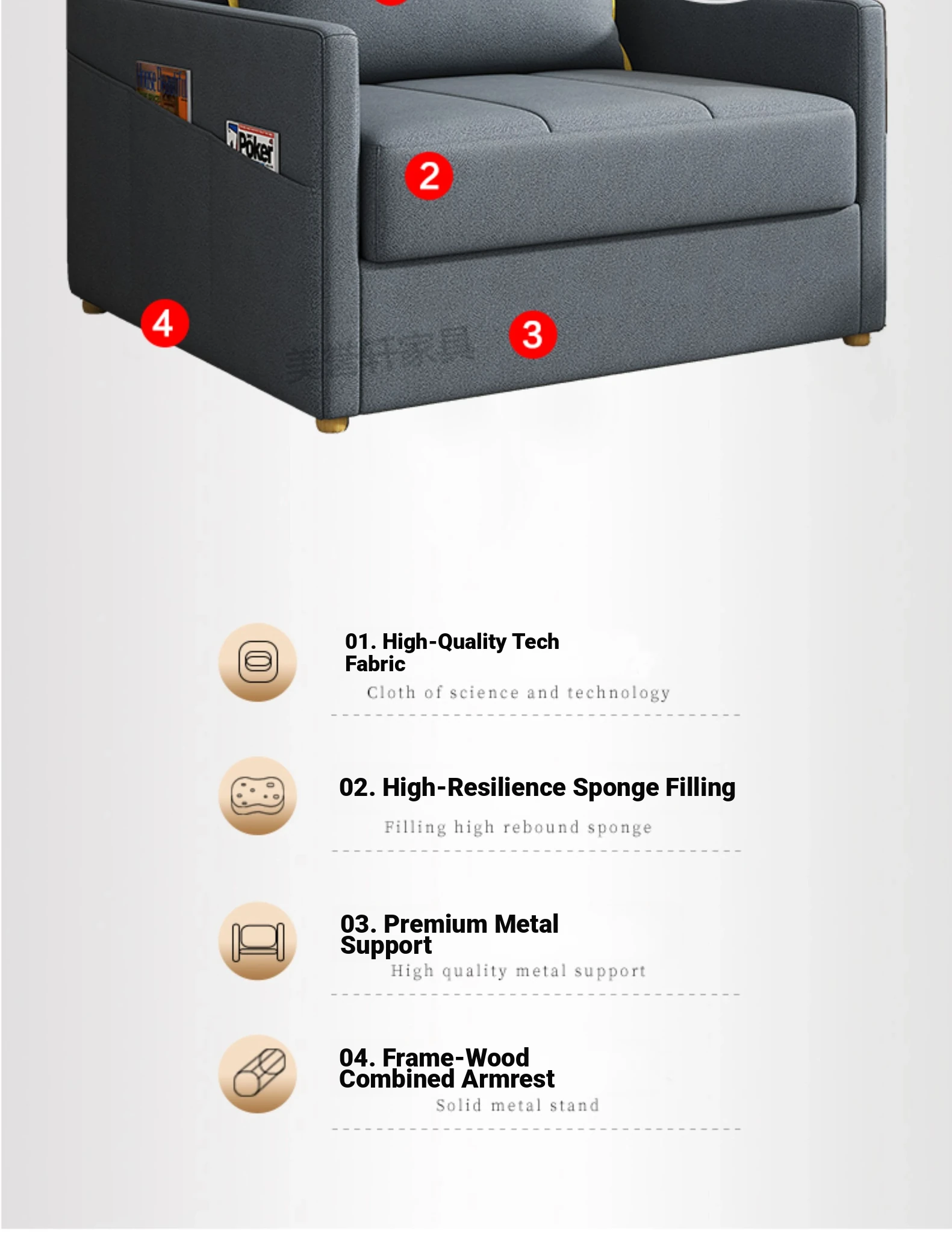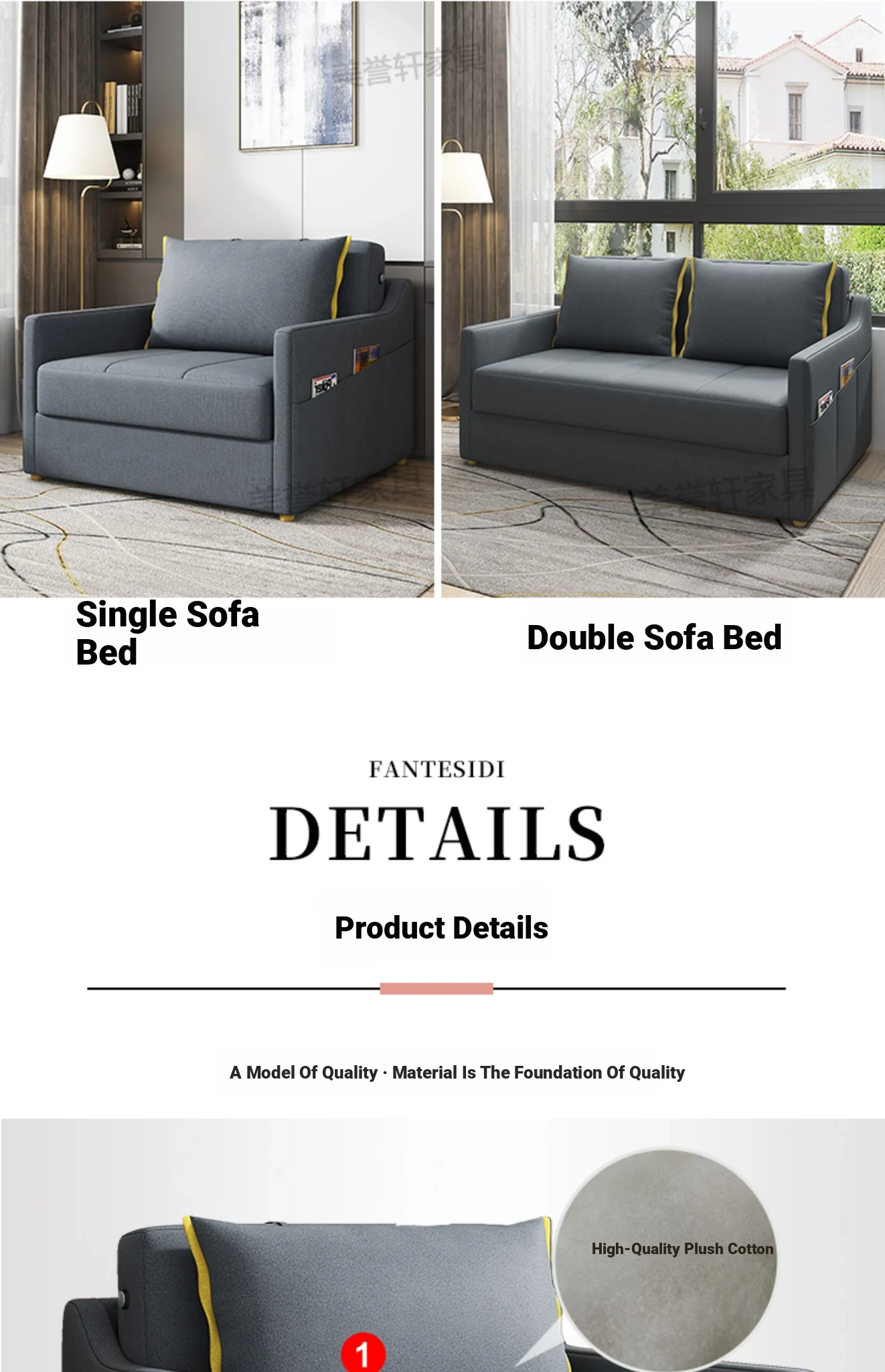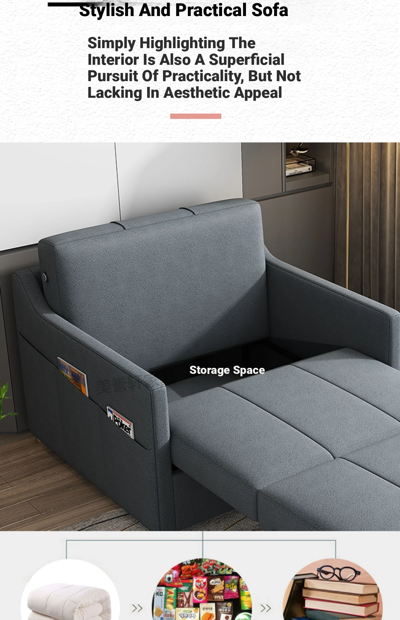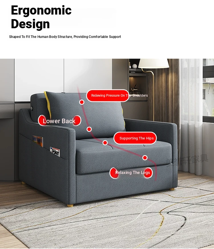 Multifunctional 0.96m Wide Sofa Bed for Small Living Rooms - Compact, Simple, and Foldable Solid Wood Design, Perfect for Single Sitting and Sleeping