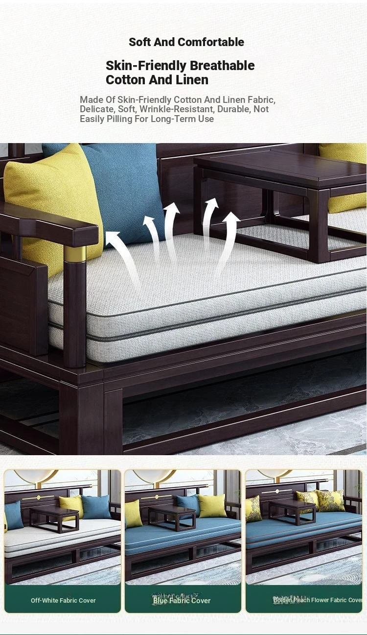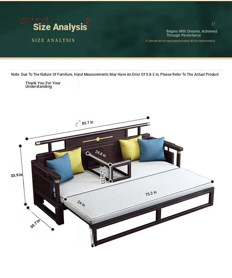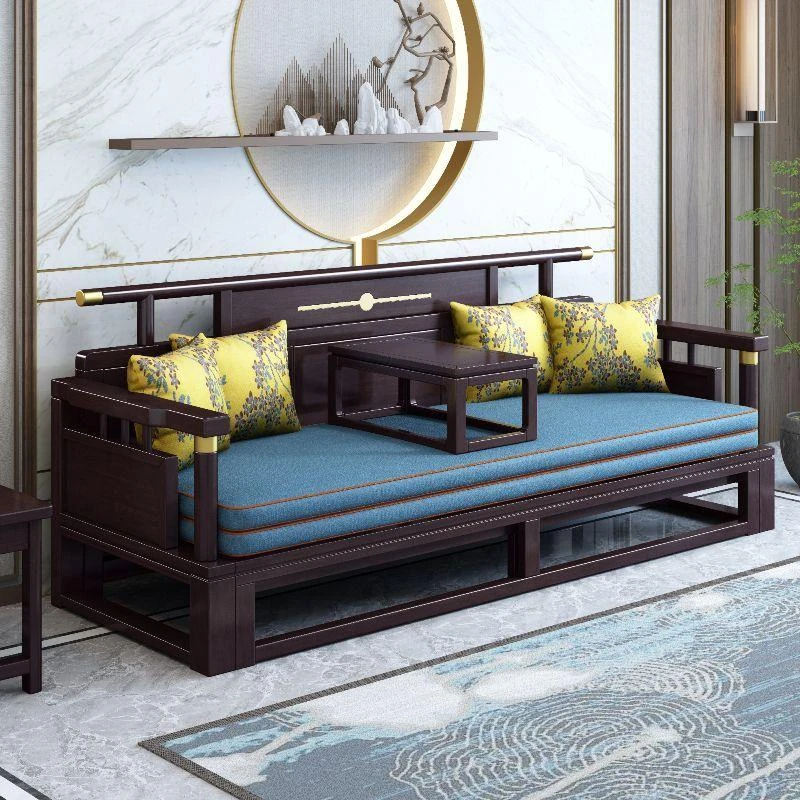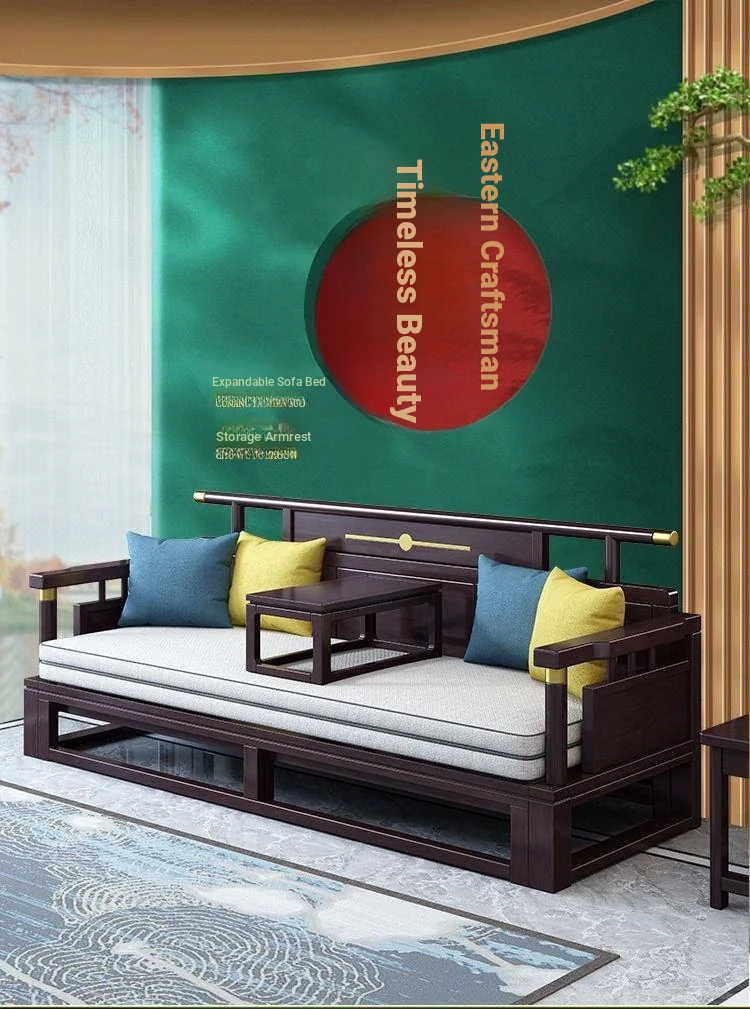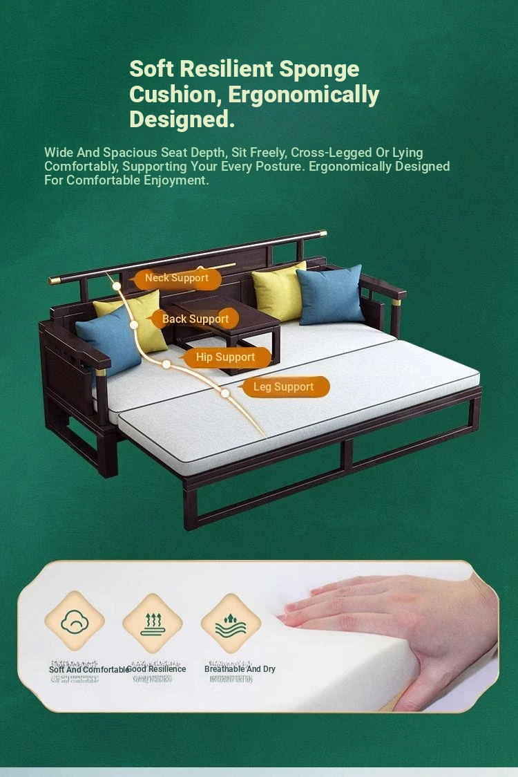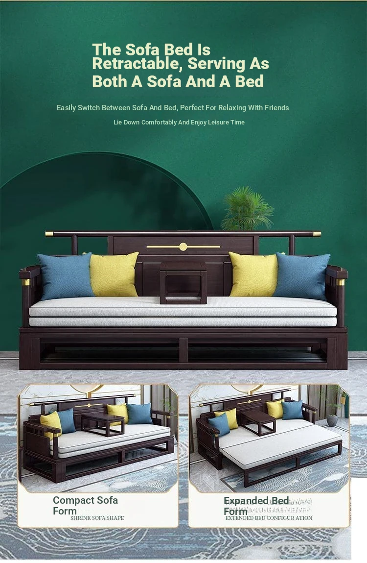 New Chinese Style Solid Wood Luohan Bed - Minimalist Sofa Bed, Folding Dual-Use Design for Small and Large Spaces, Modern Integrated Bed for Living Room