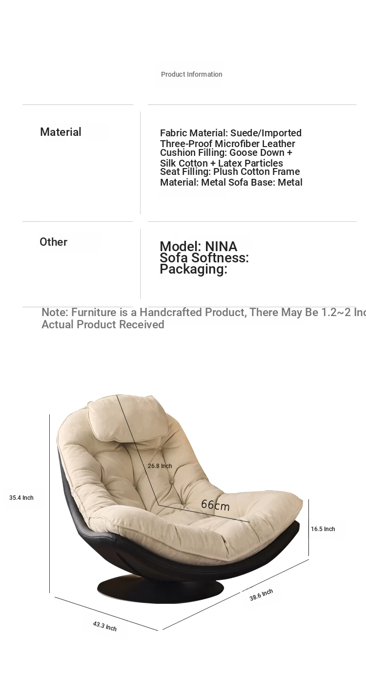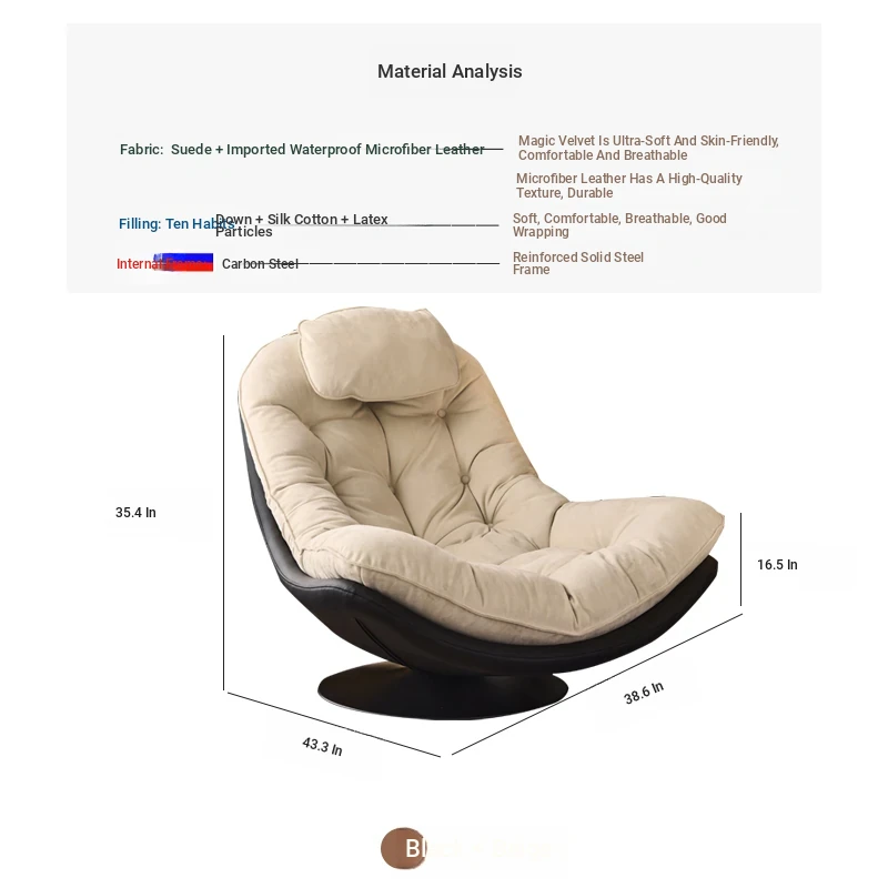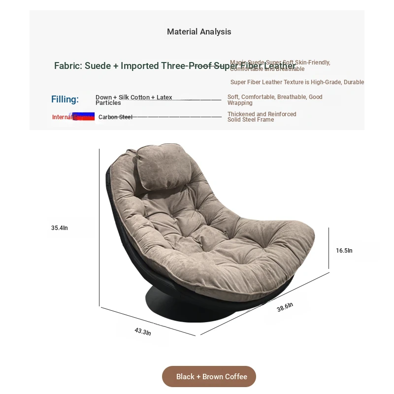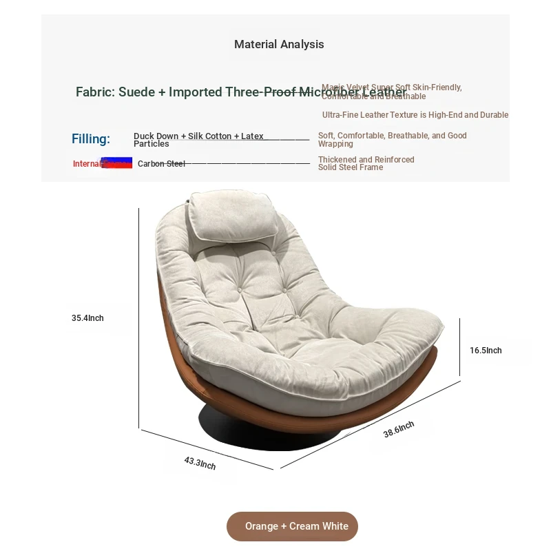 NINA High-End Single Sofa Chair - Lazy Rotating Lounge Chair for Balcony & Living Room, Stylish Design with Reclining Feature