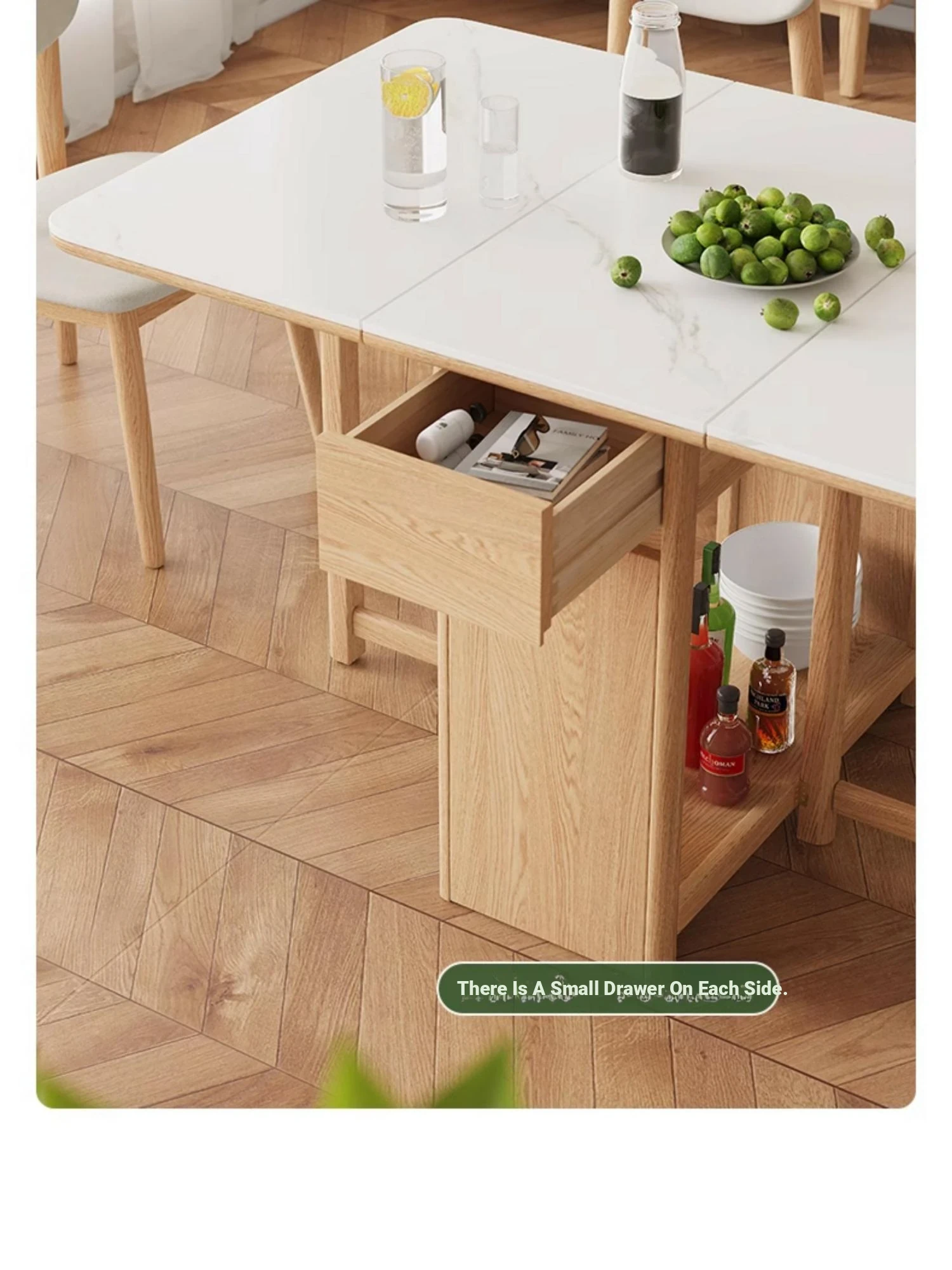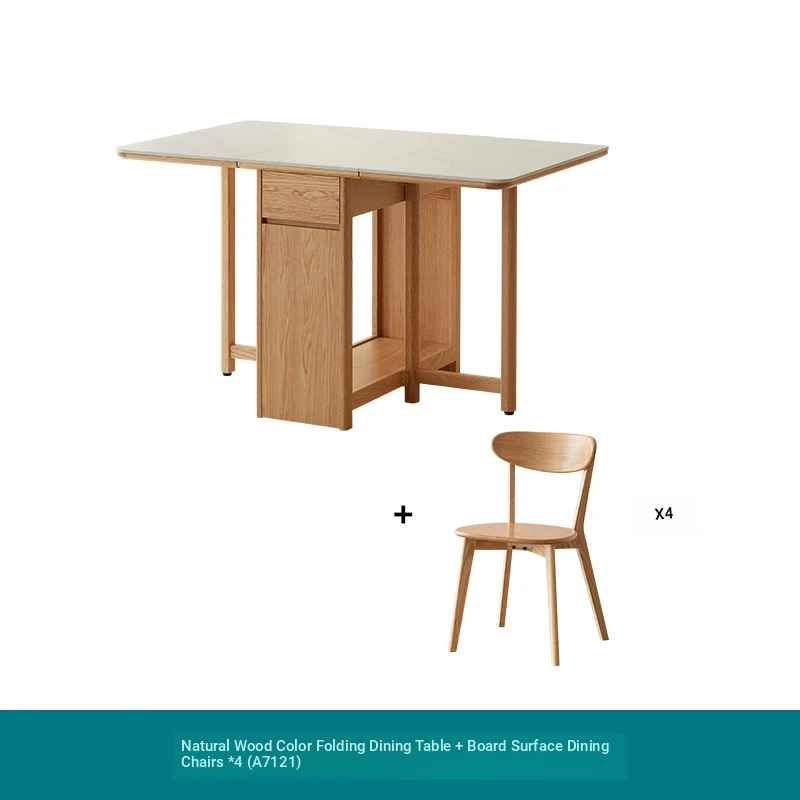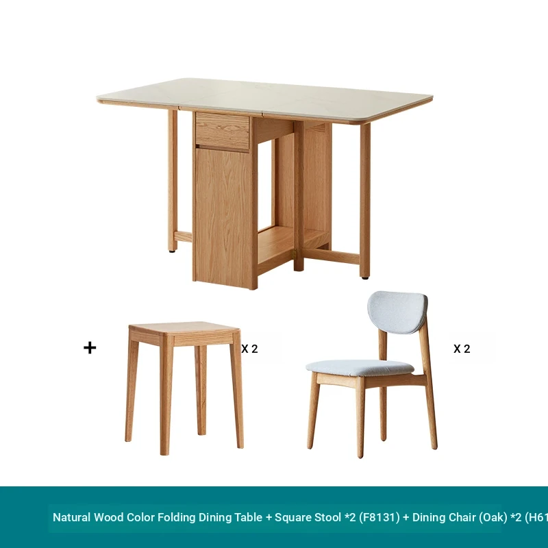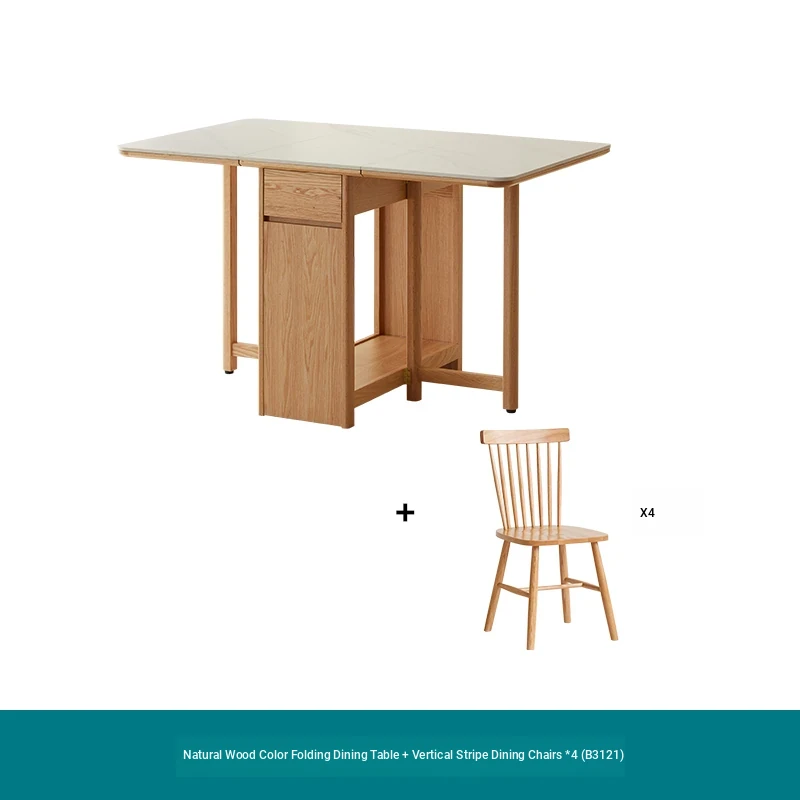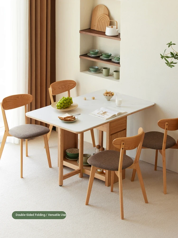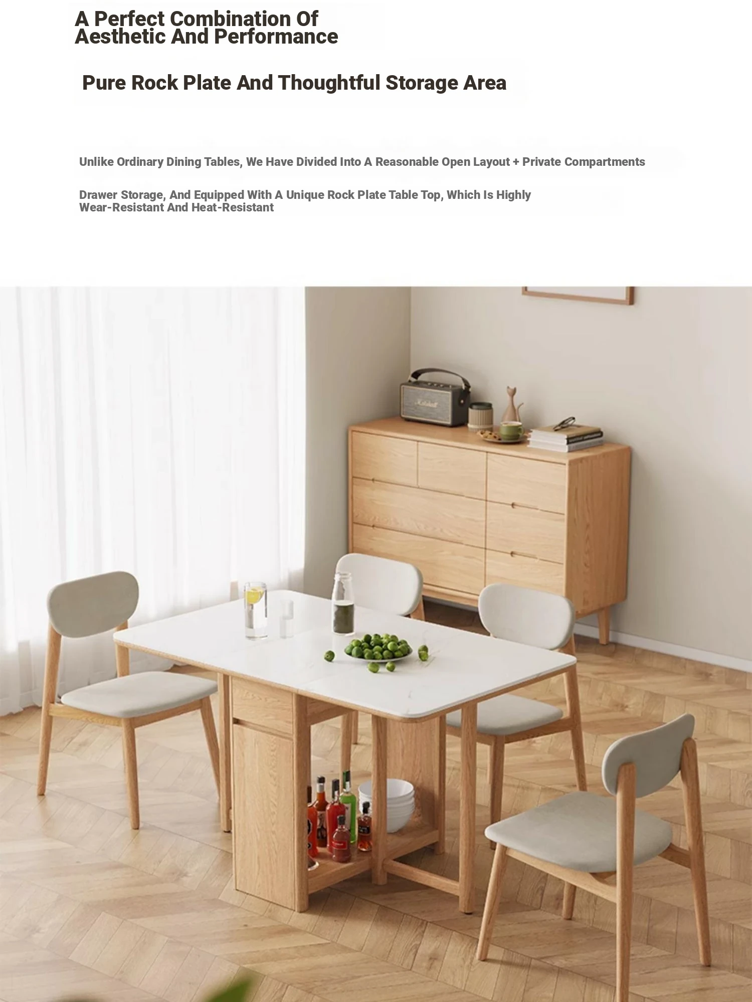 Nordic Solid Wood Folding Dining Table and Chair Set - Space-Saving, Multi-Functional, Expandable Dining Table for Small Homes with Elegant Rock Slab Design