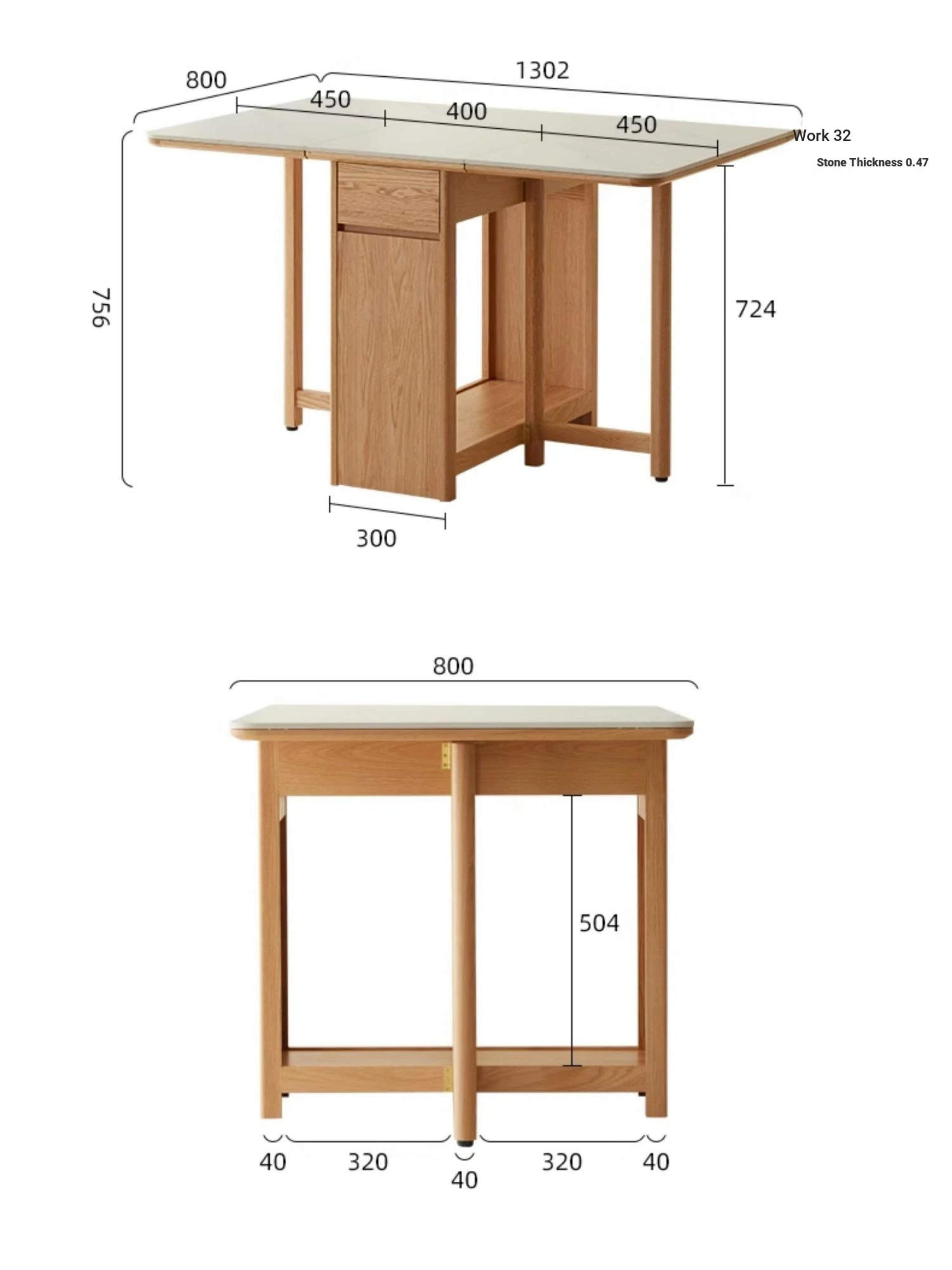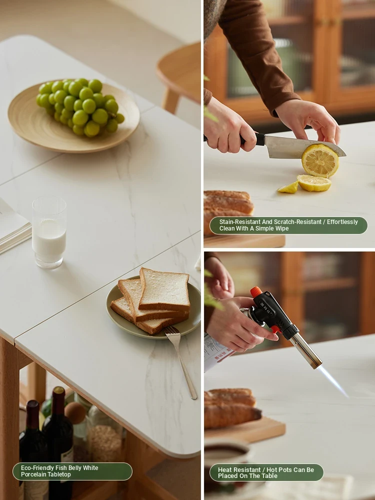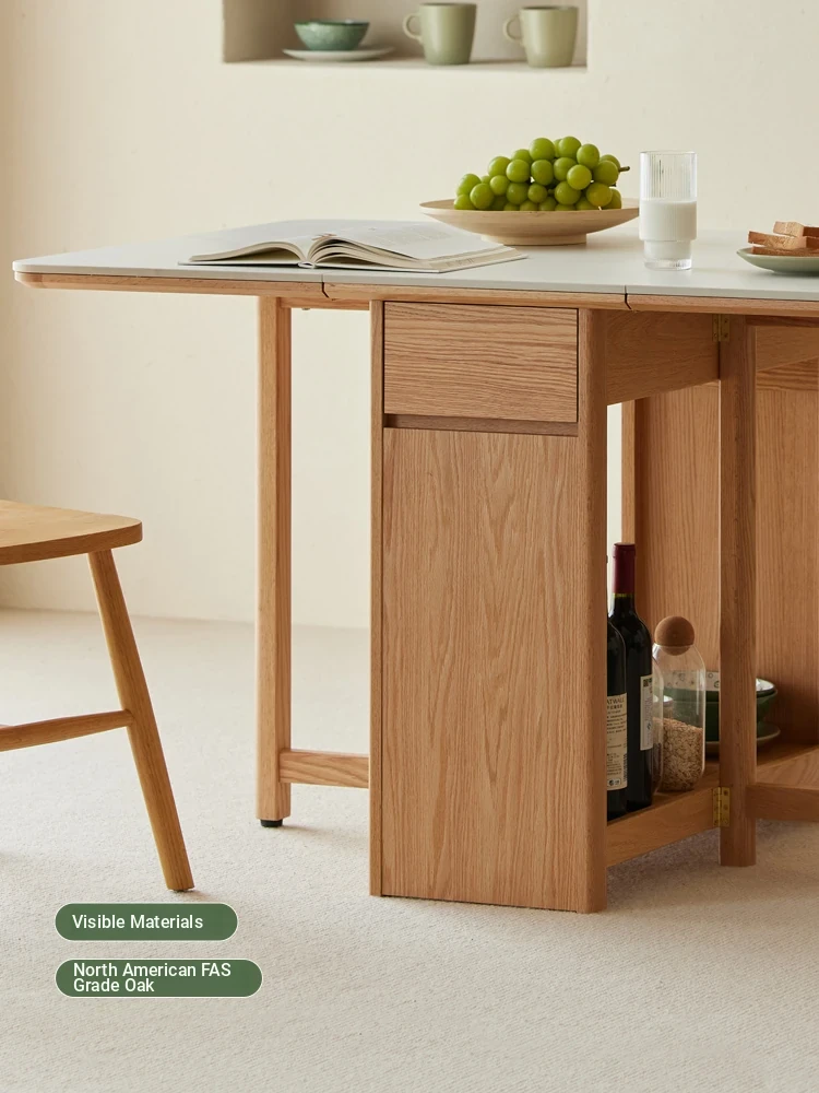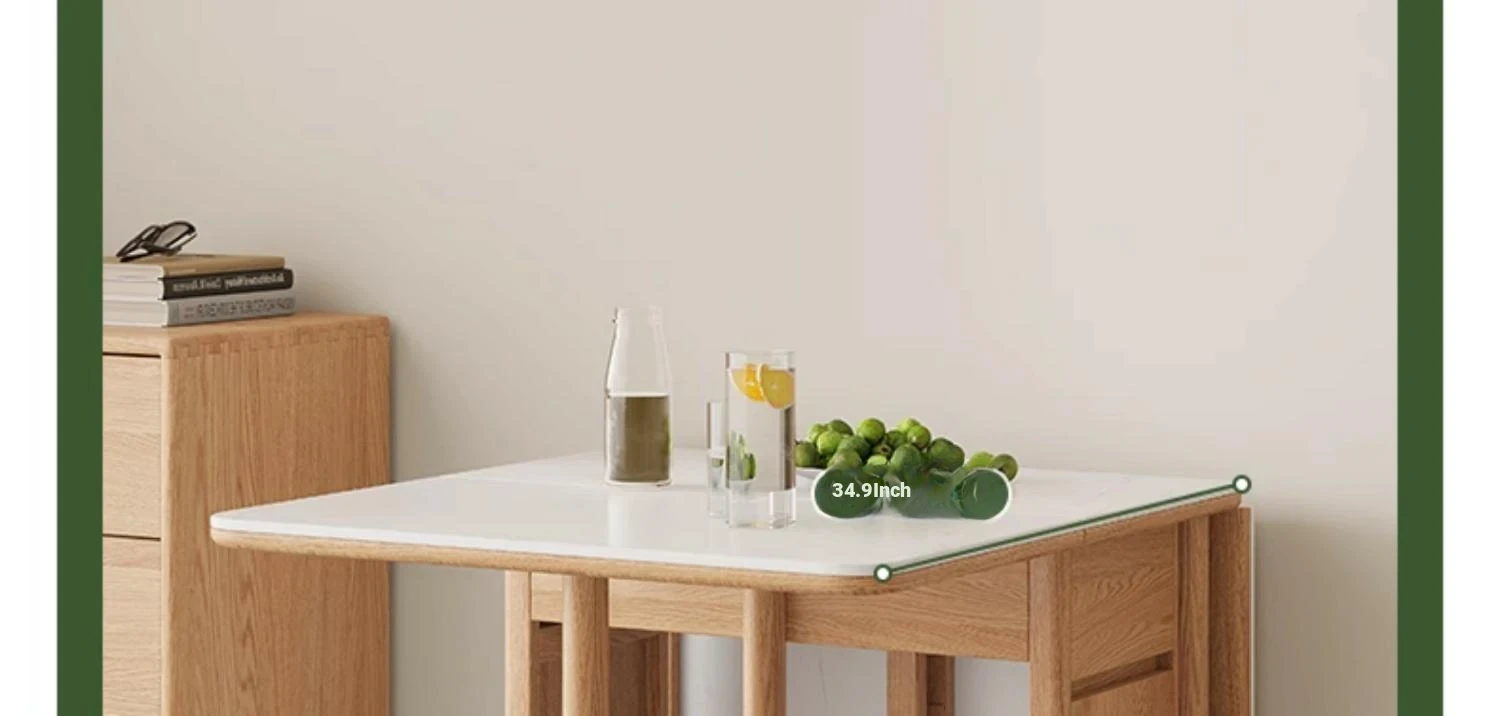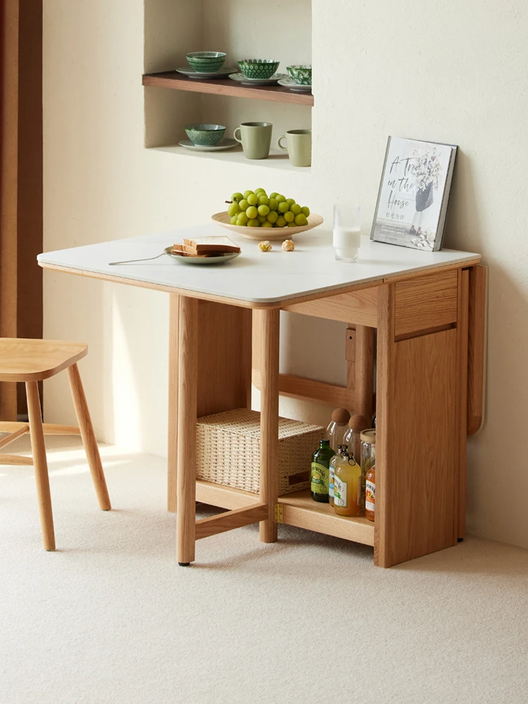 Nordic Solid Wood Folding Dining Table and Chair Set - Space-Saving, Multi-Functional, Expandable Dining Table for Small Homes with Elegant Rock Slab Design