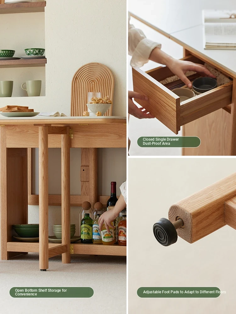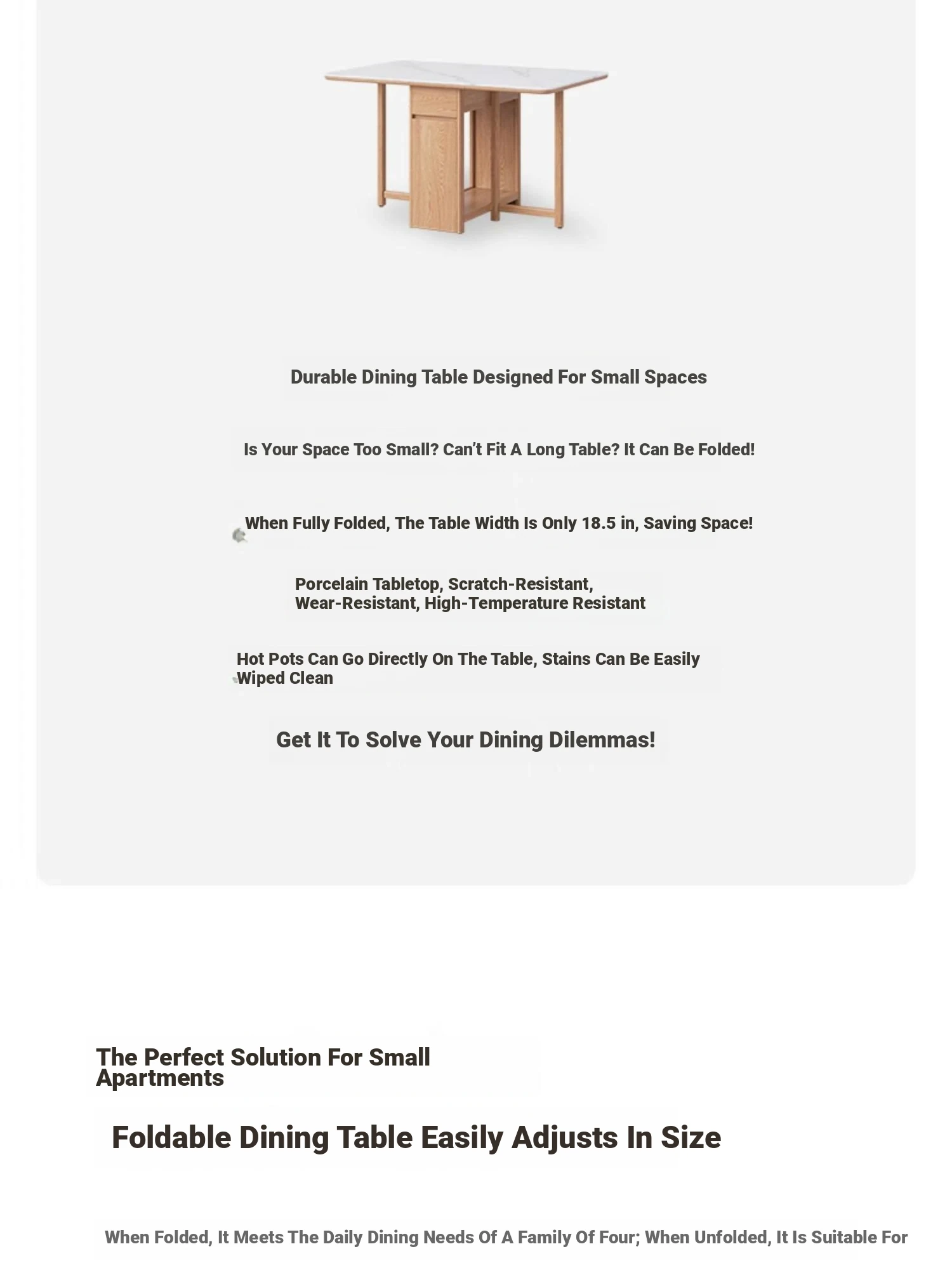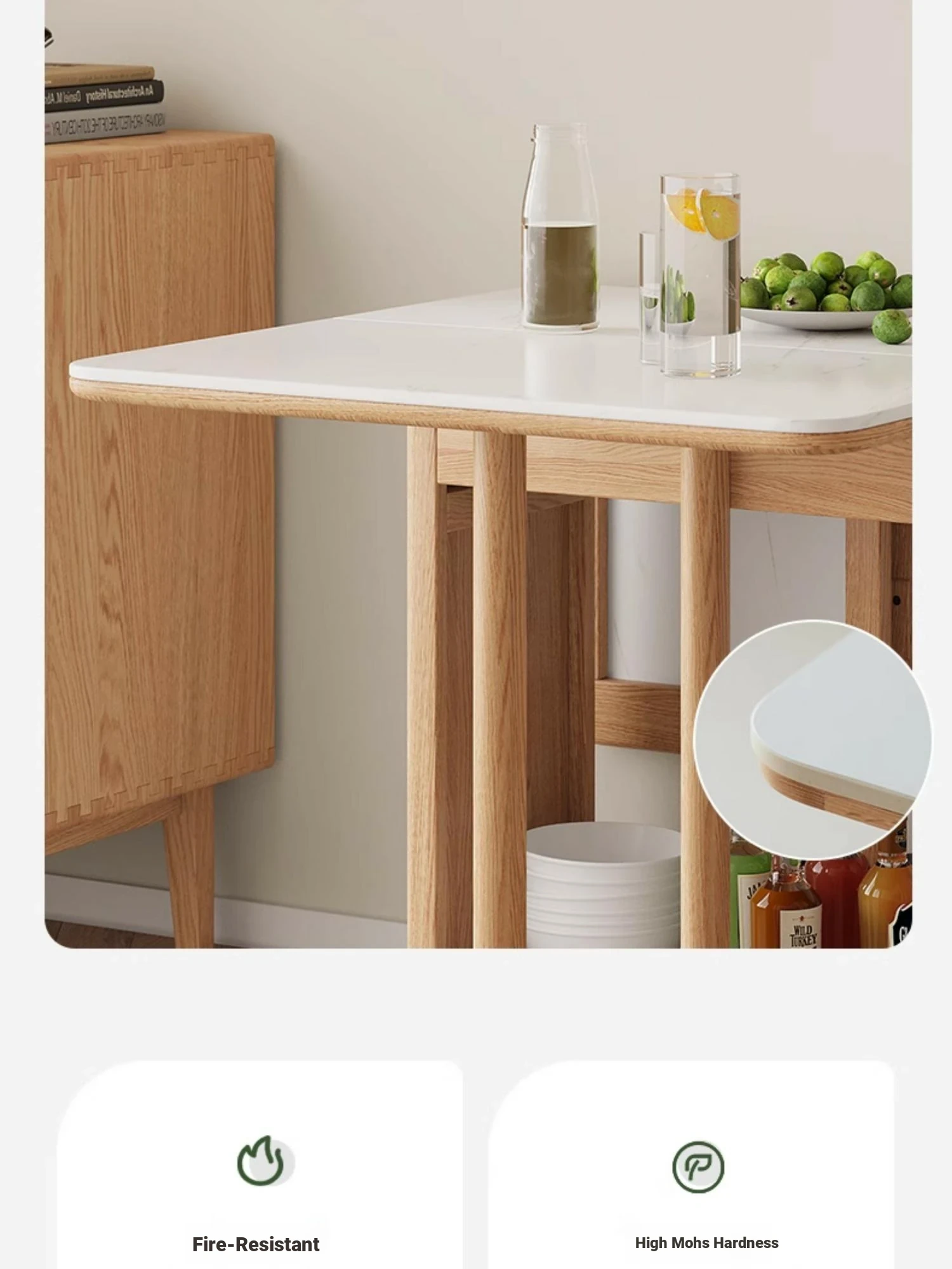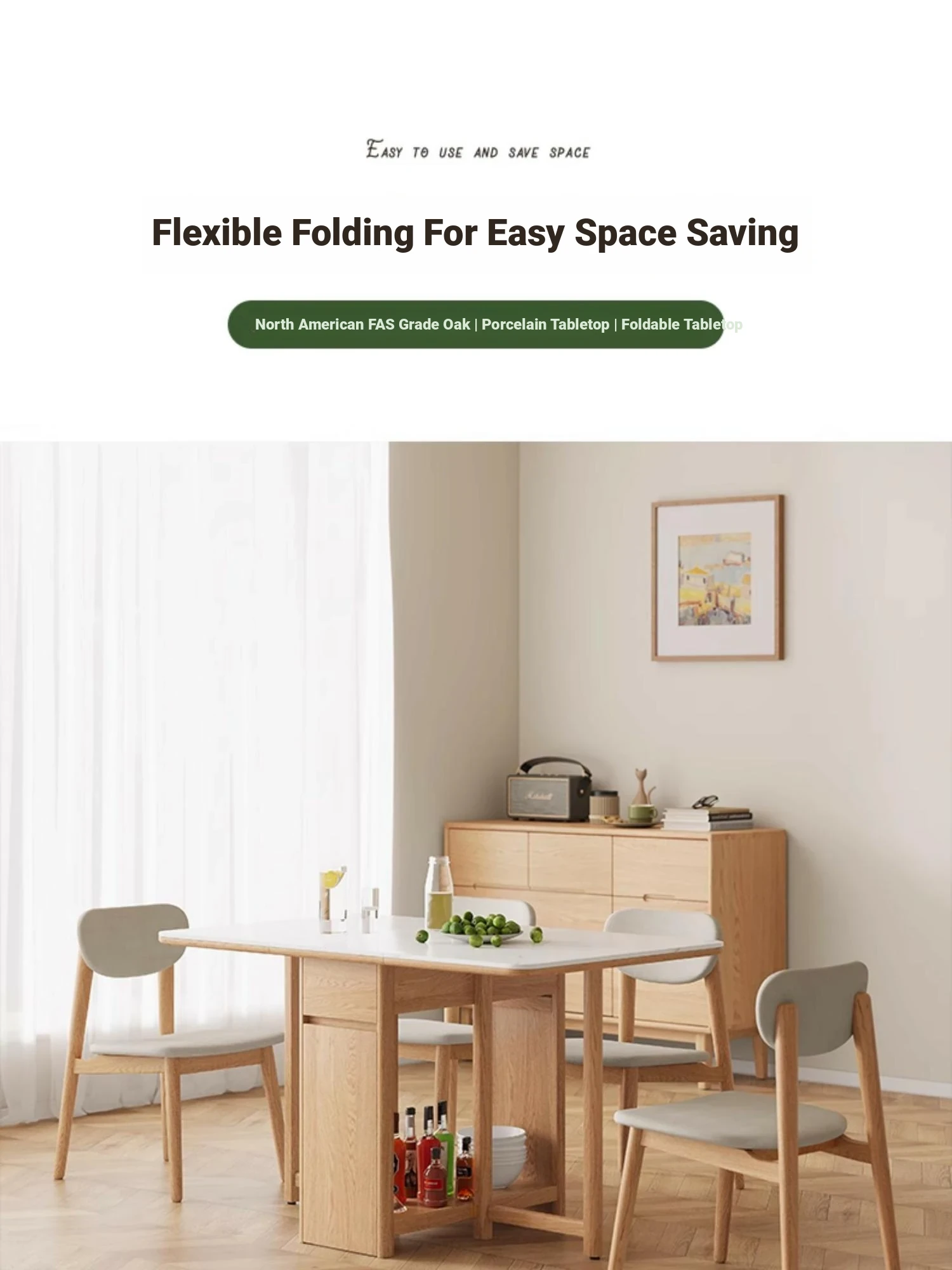 Nordic Solid Wood Folding Dining Table and Chair Set - Space-Saving, Multi-Functional, Expandable Dining Table for Small Homes with Elegant Rock Slab Design