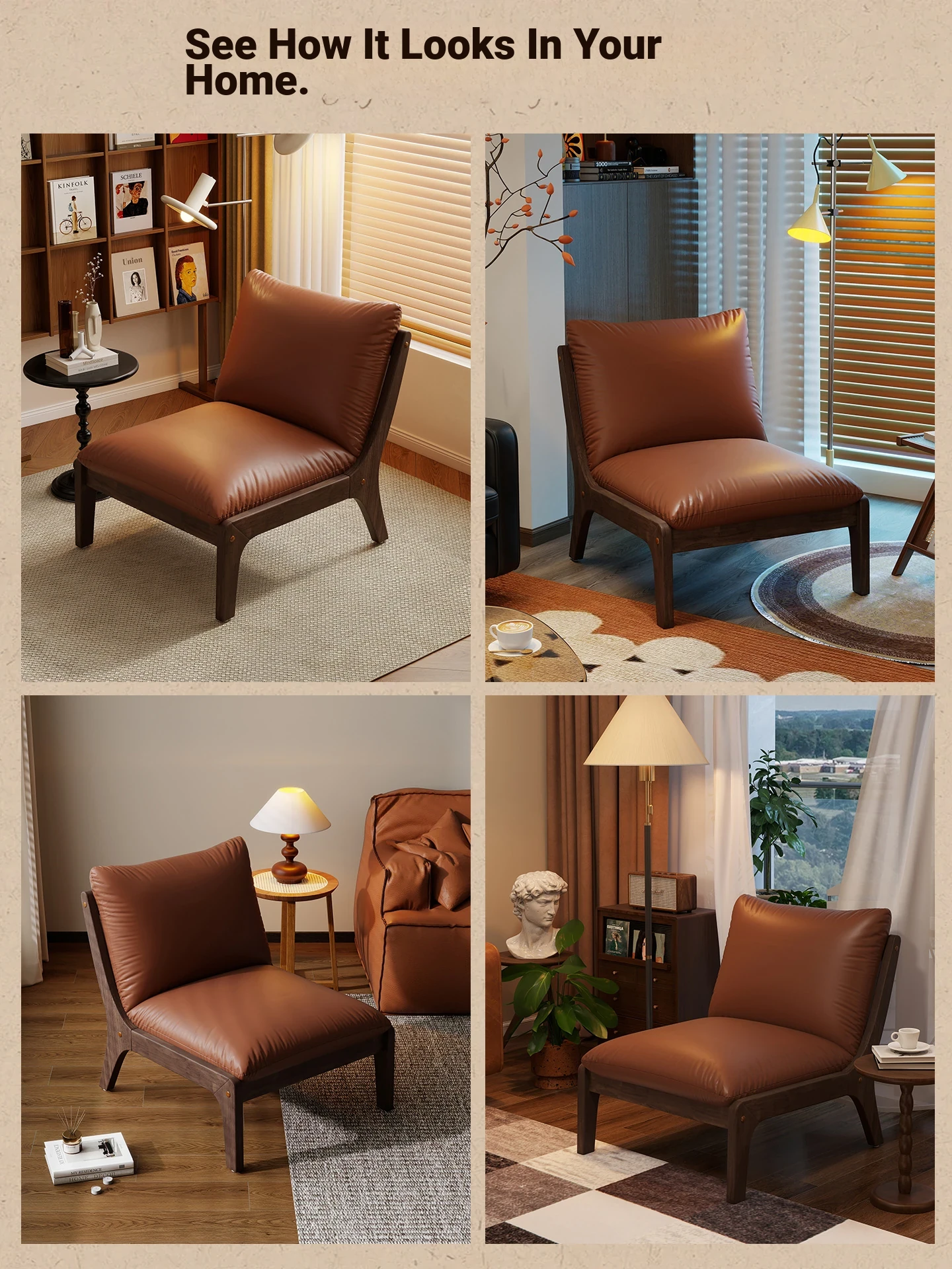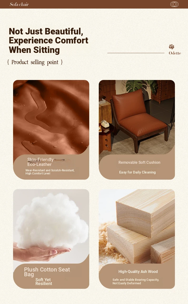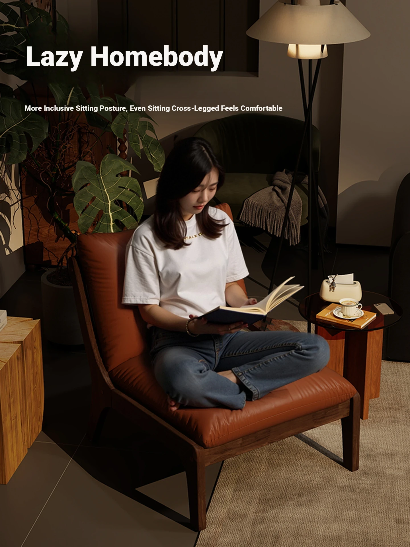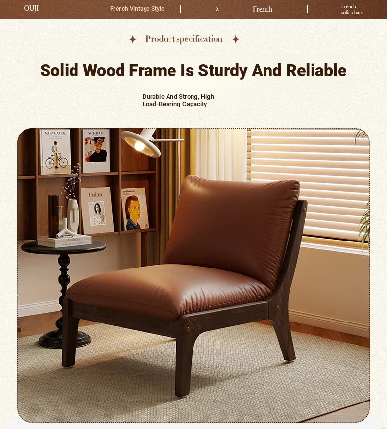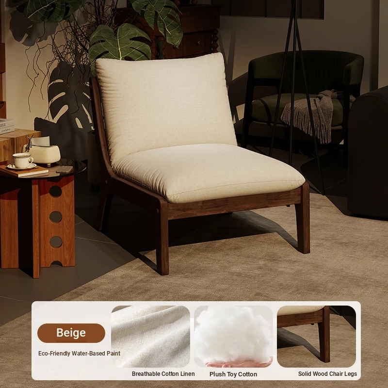 Nordic Solid Wood Single Sofa Chair – Stylish Armchair for Balcony and Living Room, Perfect for Home, Hotel, and Airbnb Use, Ideal for Meetings and Guest Reception