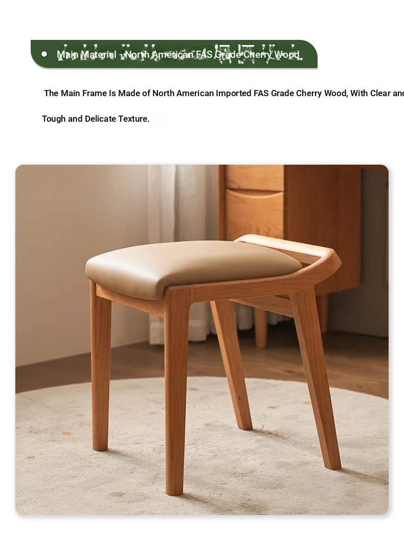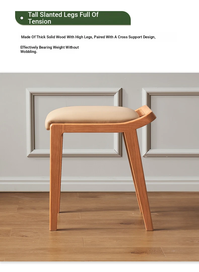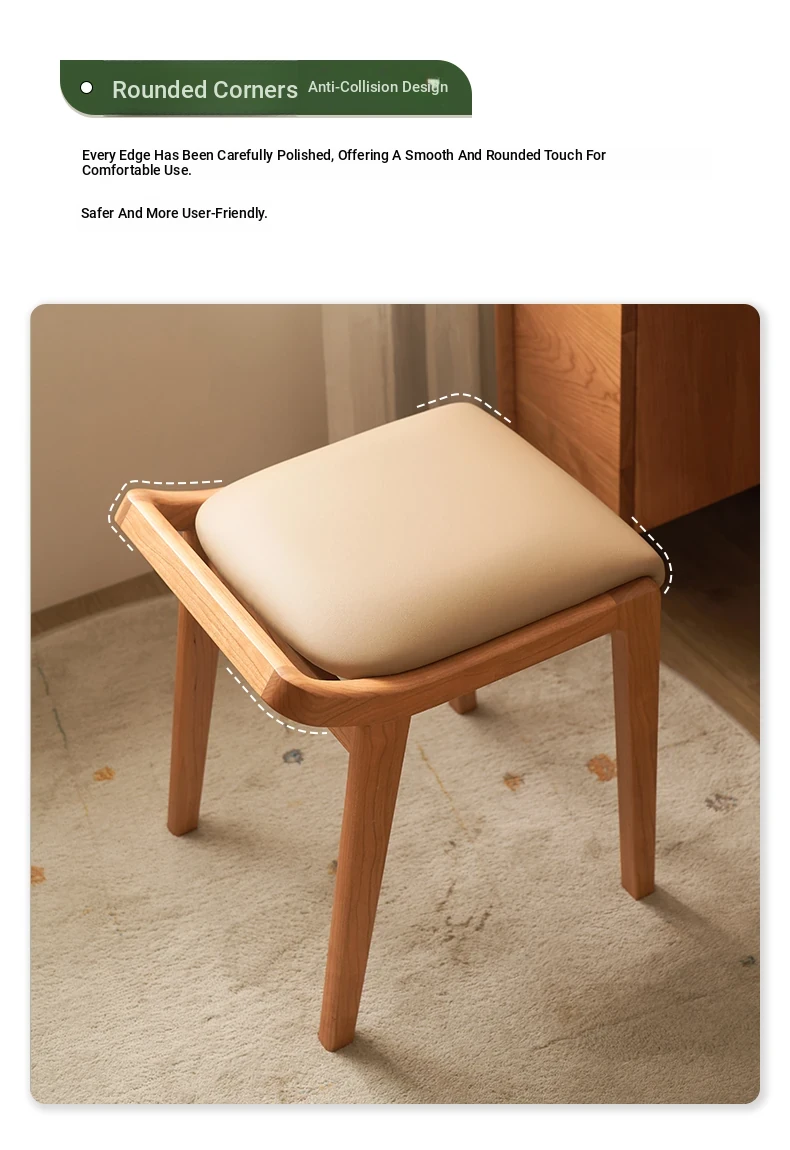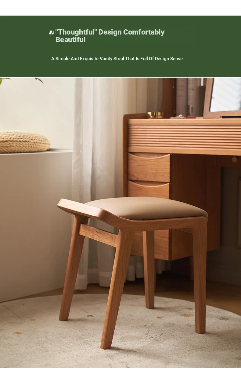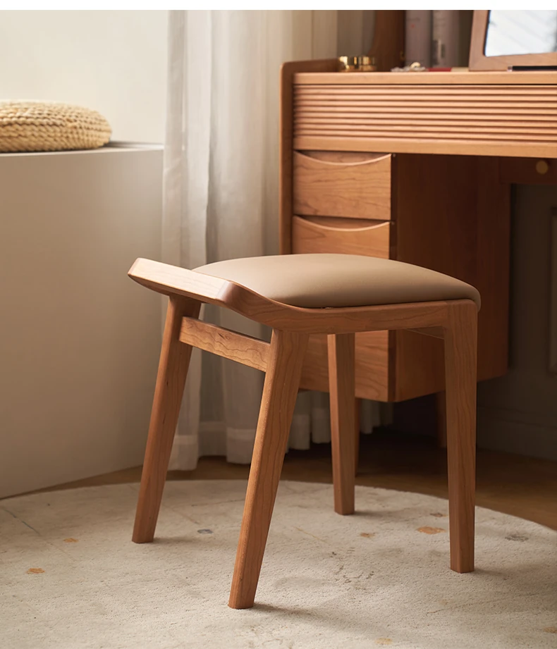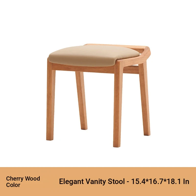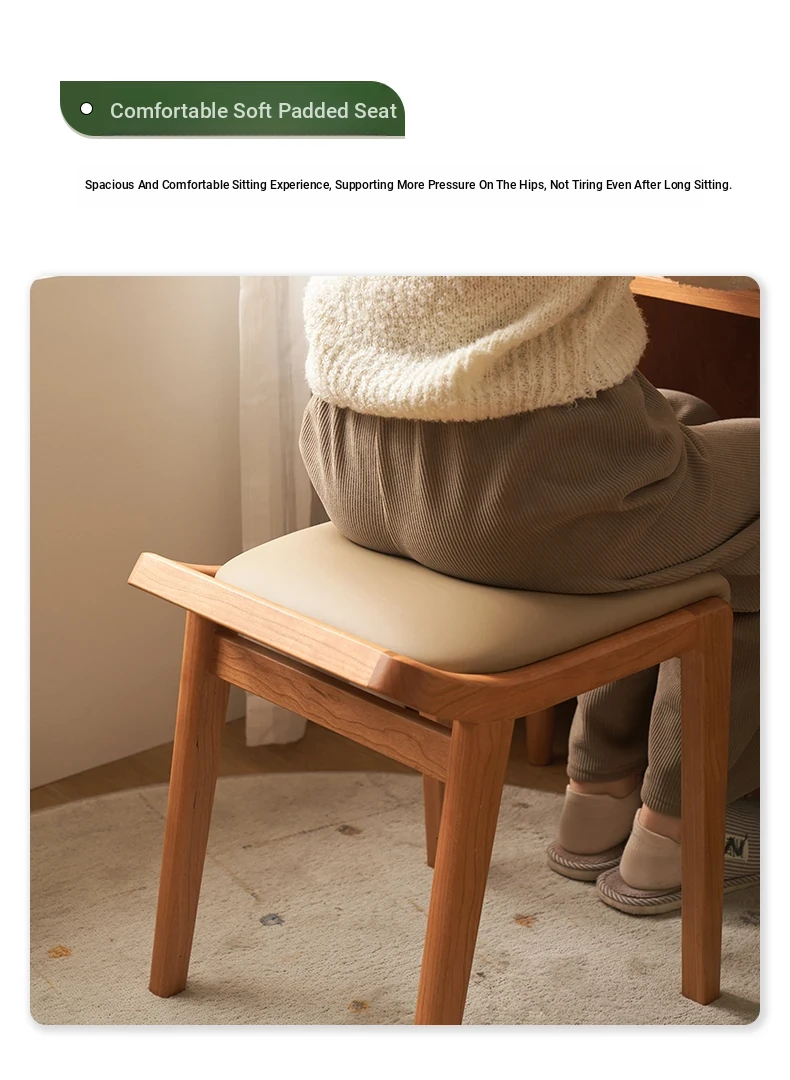 Nordic Solid Wood Vanity Stool - Modern Minimalist Cherry Wood Upholstered Seat, Perfect for Small Spaces, Ideal for Bedroom, Dining, and Makeup Use